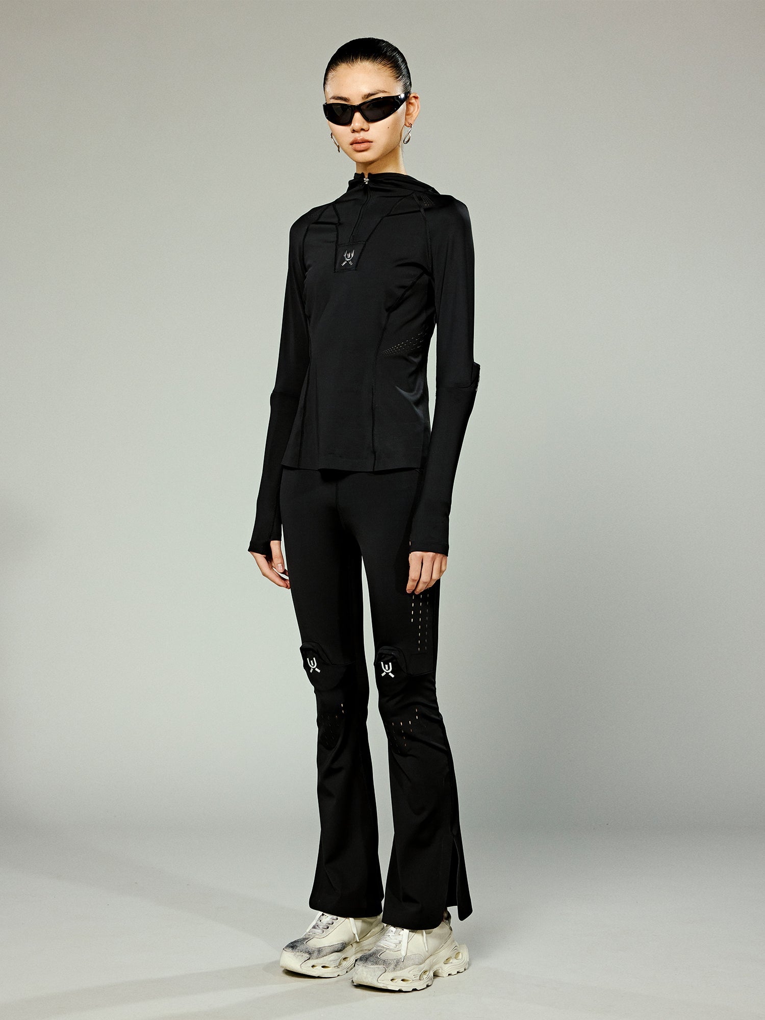 Crafted from professional stretch fabric, this top is lightweight and well-structured. The combination of multiple techniques showcases the futuristic functionality of athletic wear.