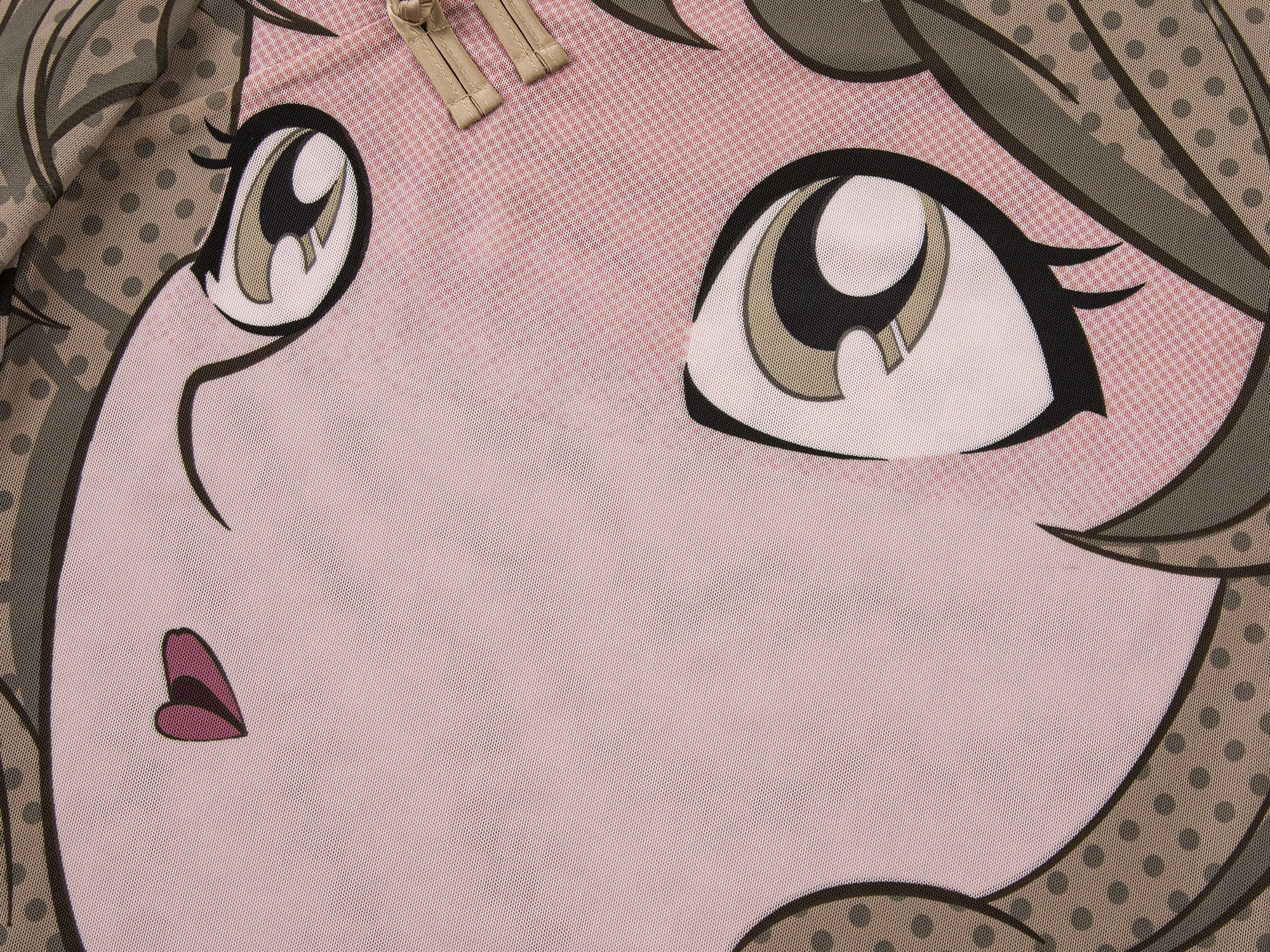 This modern Chinese-style mesh blouse, featuring polka dots, checkerboard patterns, and graphic lines, captures the lively innocence of a Pop Art comic girl.