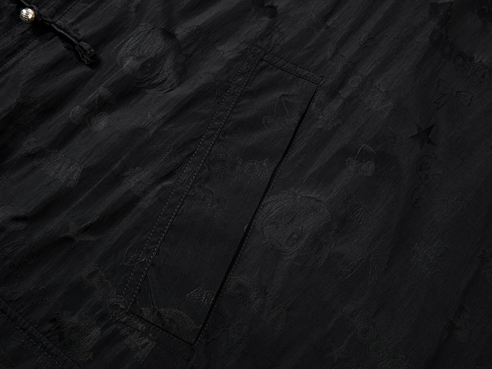 Bringing the whimsical beauty of childhood stickers to life, this piece features intricate jacquard nylon fabric. The elegant button closure seamlessly integrates with the classic hunting jacket design, exuding a sense of playful innocence.