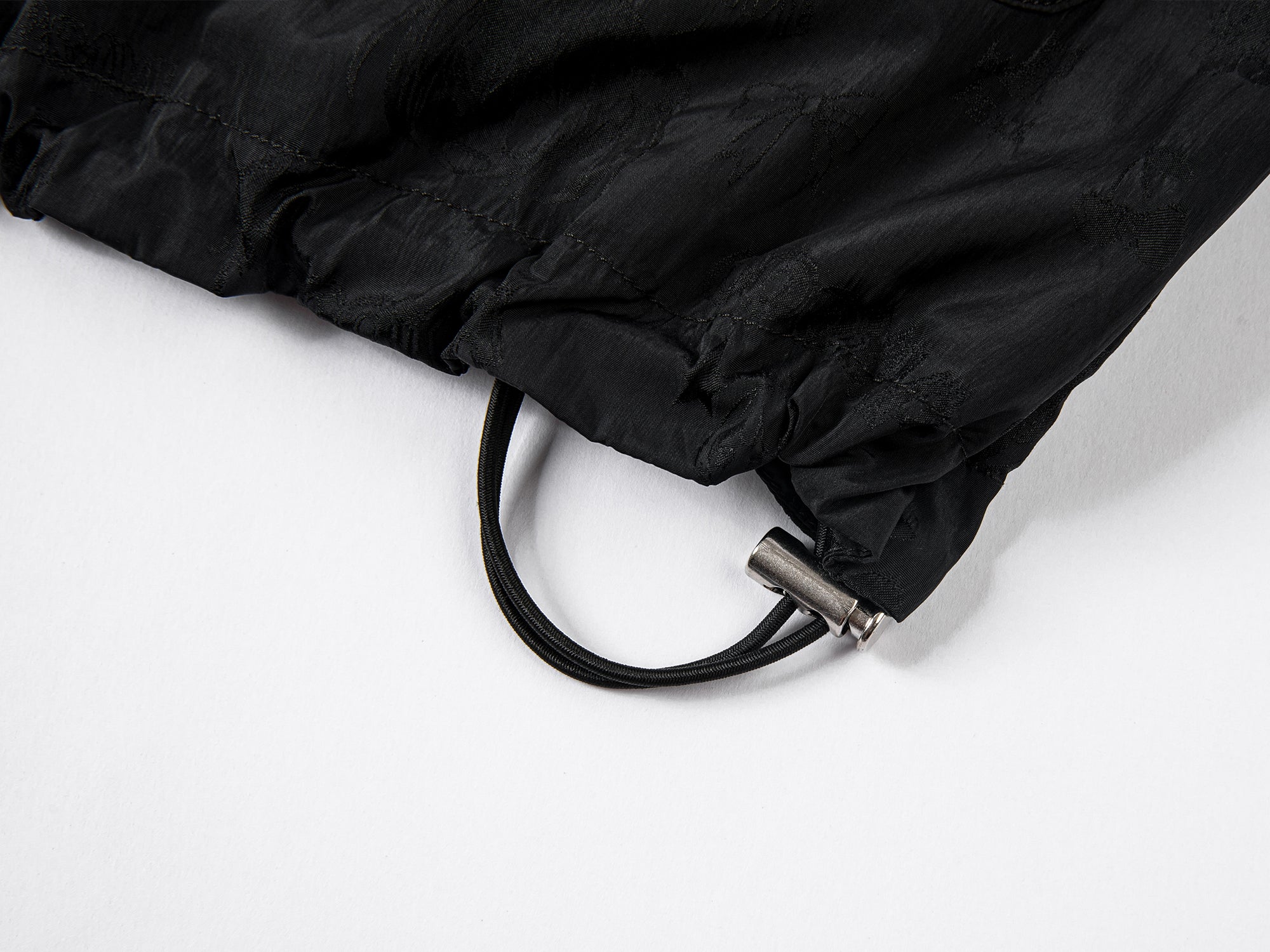Nylon jacquard fabric combined with elastic drawstring details gives the hunting jacket a more athletic and functional feel.