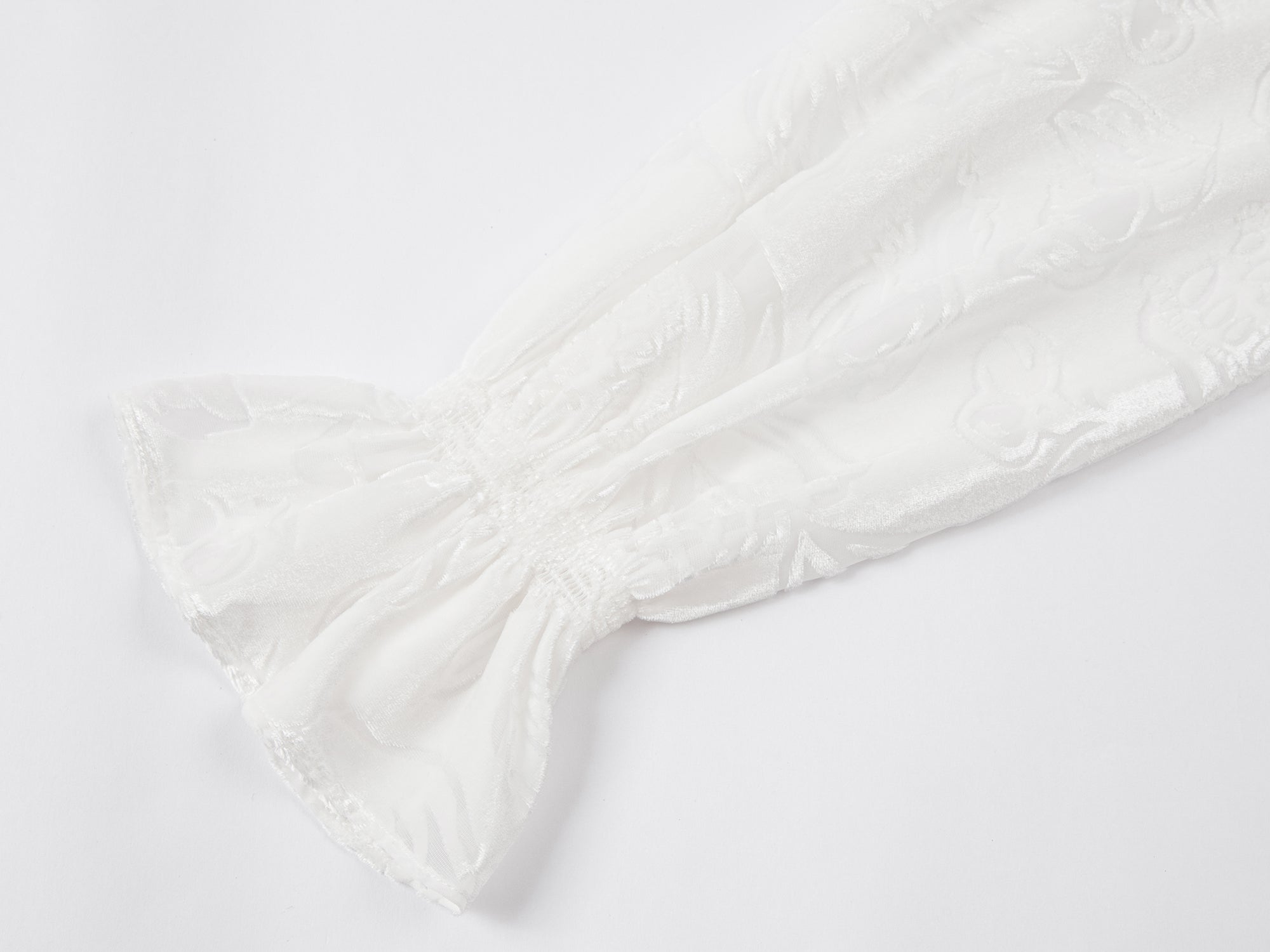 A playful sailor collar shirt adorned with cute cherries and whimsical king protea flowers, crafted from delicate lace floral fabric with a vintage yet whimsical touch.