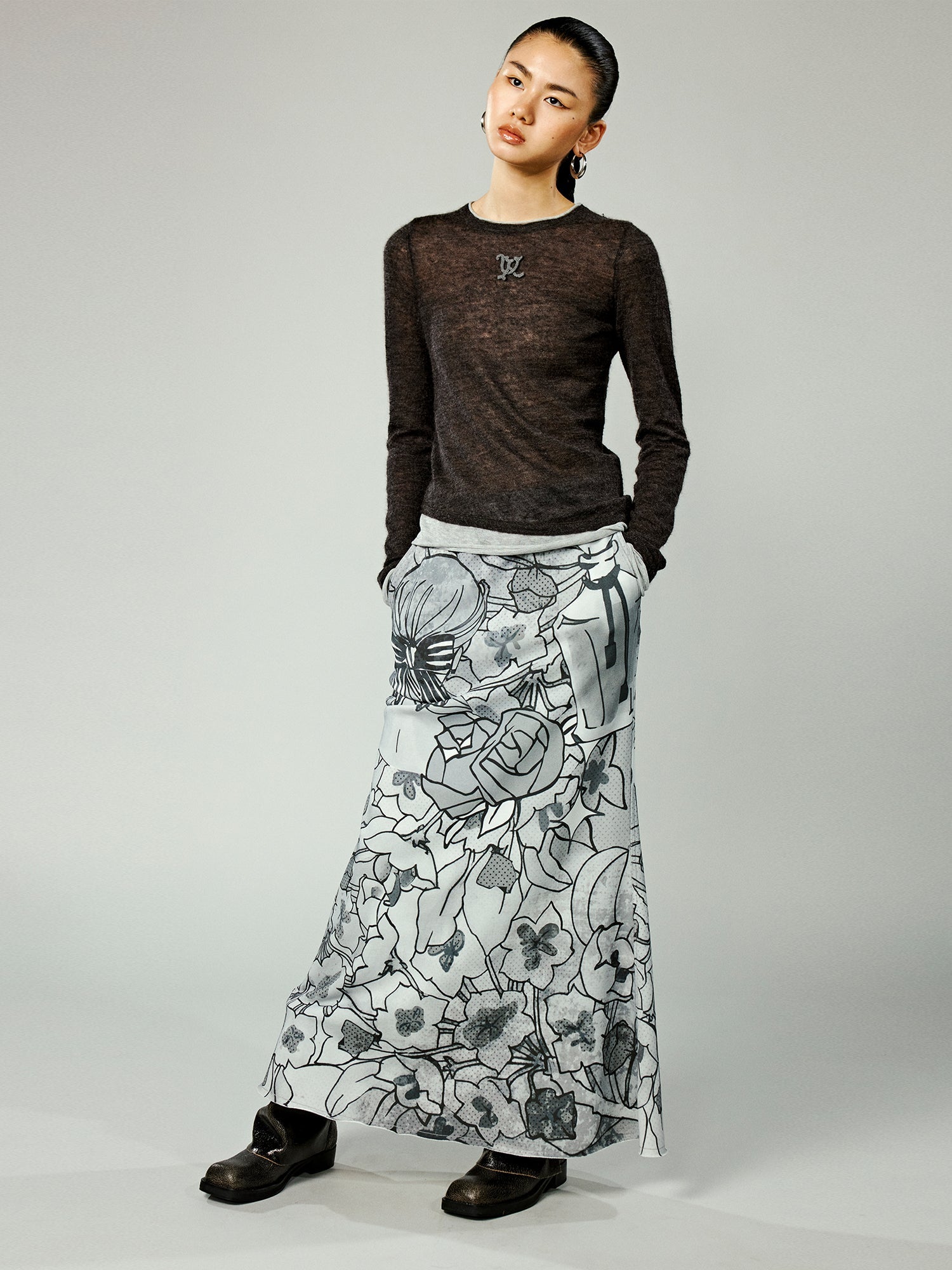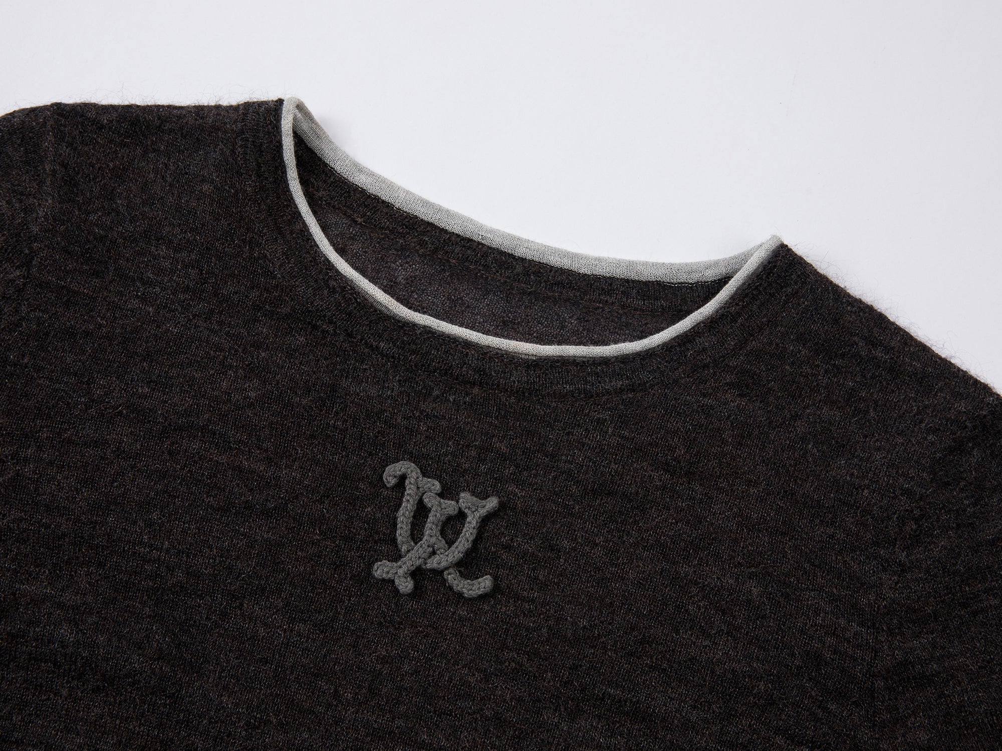 Designed with a contrasting double-layered neckline and cuffs, featuring rolled edges and an asymmetrical cut, creating an effortlessly stylish look.
