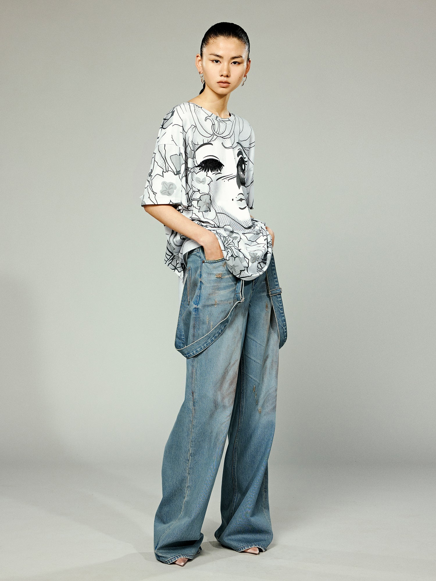 Utilizing pop art techniques like dots, lines, and contrasting colors, enhanced with sequin embellishments, this design magnifies the comic girl's expressions, exuding a vibrant and youthful energy.