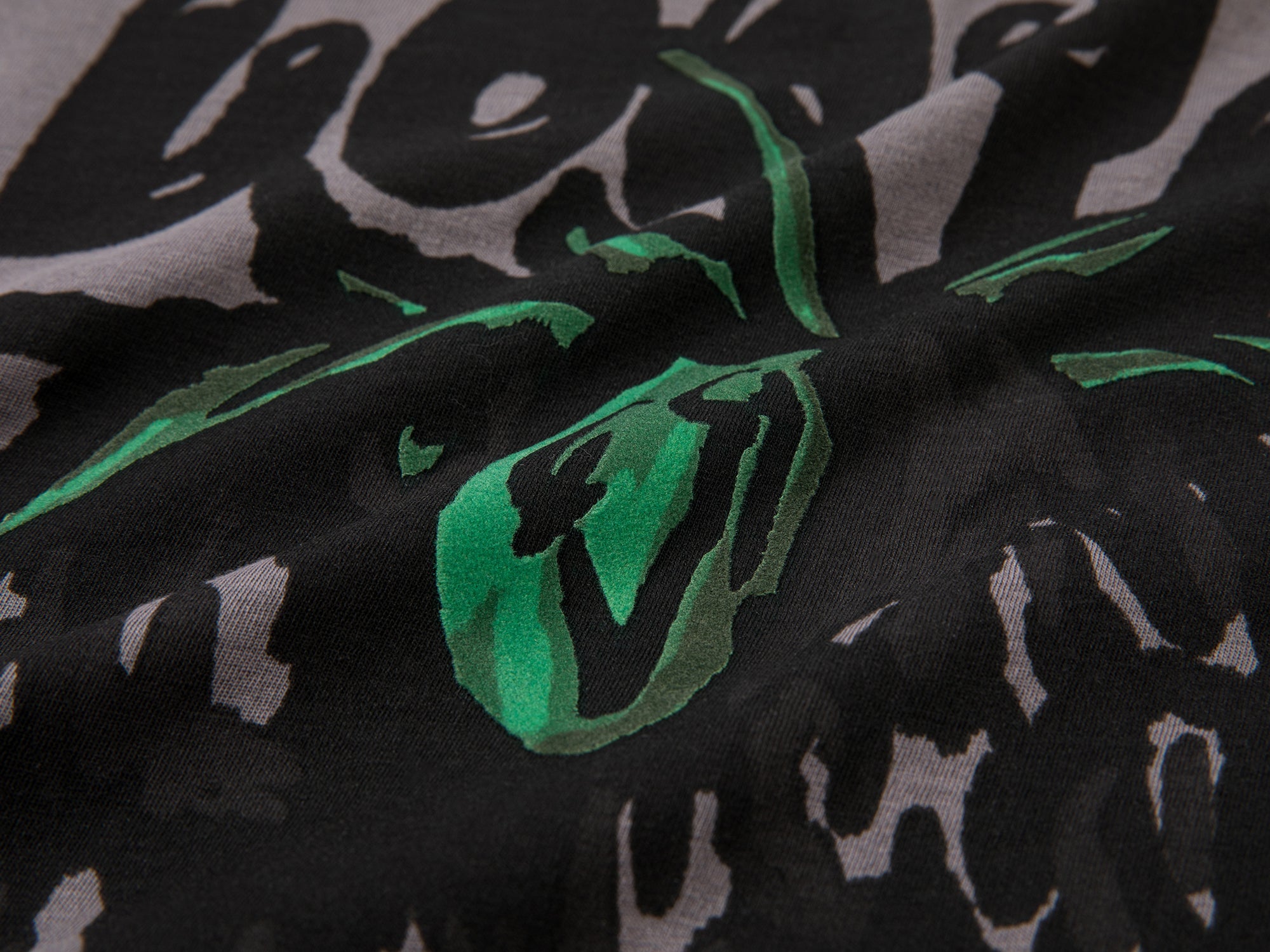 The front logo is combined with a digitally printed, mottled strawberry design, layered with flocked printing for a rich and eye-catching texture.
