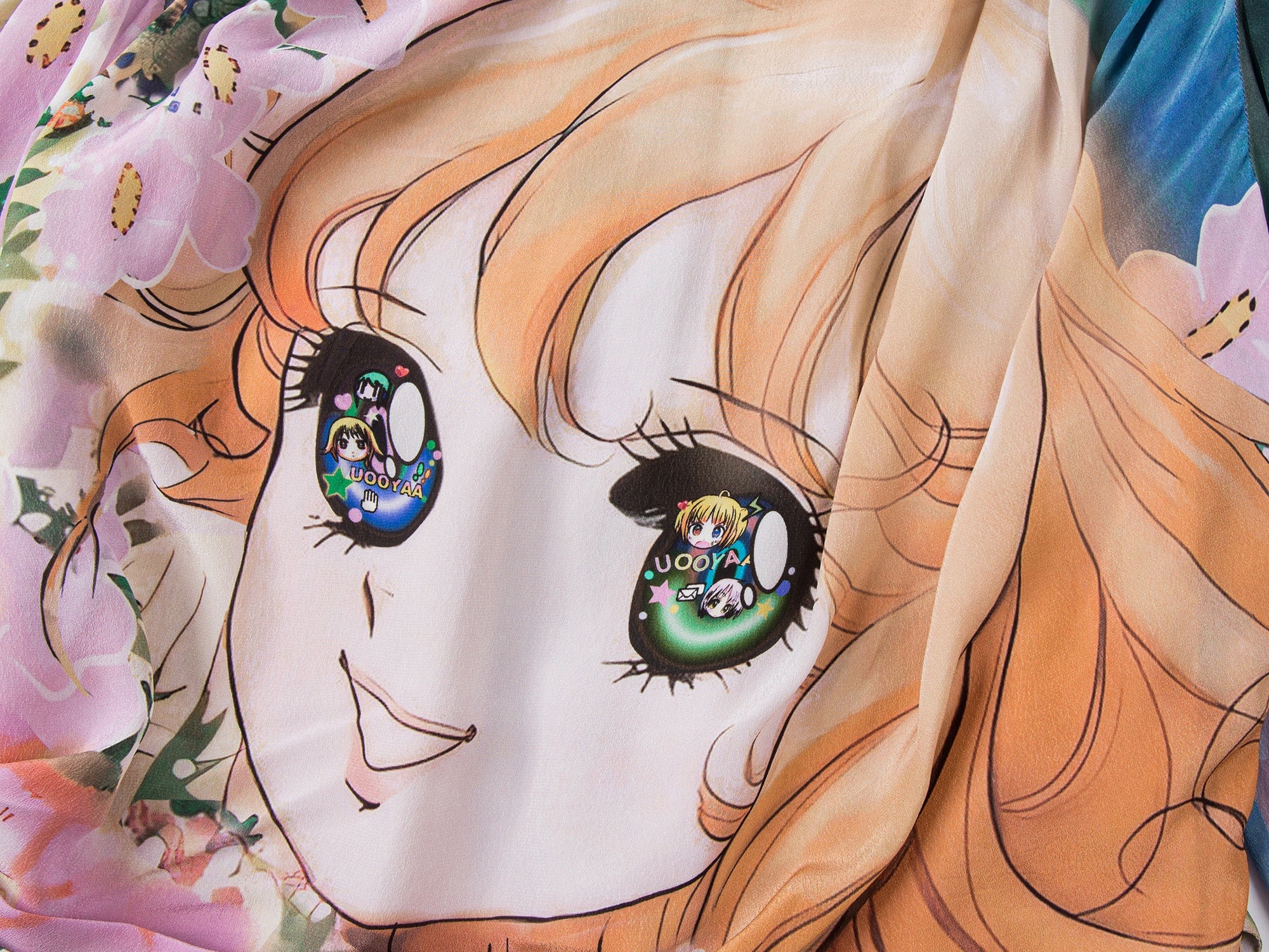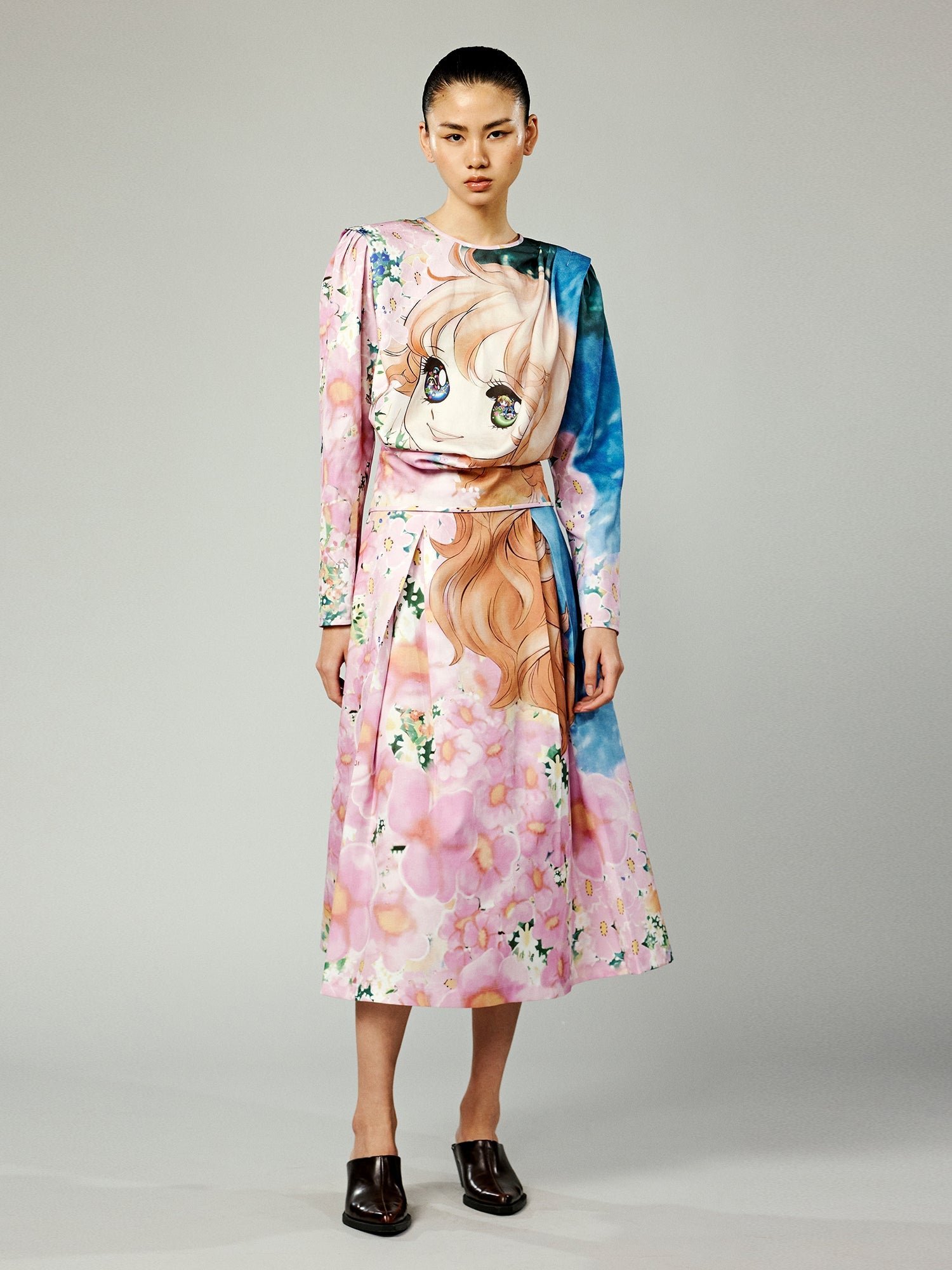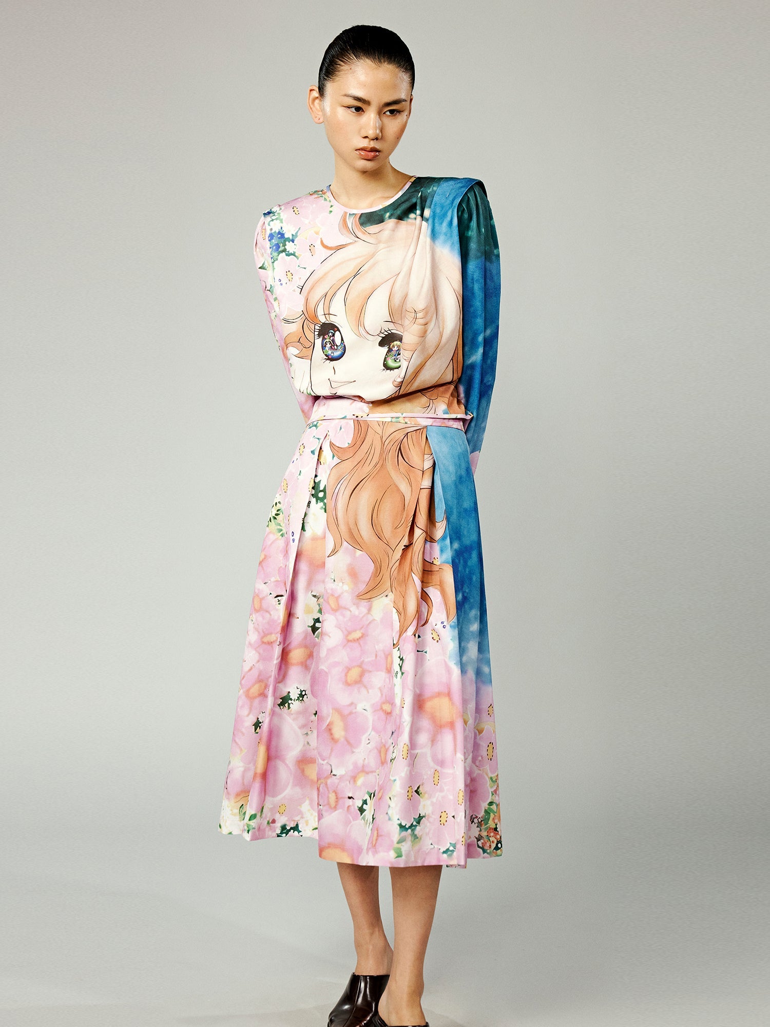 This wide-shouldered top radiates a romantic and playful vibe, enhanced by dreamy colors that amplify the joyful expression of a comic girl.