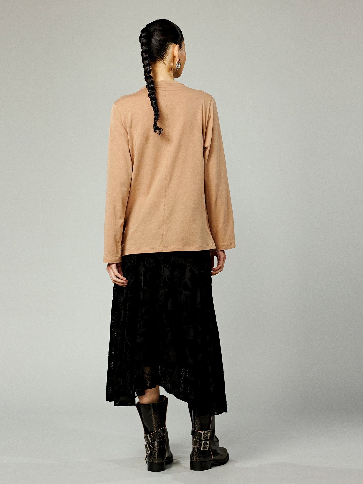 Velvet floral skirt with a chic asymmetrical hem, adding a touch of elegance and flair.