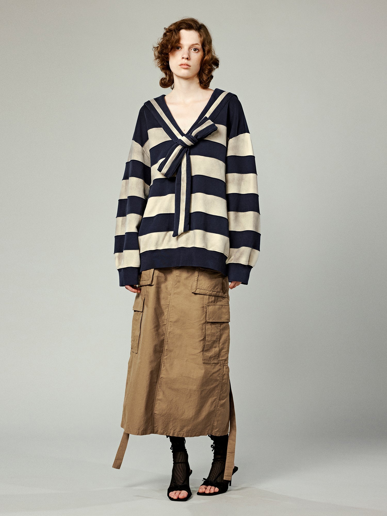 Building on the classic sailor suit with a traditional sailor tie, this sweatshirt features a washed, distressed finish and a relaxed silhouette, giving it a vintage and playful appeal.