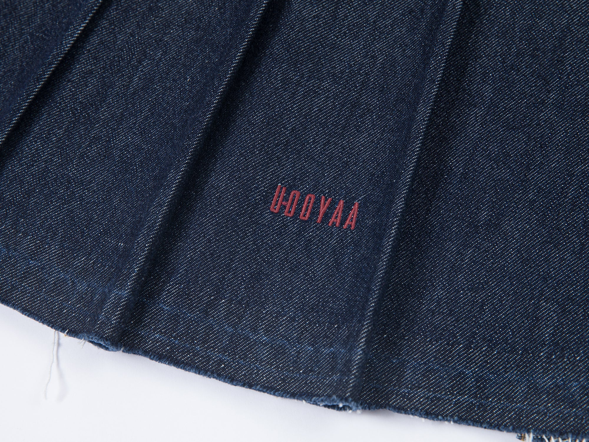 A pleated mini made from washed denim, with a raw hem for a casual, rebellious vibe.