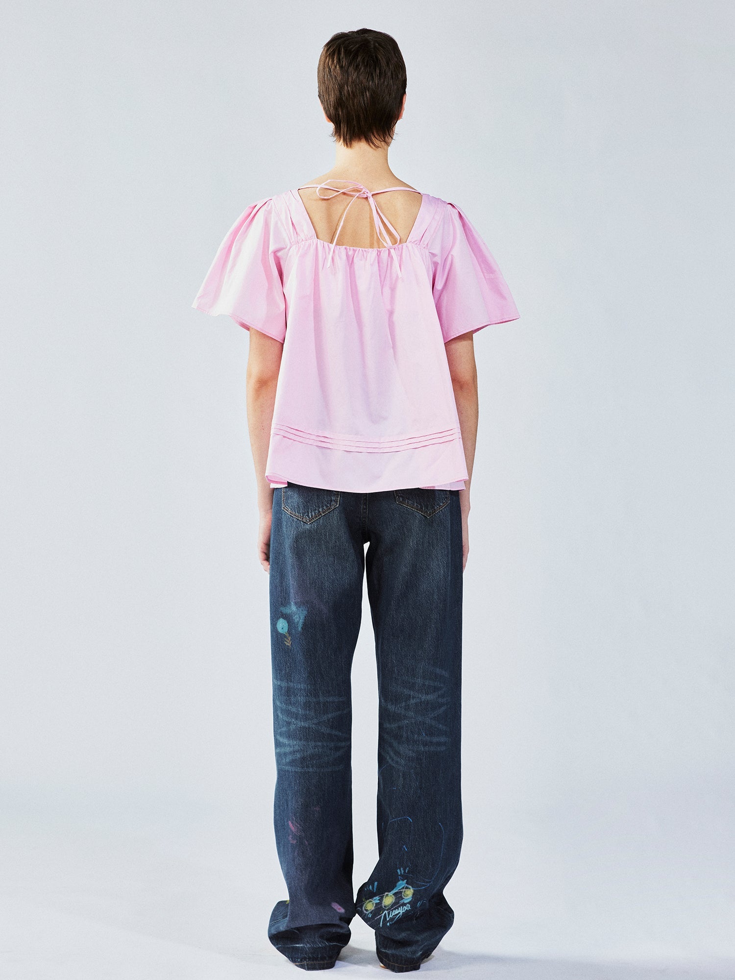 Doll blouse design mixes front tucks and irregular 3D flower appliqu¨¦, full of charm and whimsy.