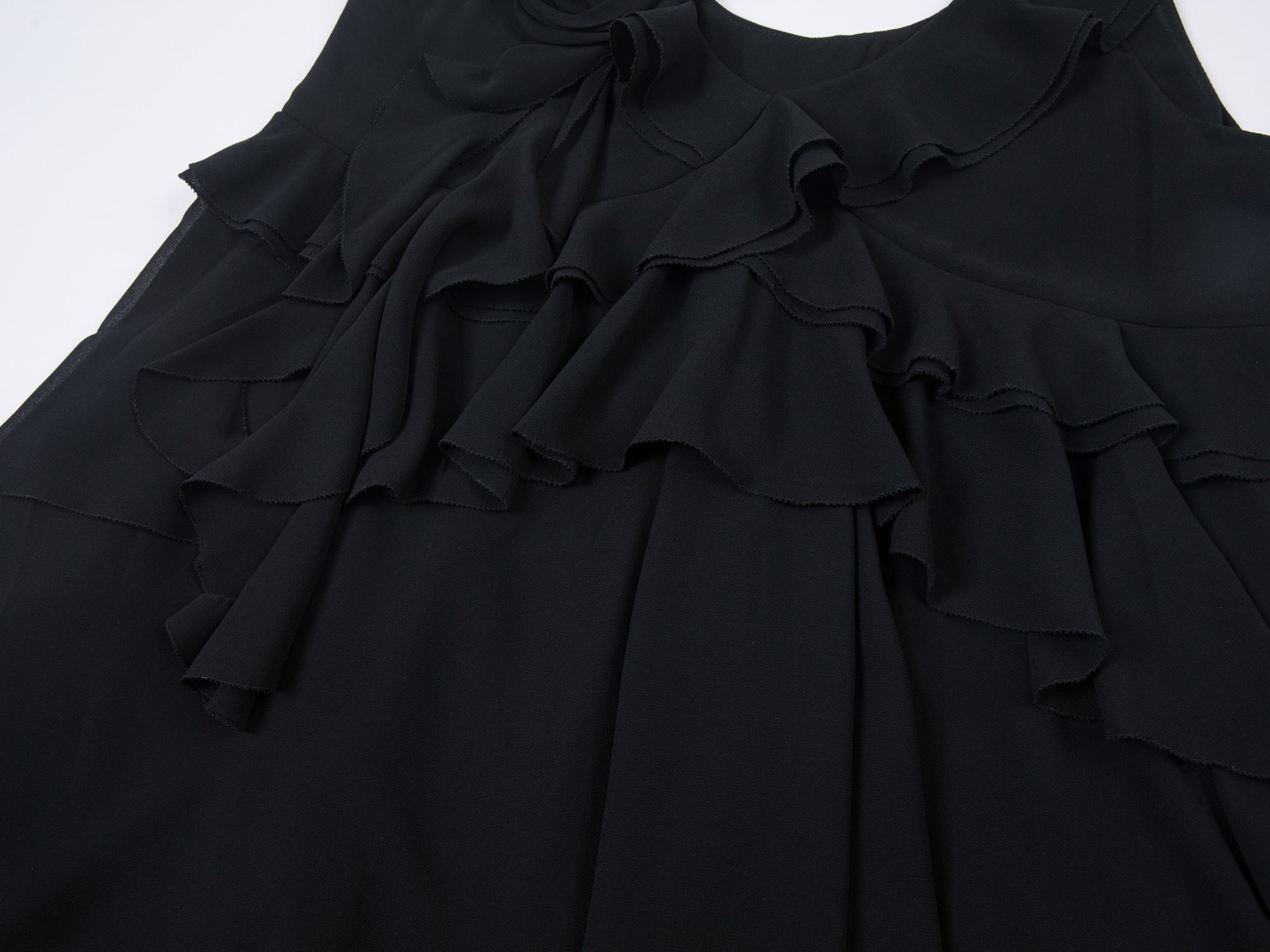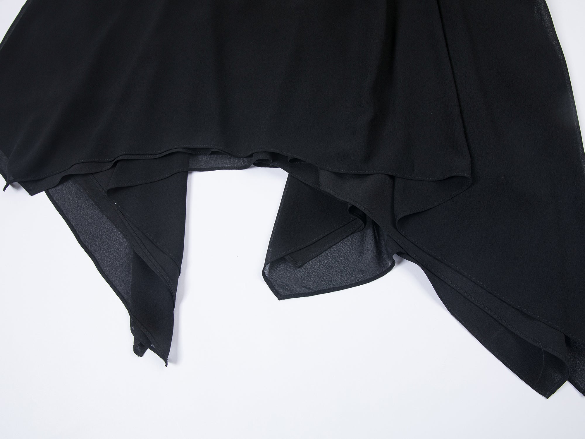 Light chiffon moves with ease. Irregular hem and ruffle layers complete the flowing shape.Care guide: