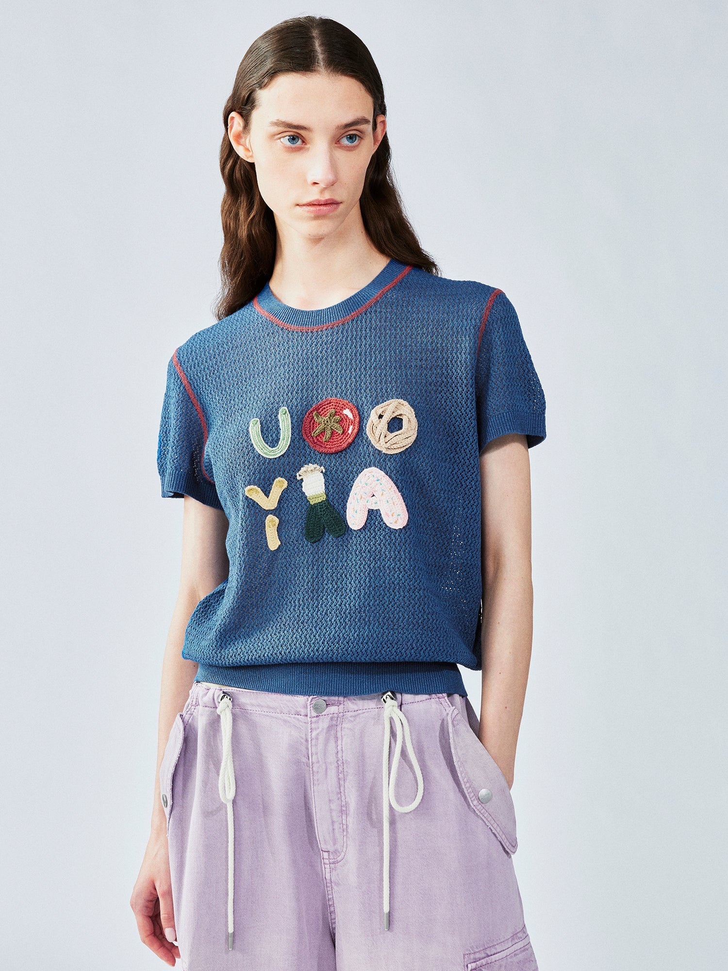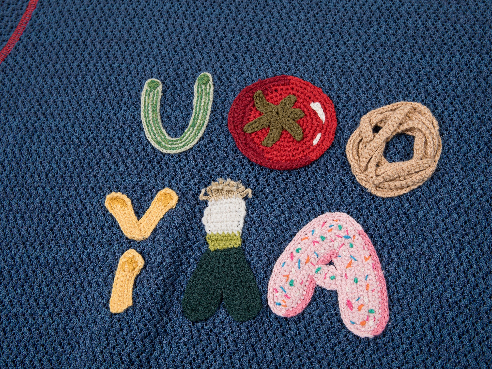 Openwork knit structure feels airy. Hand-crocheted logo delivers depth and a unique handmade touch.