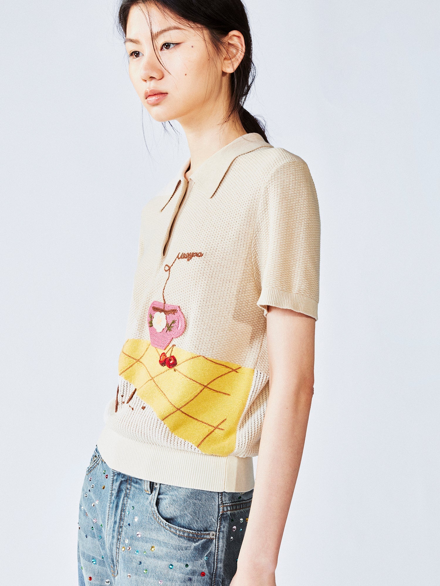 Afternoon tea-inspired polo knit tee