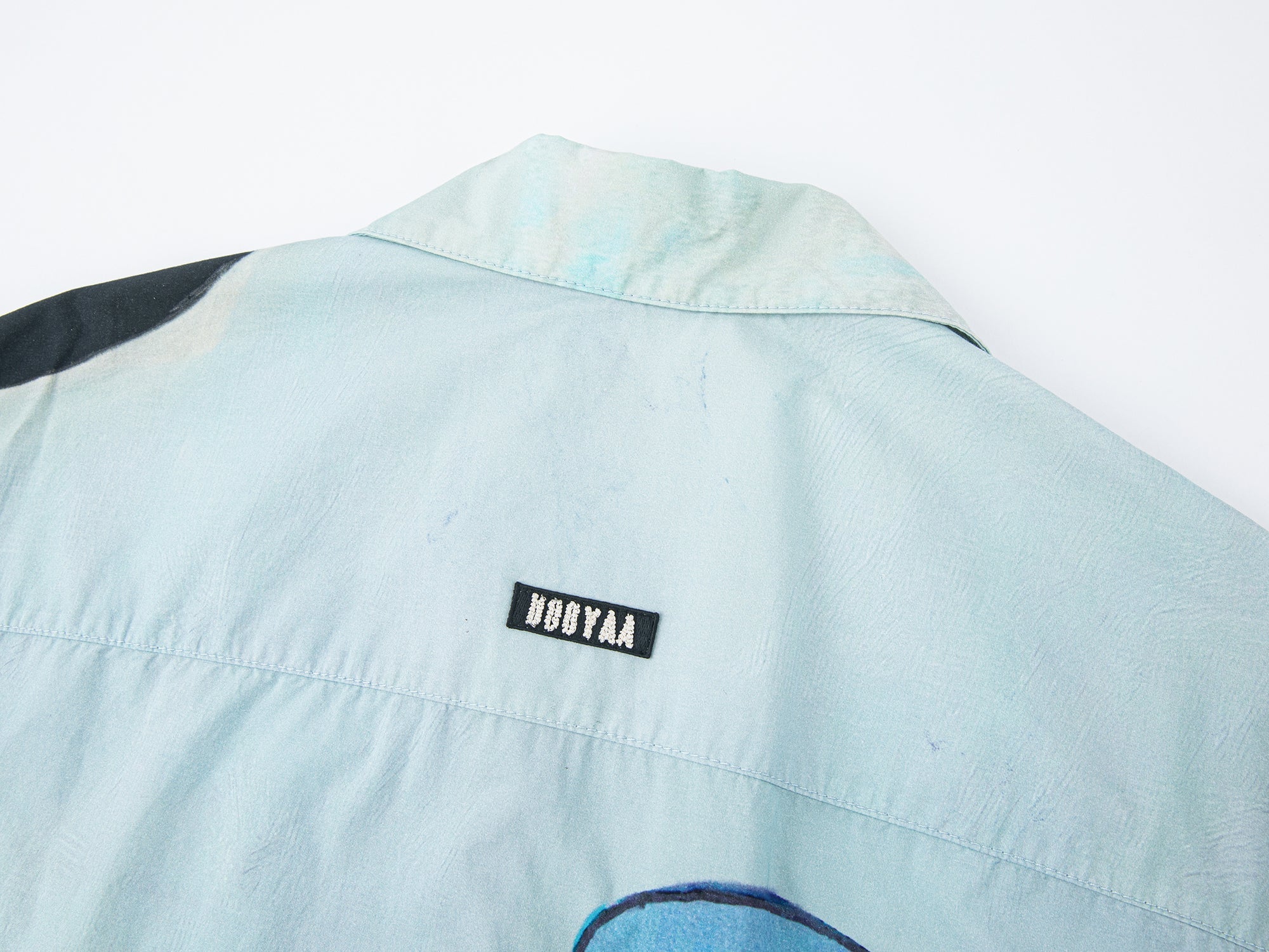 Sketchy strokes and color pops give this Cuban-collar shirt a creative vibe, inspired by meals in daily life.