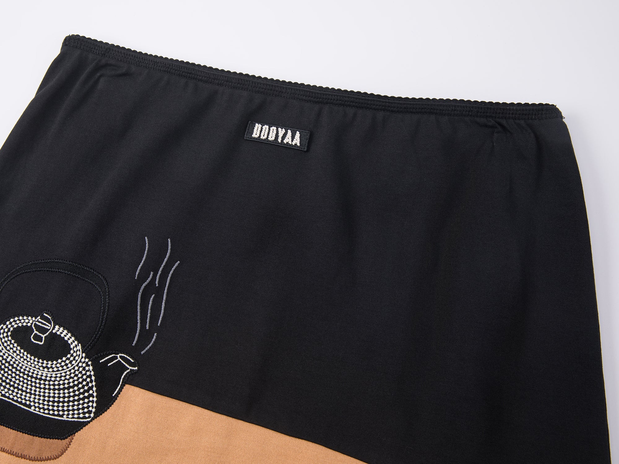 The seafood and wine story continues in this skirt, echoing a cozy shared meal.