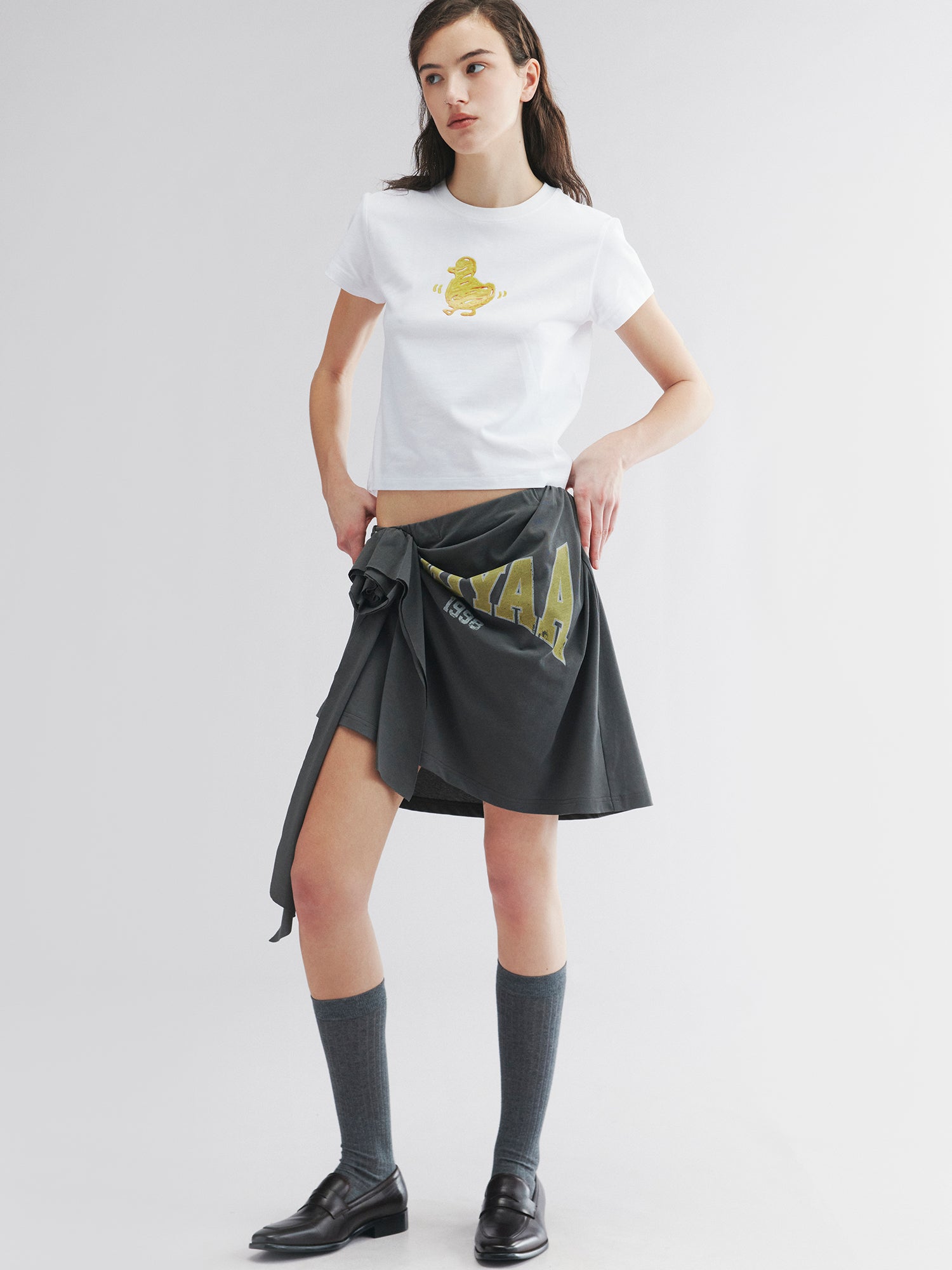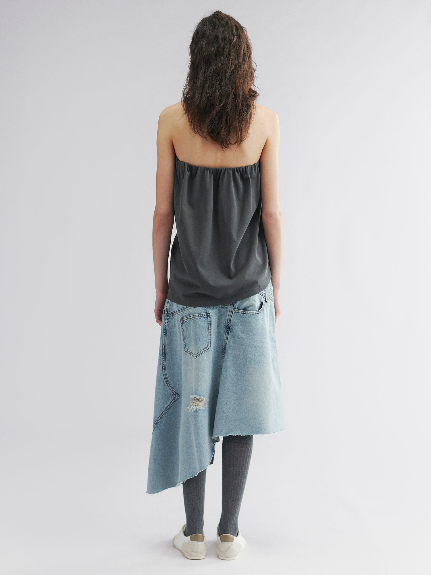 A vintage tee reimagined as a tube top with draped structure and layered 3D florals¡ªlaid-back and expressive.