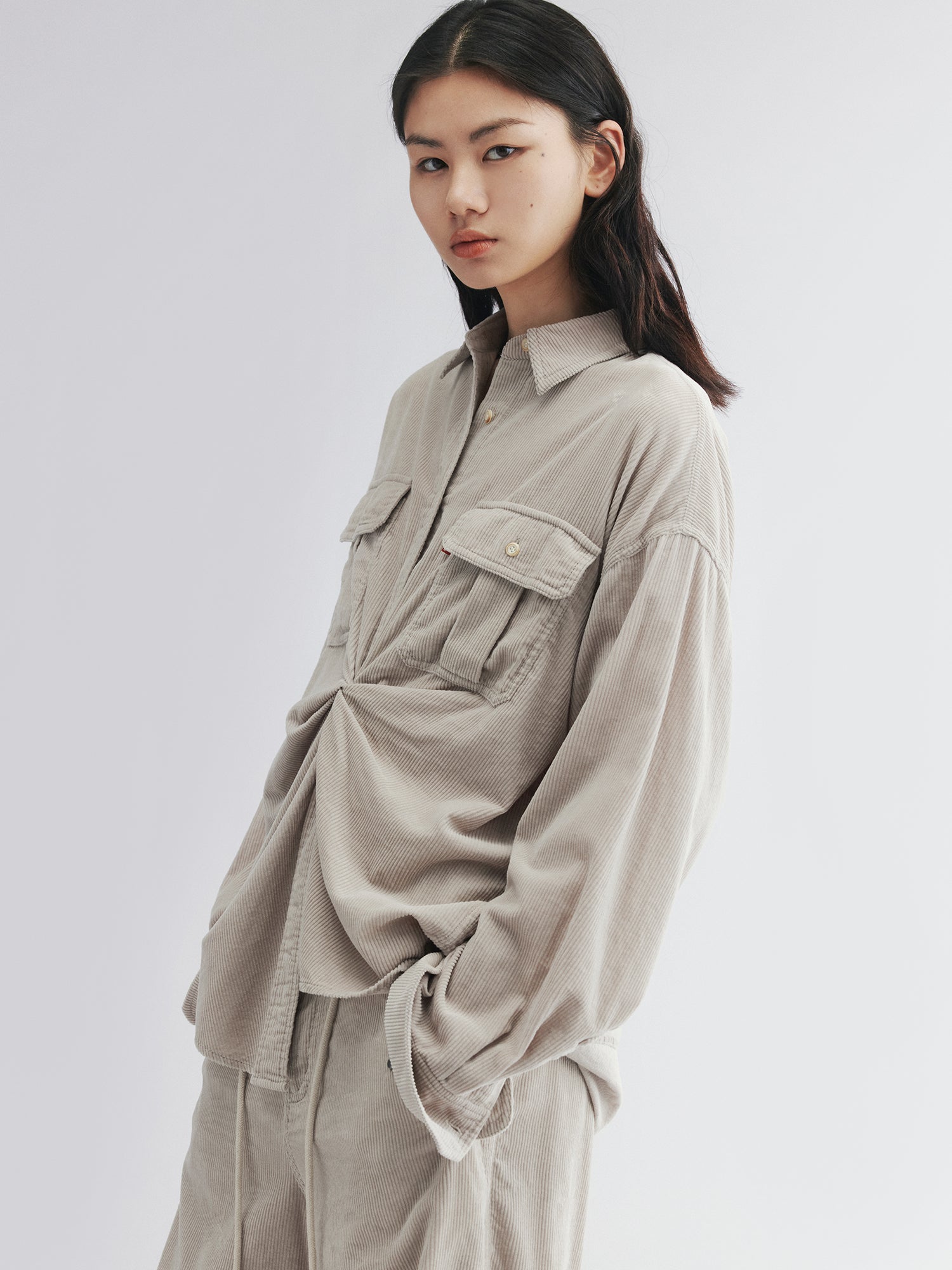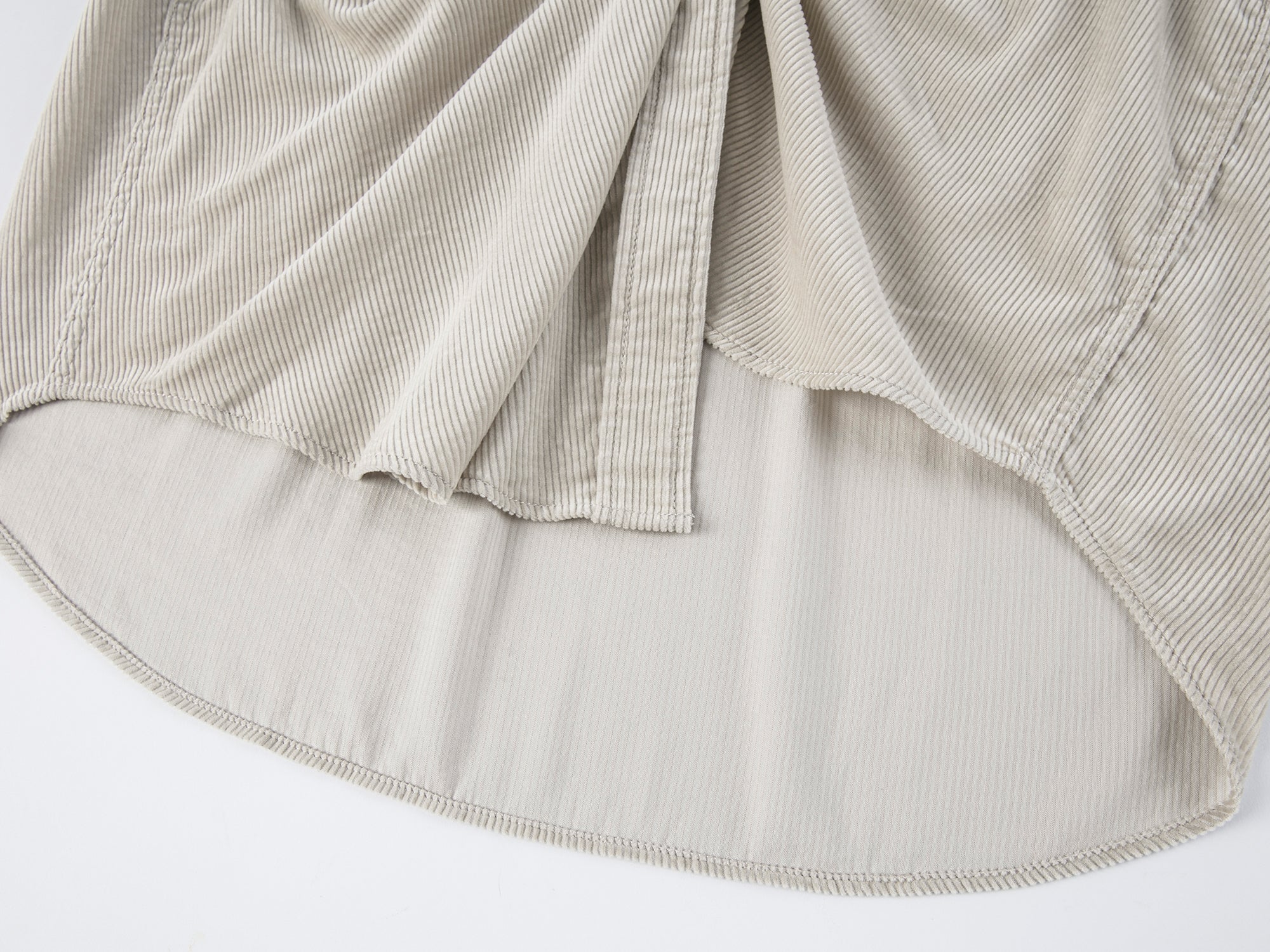 Soft corduroy shirt with a knotted front design. Mixes utility with relaxed ease for everyday wear.