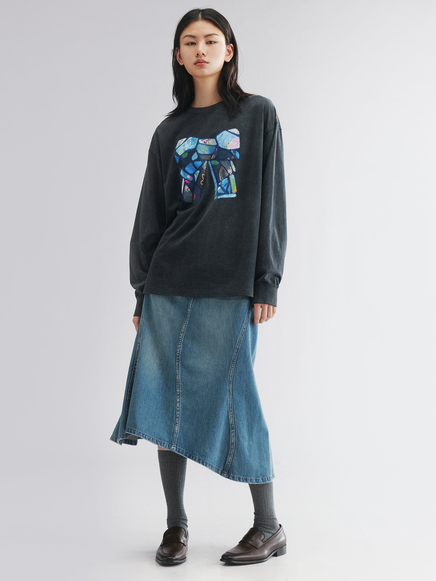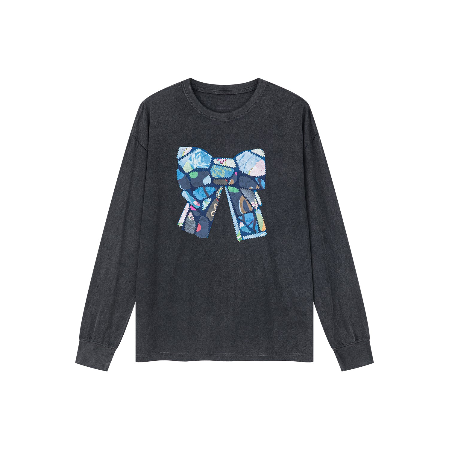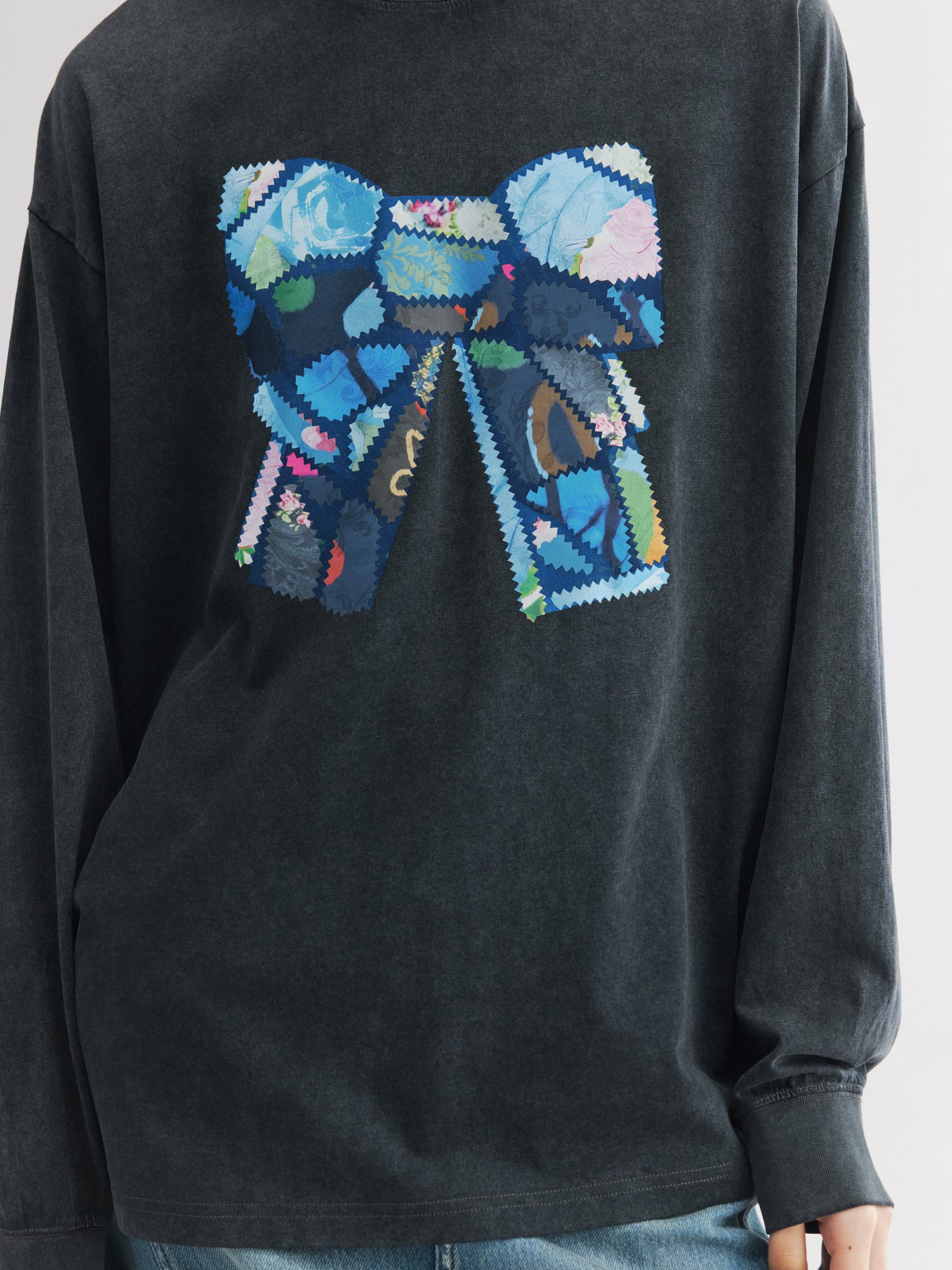 Uses floral patchwork to recreate the bow motif, giving a worn-in tee an artistic and expressive look.