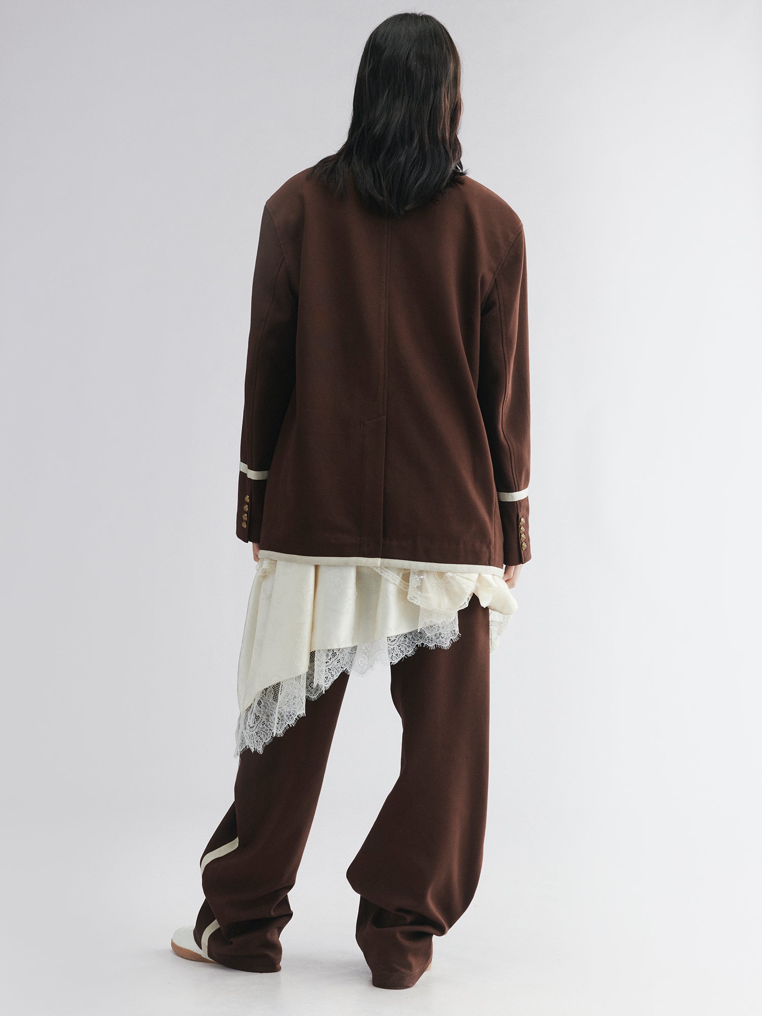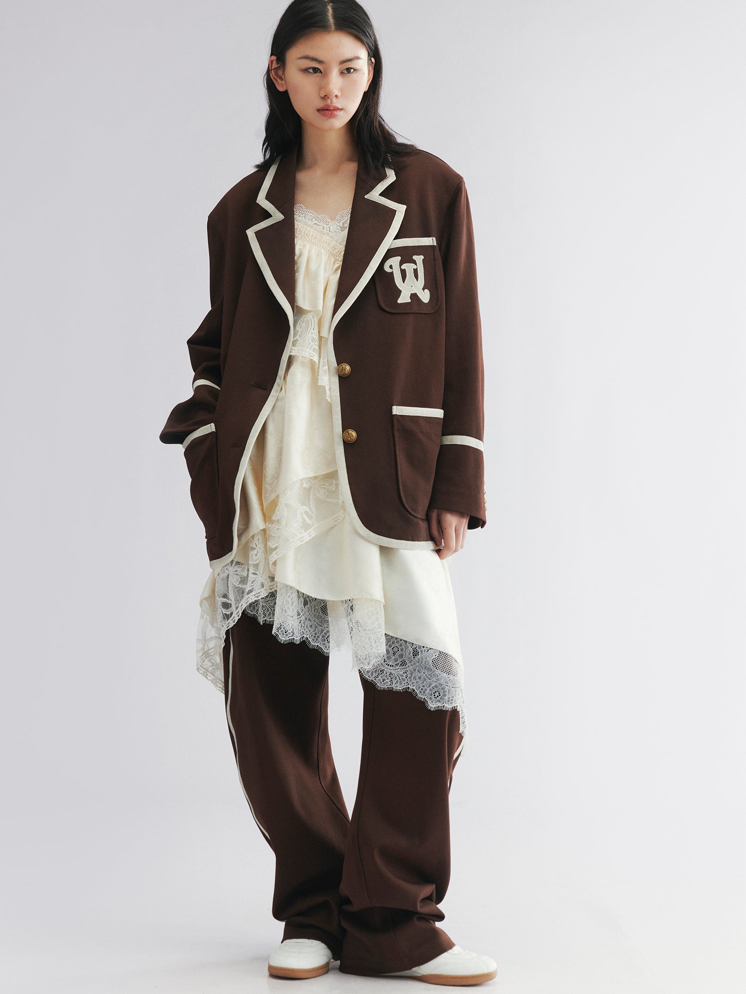 Reworks the UOOYAA classic blazer with a worn-in finish for a nostalgic school vibe. Relaxed cut ensures comfort.