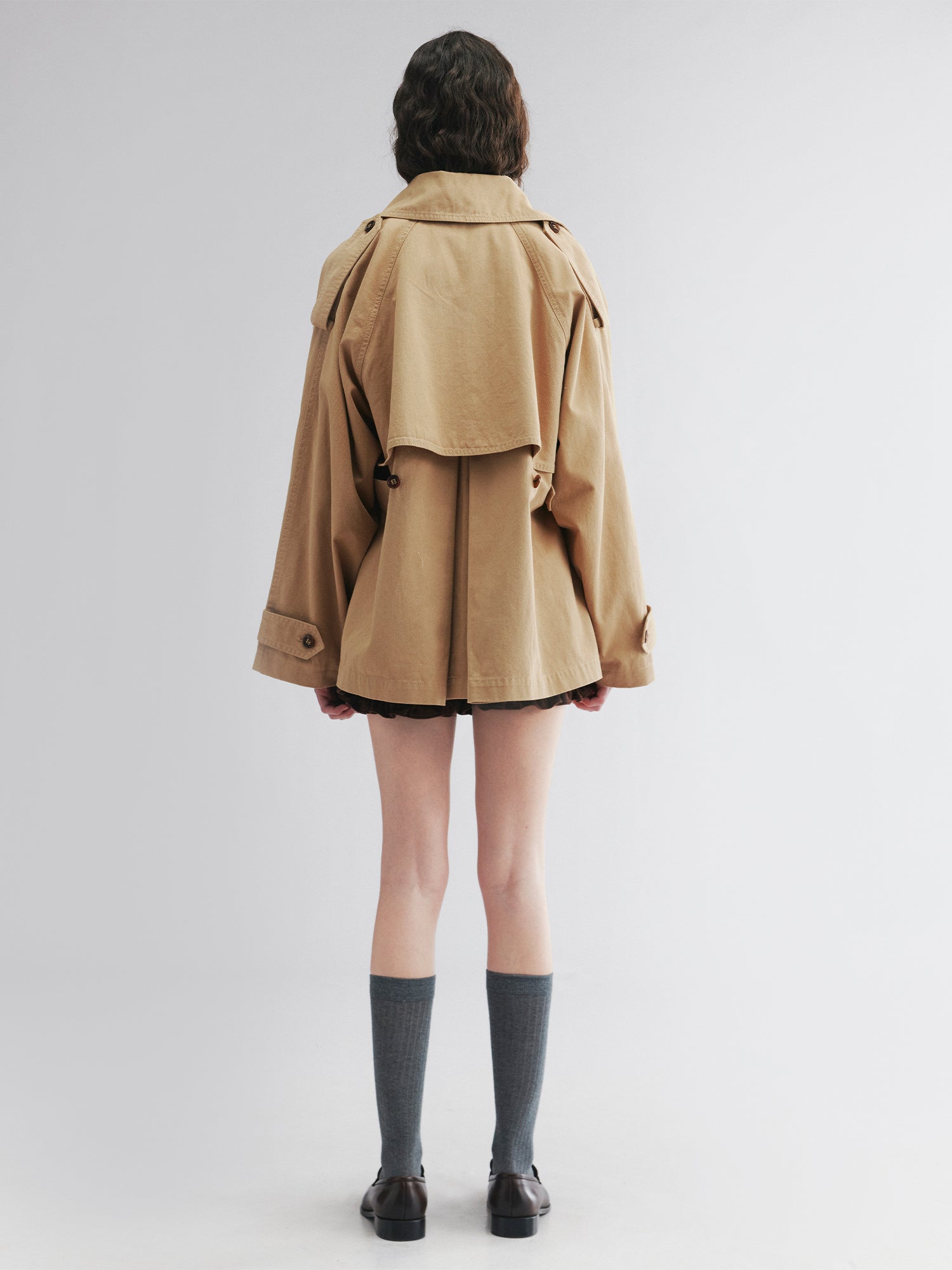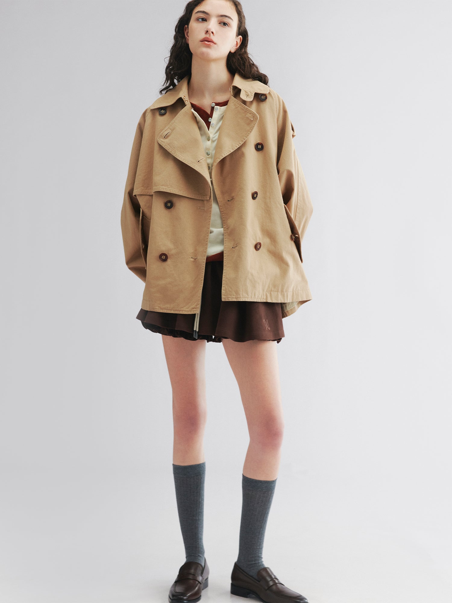 A modern take on the classic Westminster trench, tailored in a clean A-line silhouette and short length for a playful yet effortless style.