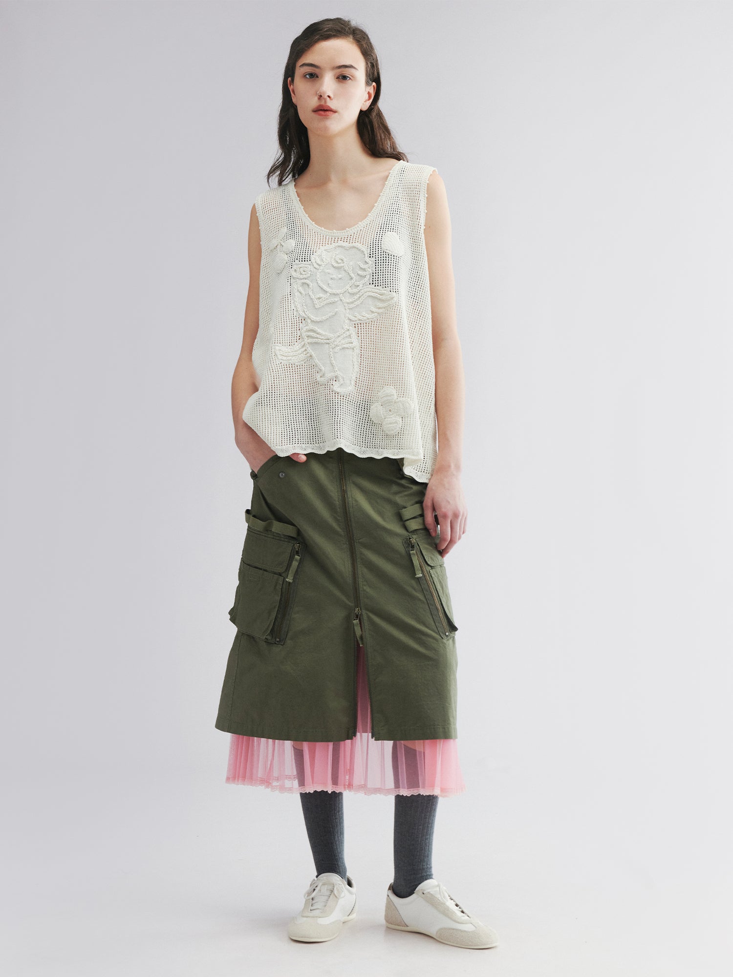 Rendered in delicate embroidery, the cherubic love angel adds a romantic and playful touch with rich handcrafted dimension.