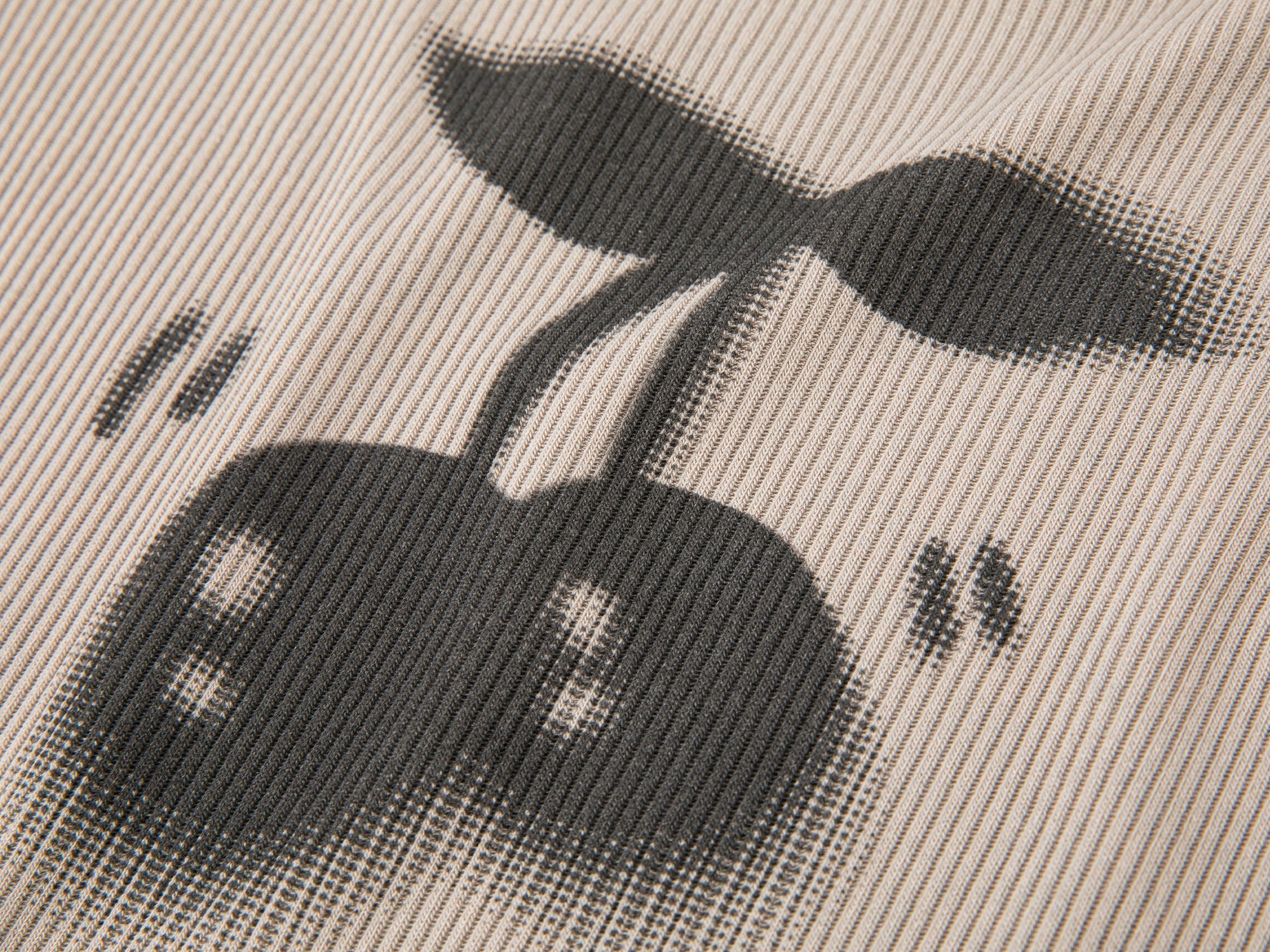 A classic cherry motif adds a playful twist to this simplified layered tee, infusing the look with youthful energy.