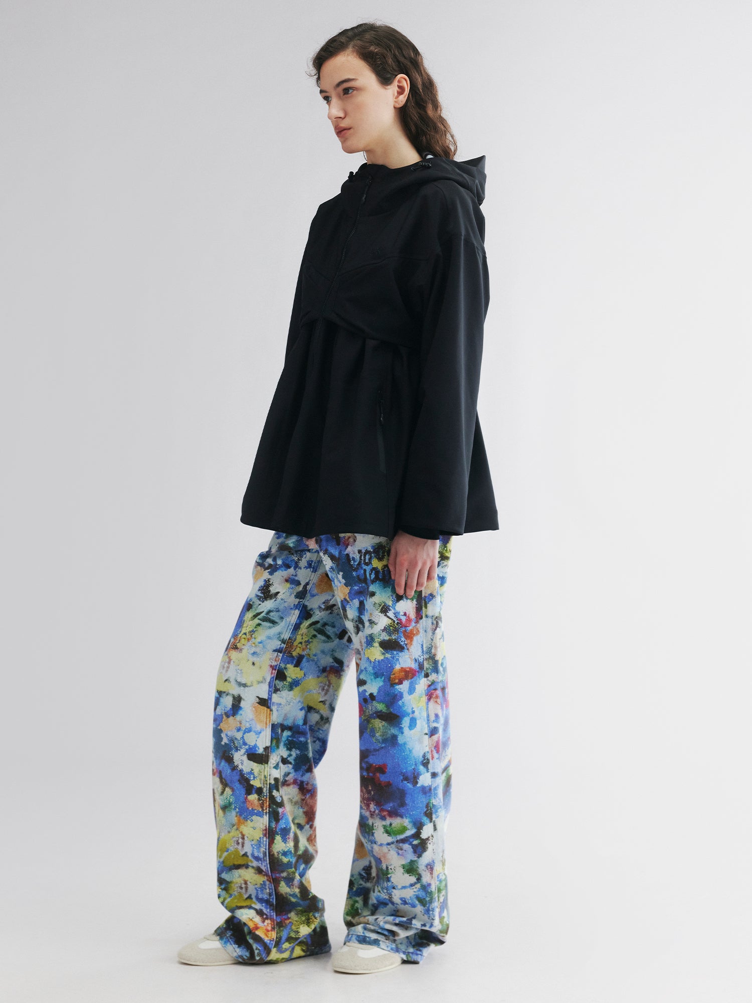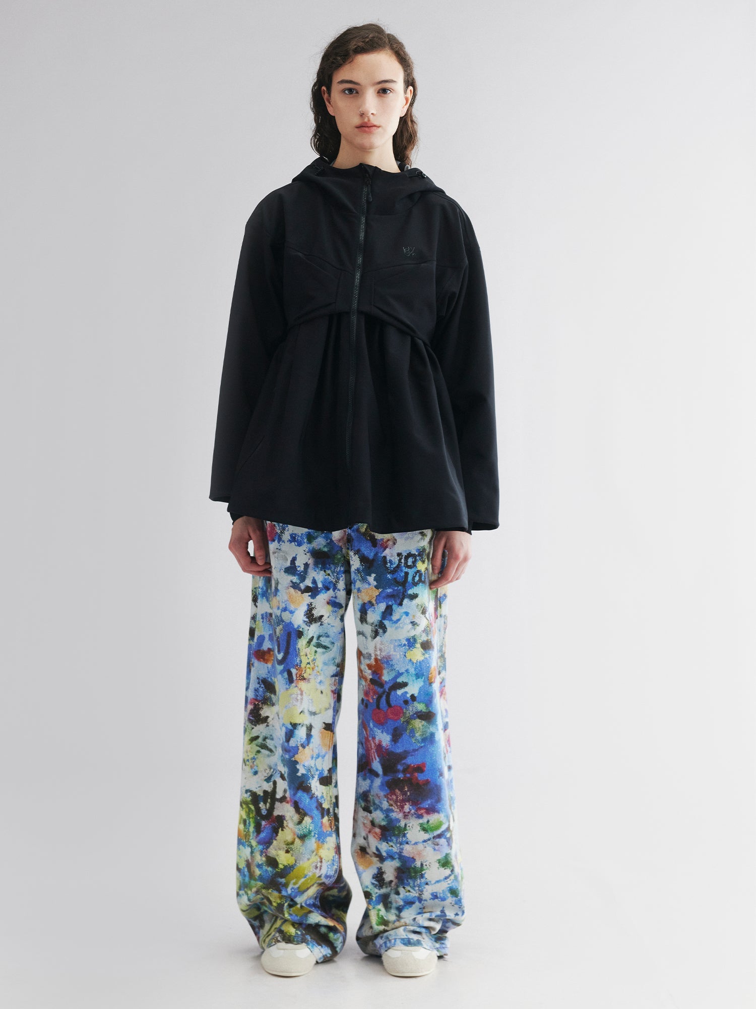 A classic bow element is reinterpreted in a functional outdoor jacket, redesigned in a playful A-line silhouette that blends style with utility.