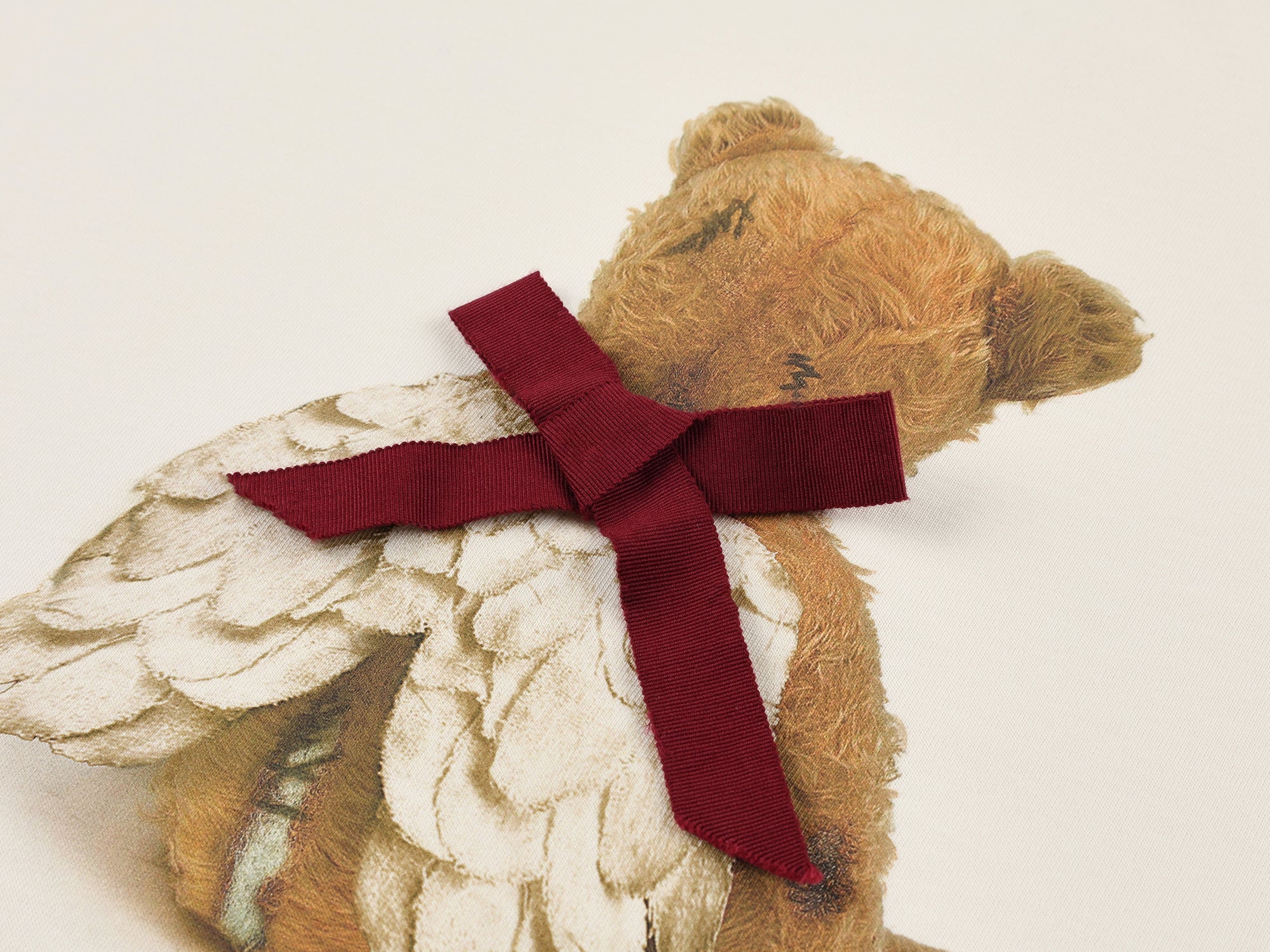 The angel-wing bear motif is placed on the back of the long-sleeve t-shirt, paired with a detachable bow for a comforting detail.