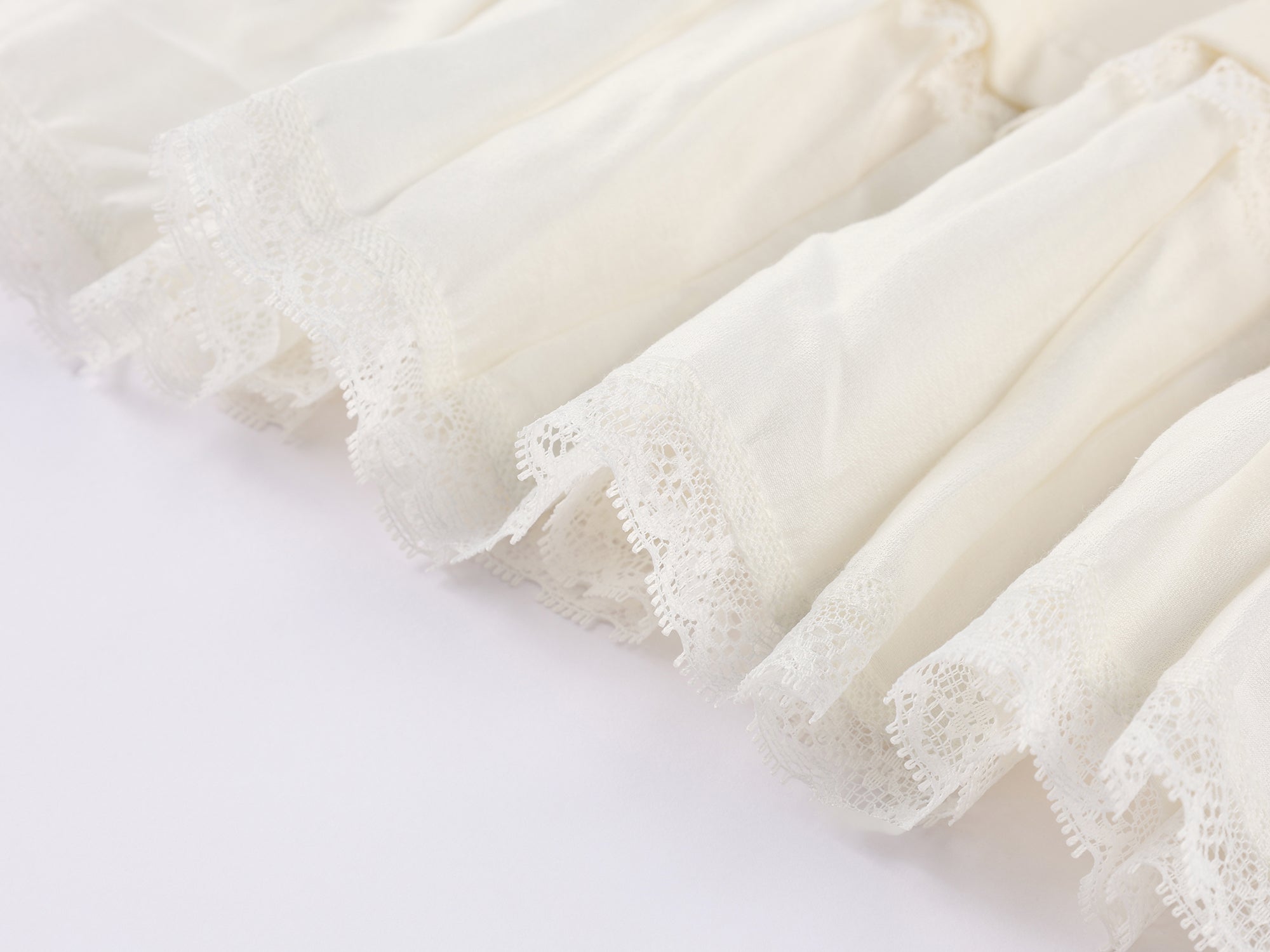 Designed with a pleated lace skirt panel, combining softness and playful energy for a youthful style.Fabric: