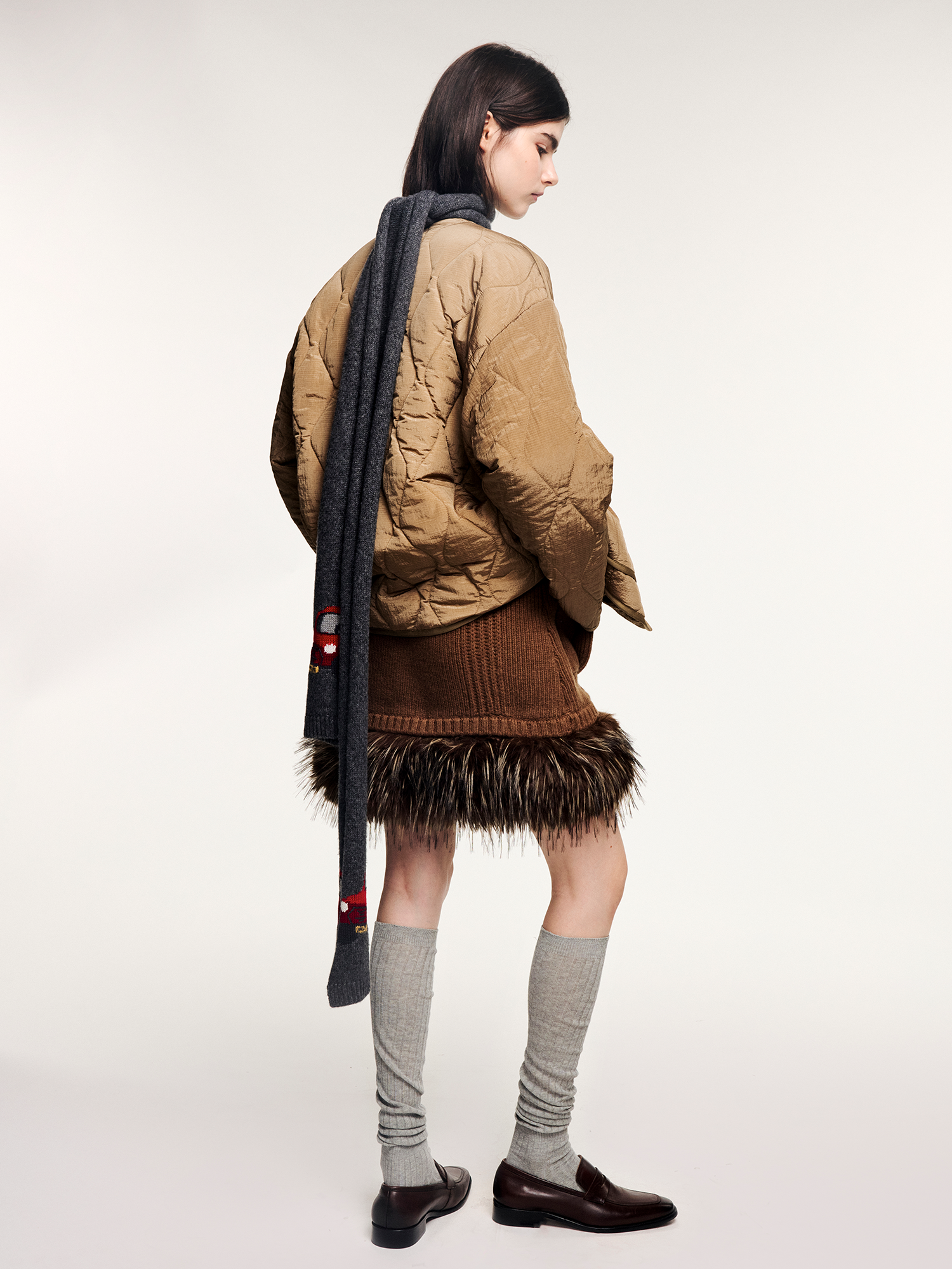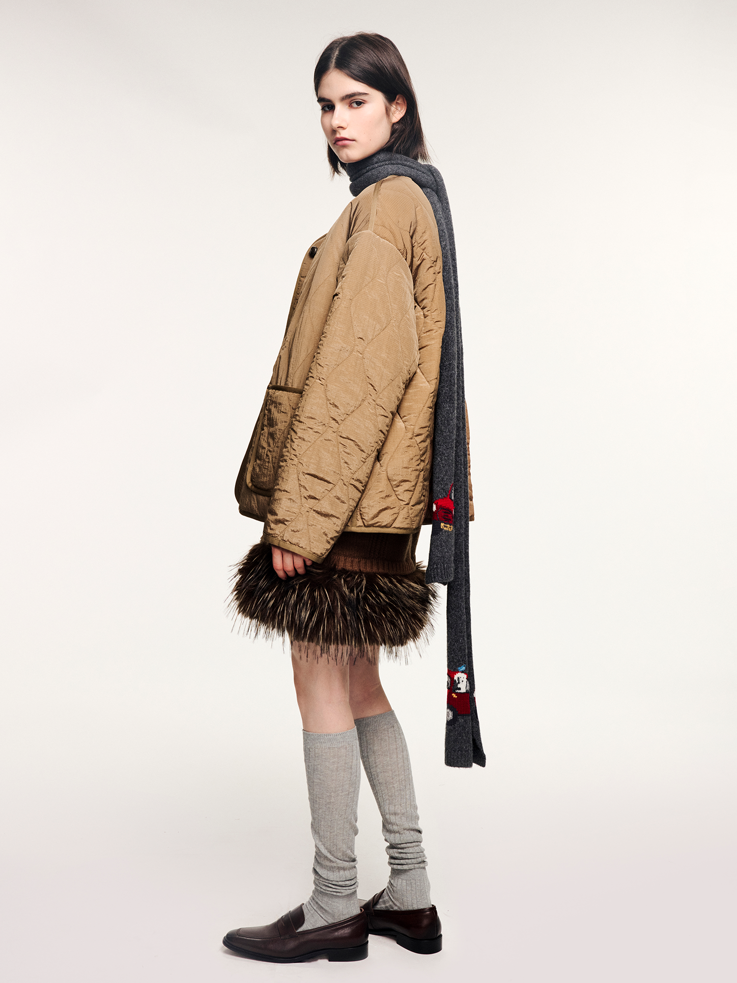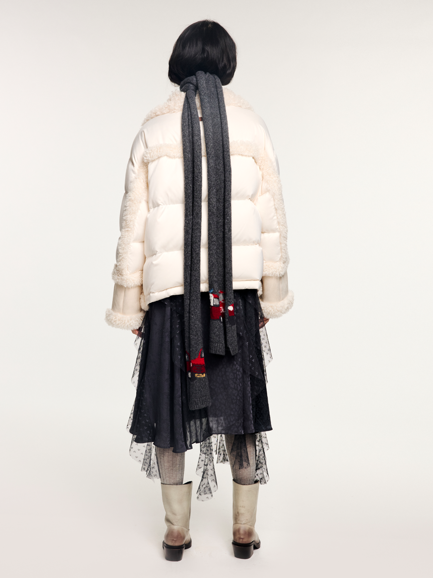 Tencel wool scarf with traveling puppy motif