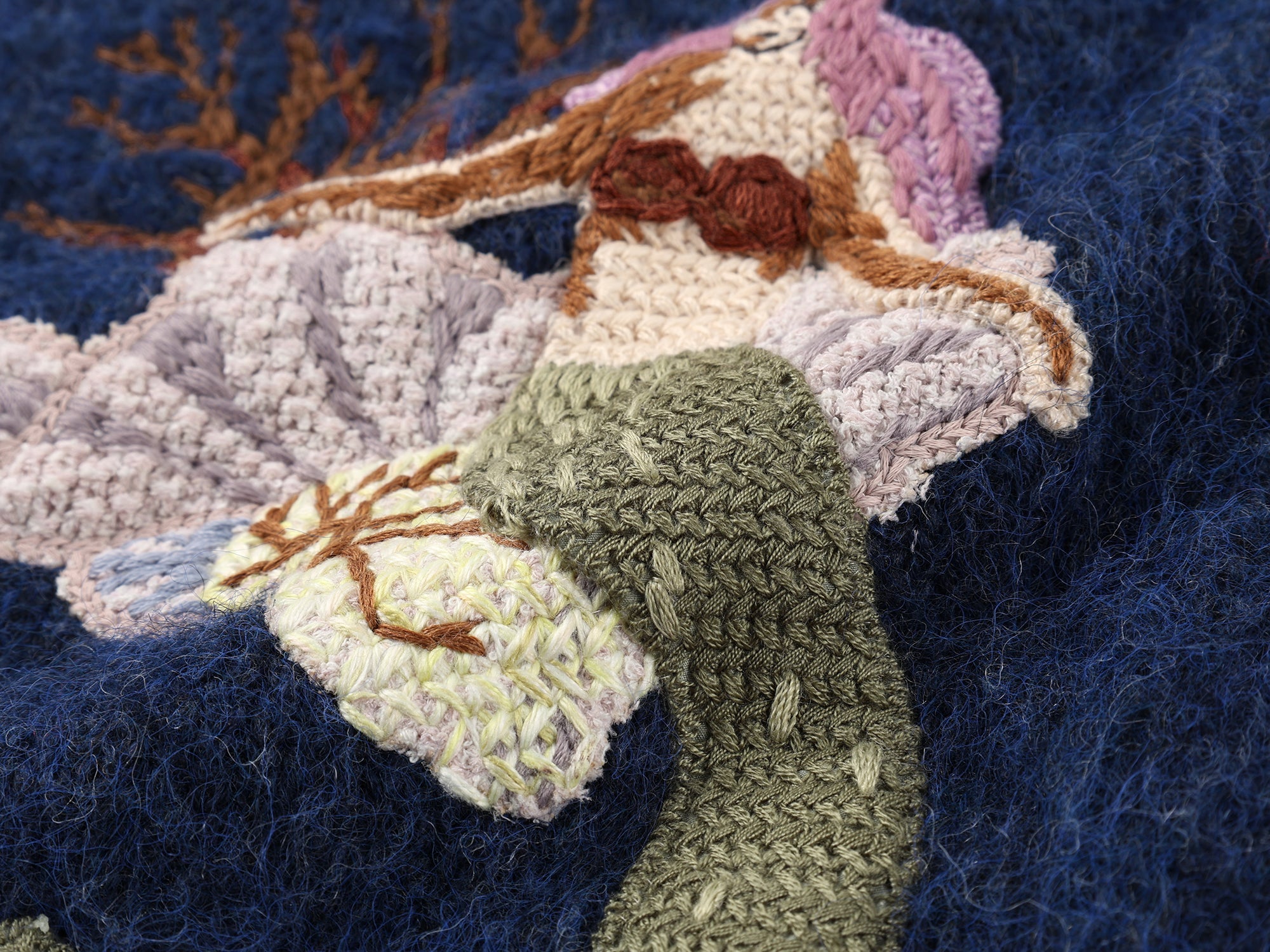 Dreamy, soft colors create a fairytale atmosphere. Alpaca blend yarn offers a smooth, long-pile touch and rich texture.Fabric:
