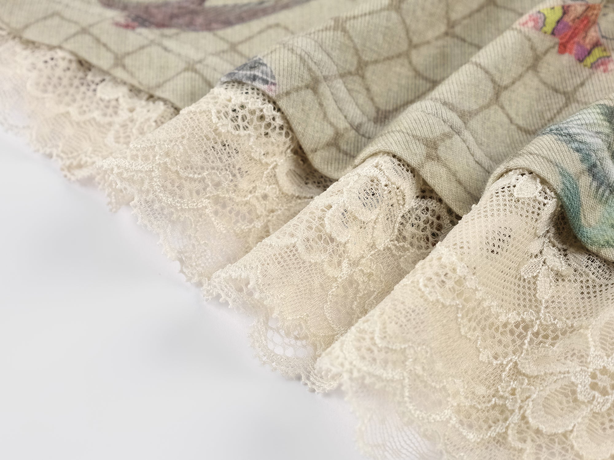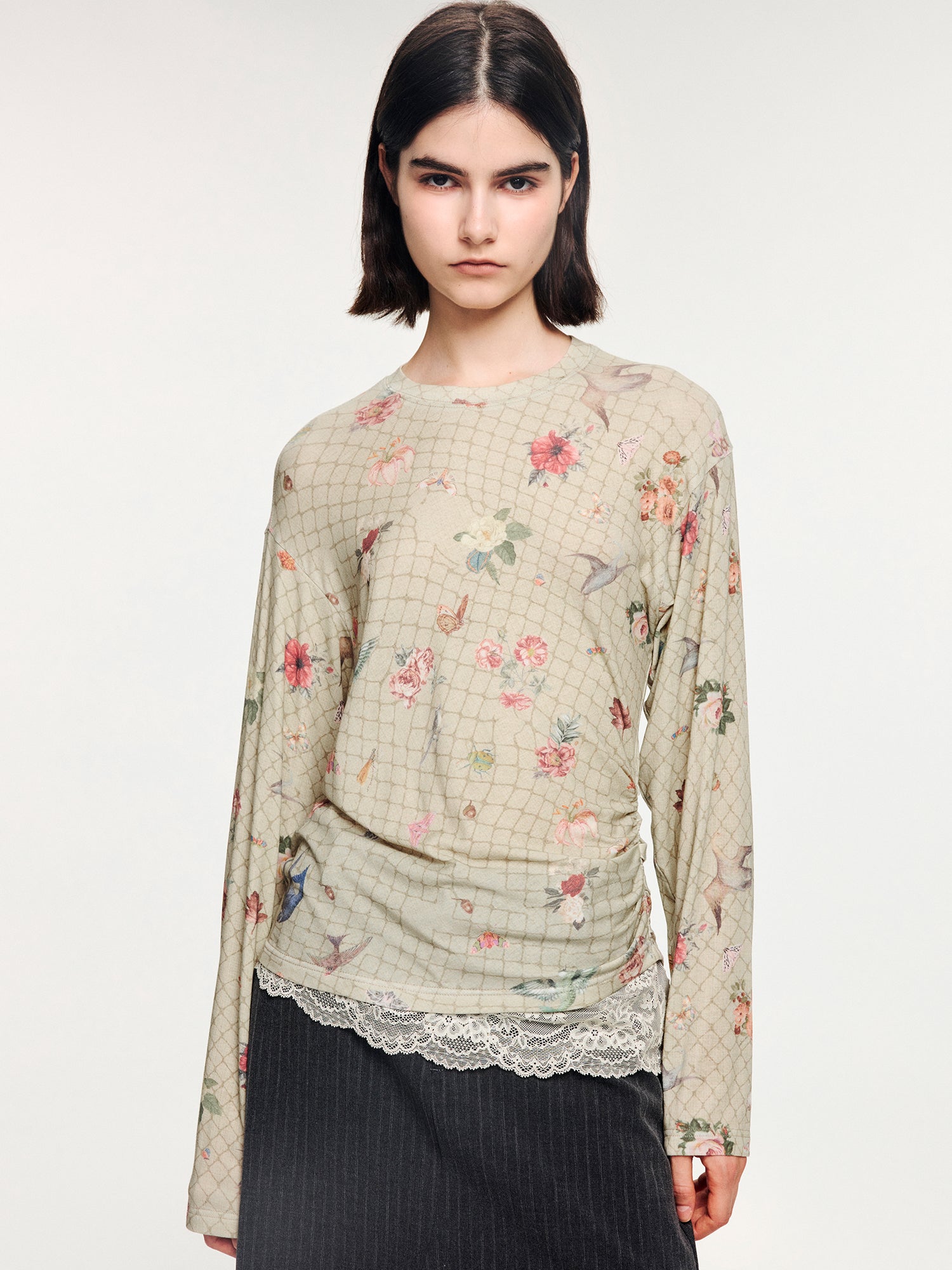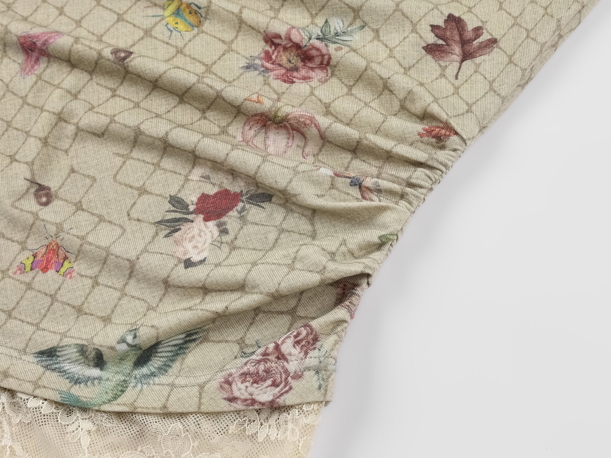 Plants, animals, and insects from a surreal garden create a magical world, finished with a lace-trimmed hem for a romantic yet fantastical everyday tee.