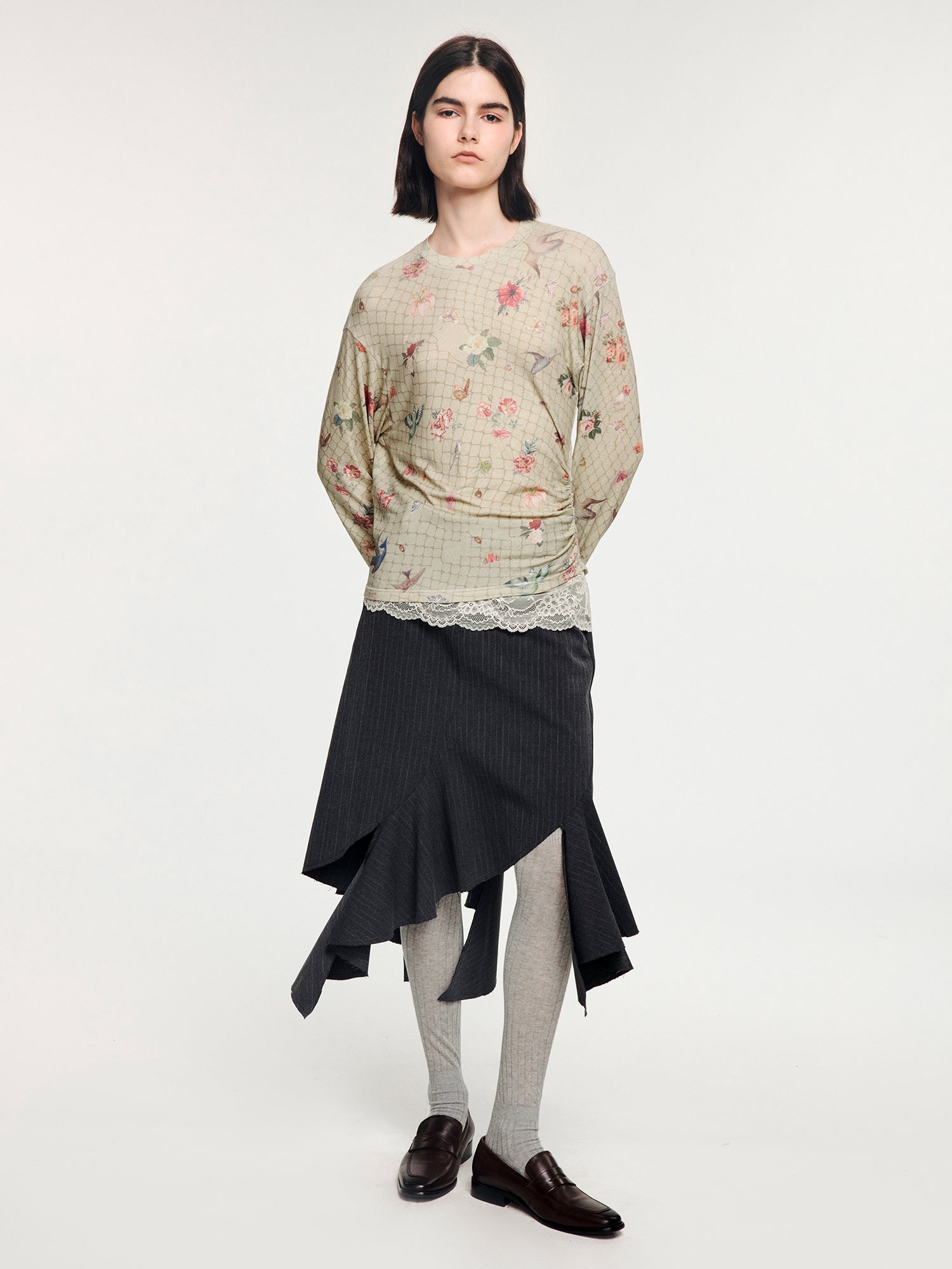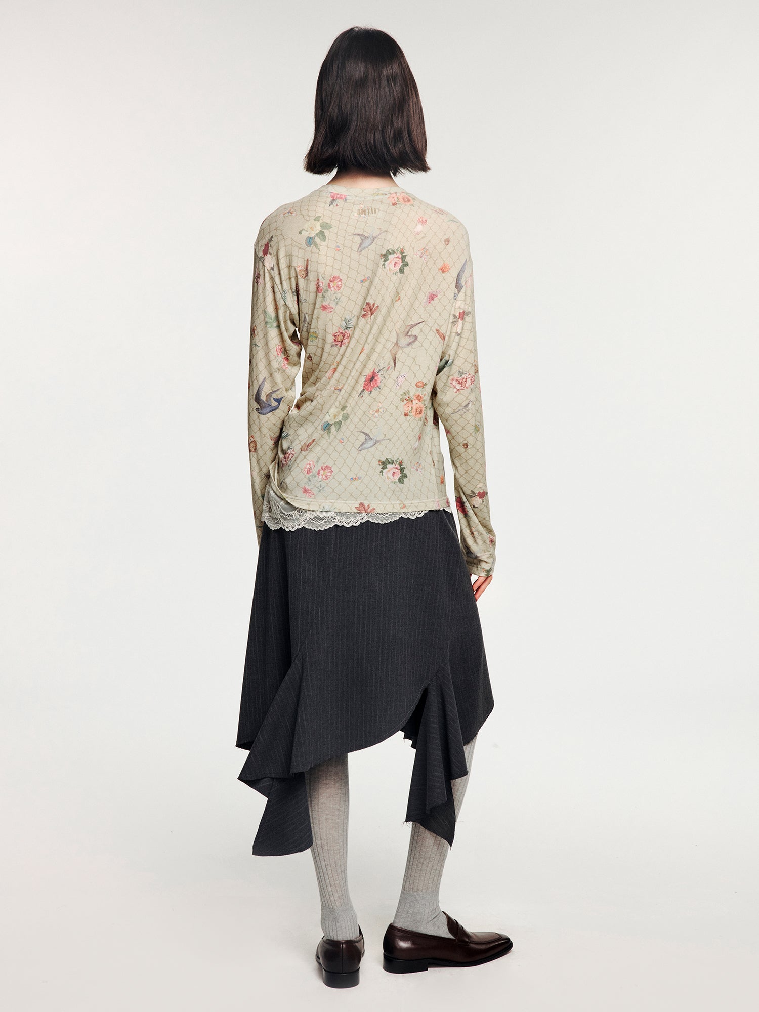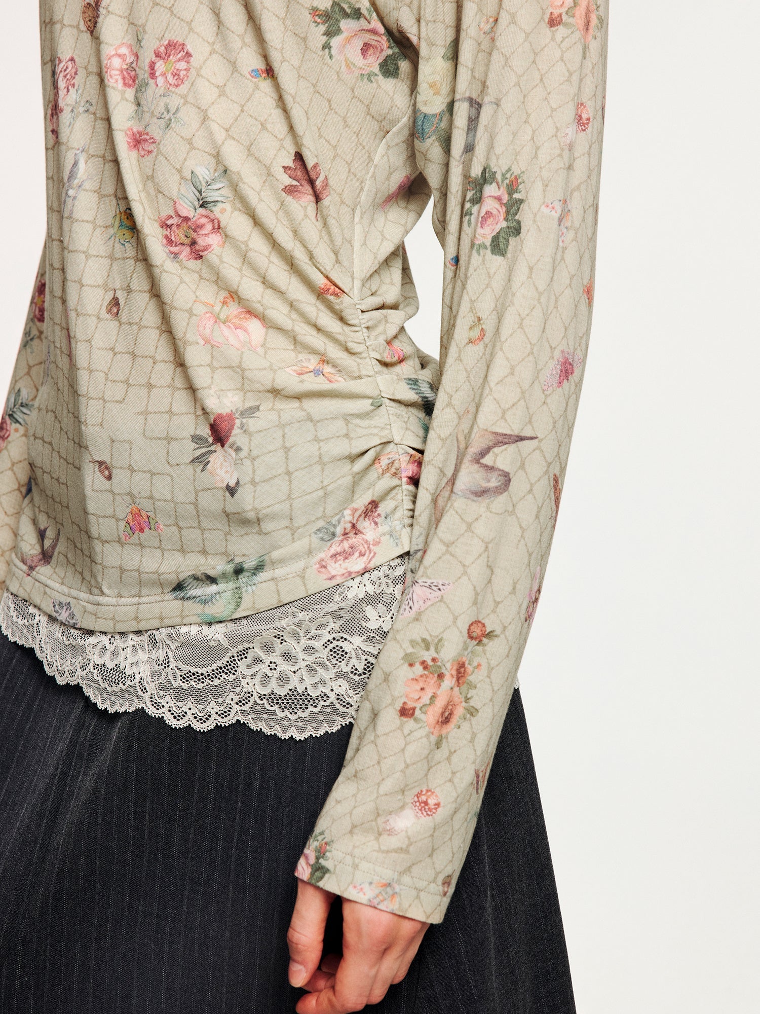 Plants, animals, and insects from a surreal garden create a magical world, finished with a lace-trimmed hem for a romantic yet fantastical everyday tee.