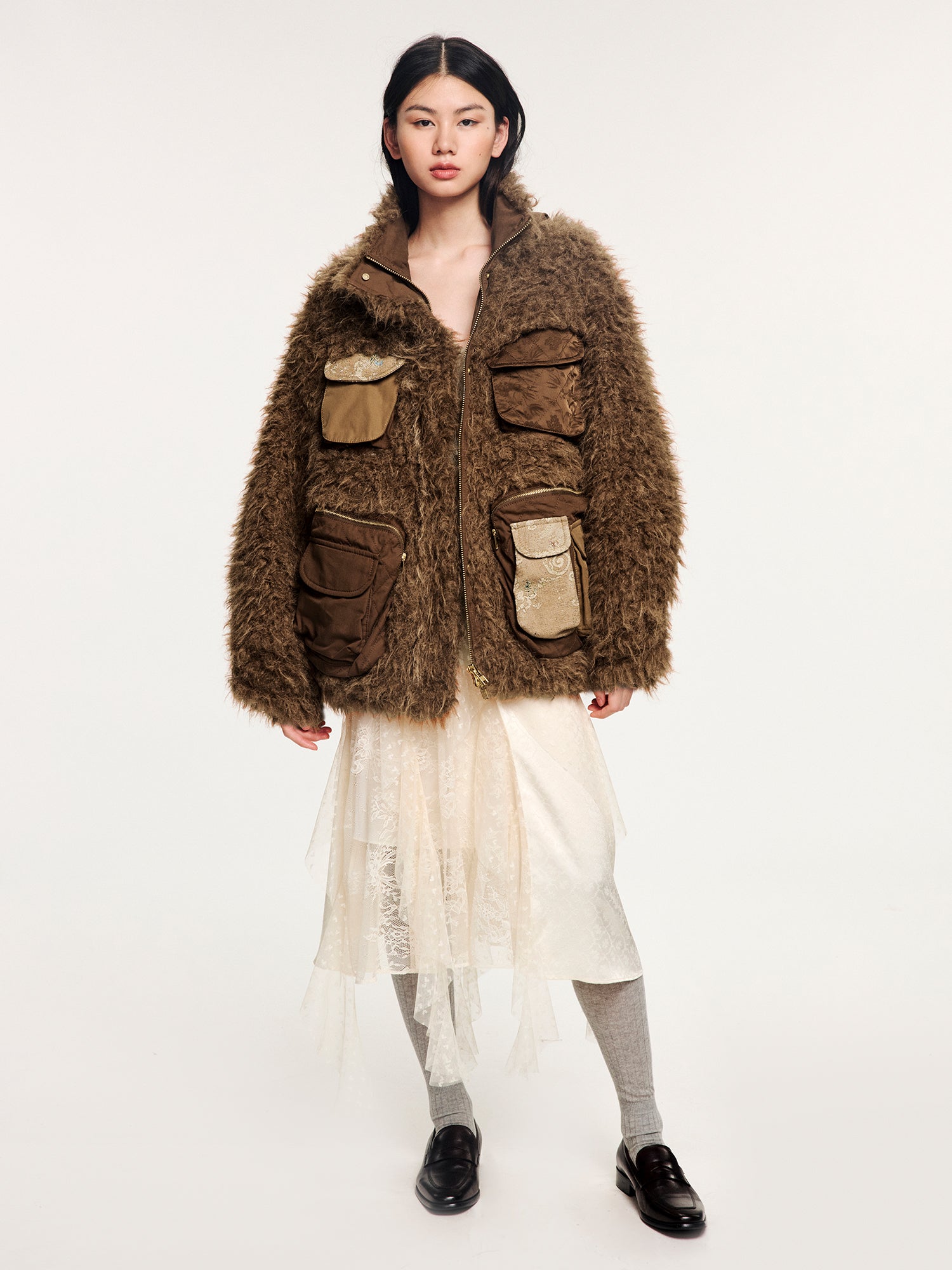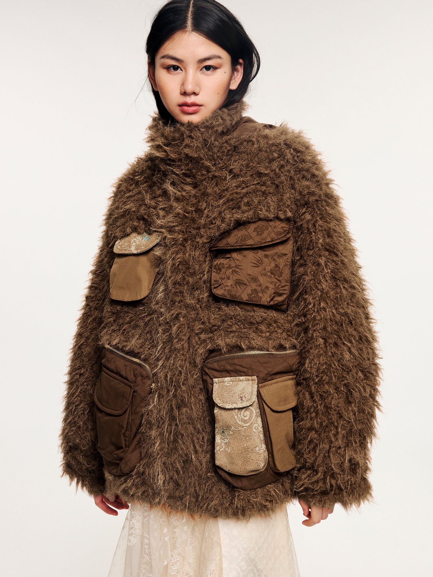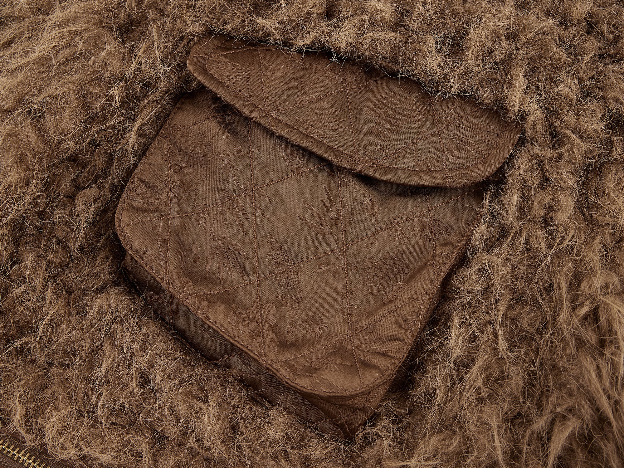 A plush take on the hunting jacket with eight pockets in assorted sizes and fabrics softening the rugged aesthetic with retro warmth and comfort.