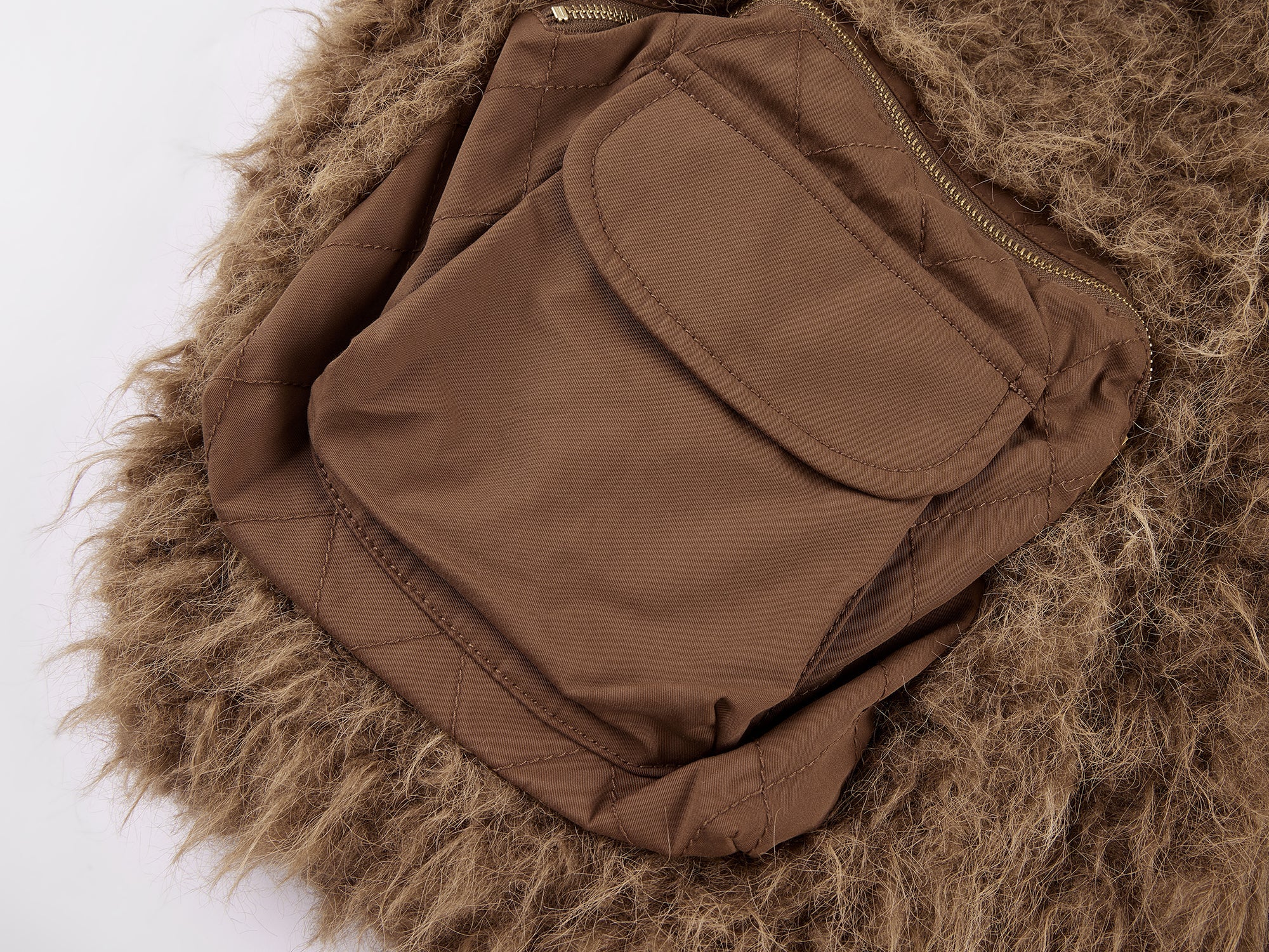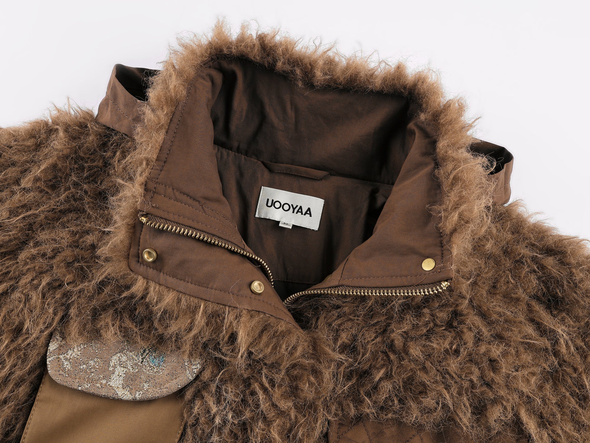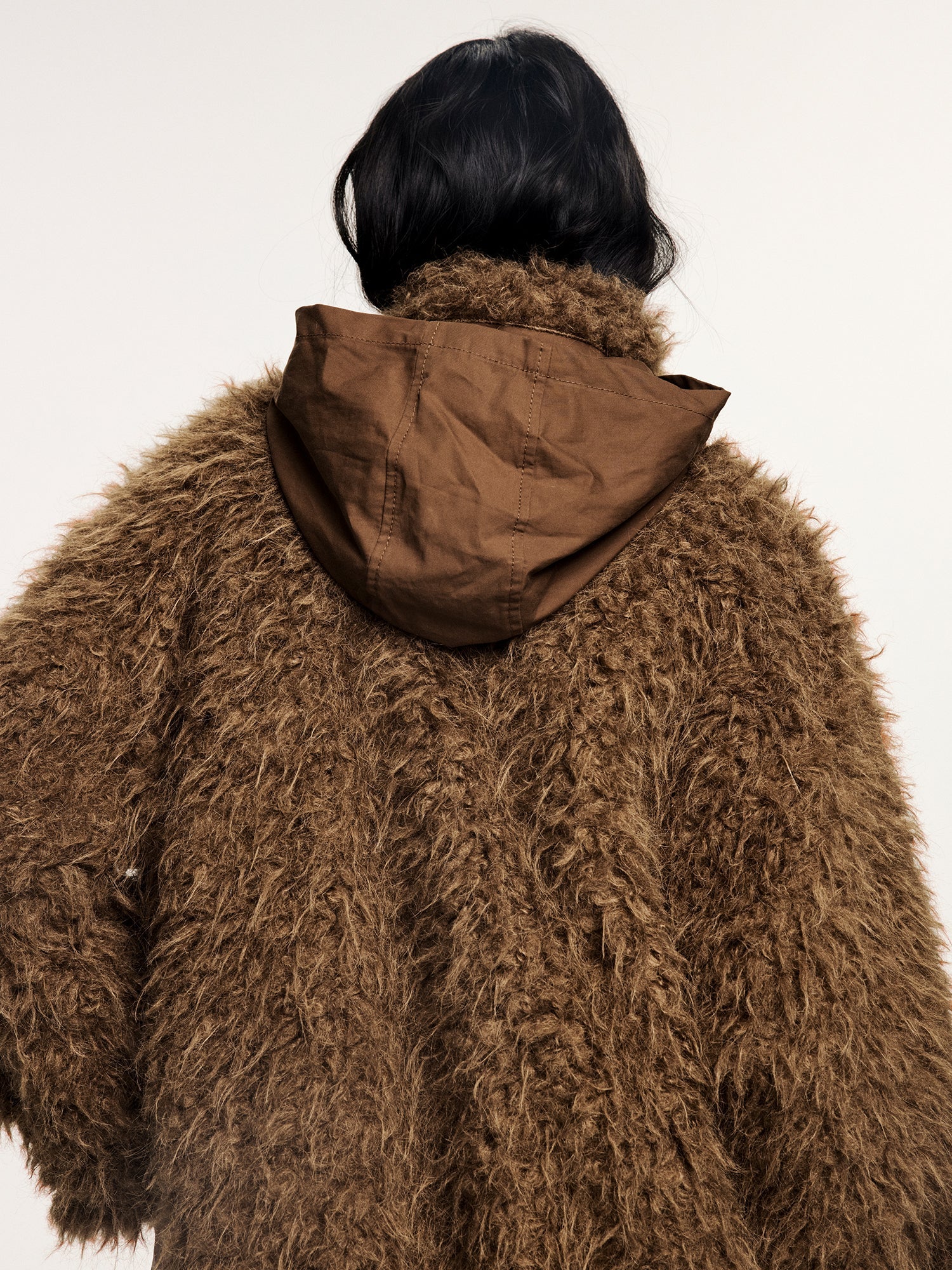 A plush take on the hunting jacket with eight pockets in assorted sizes and fabrics softening the rugged aesthetic with retro warmth and comfort.