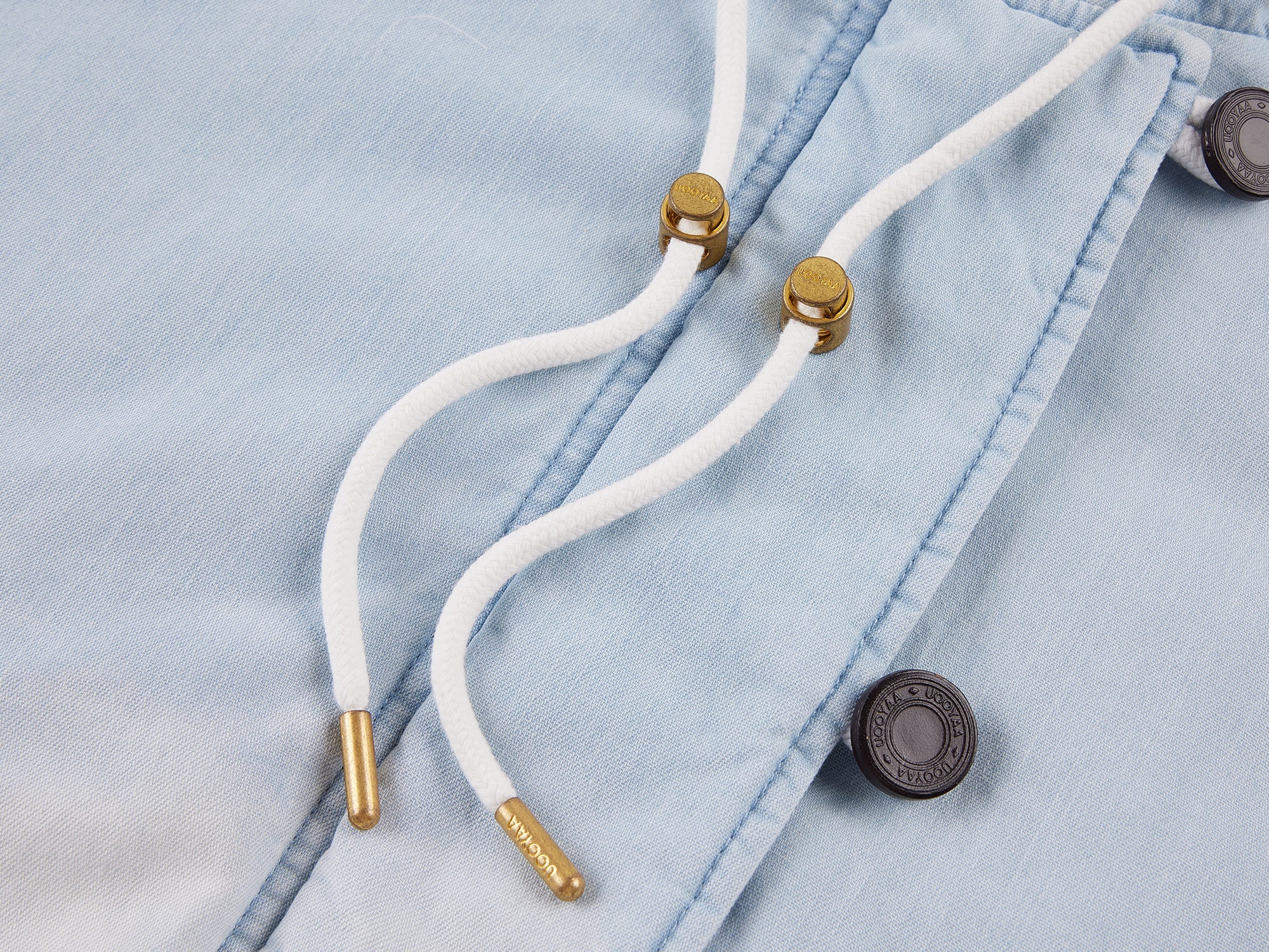Hat features a zip-through center that opens into a shawl, combining warmth and convertible styling. Real leather-cast buttons add a touch of luxury to the down jacket.