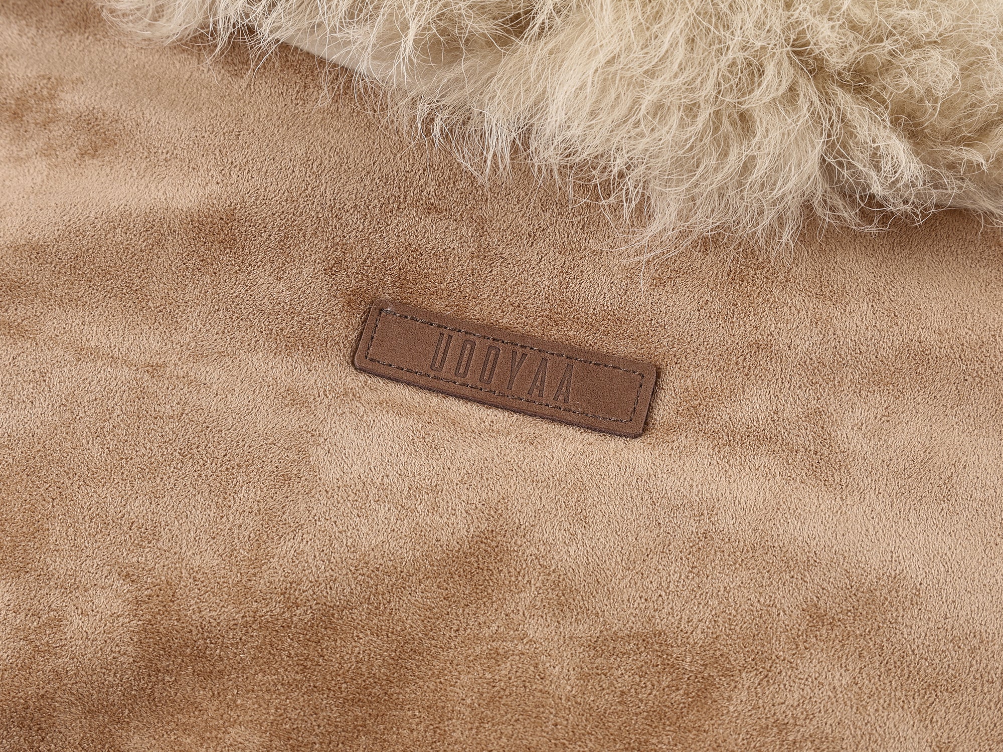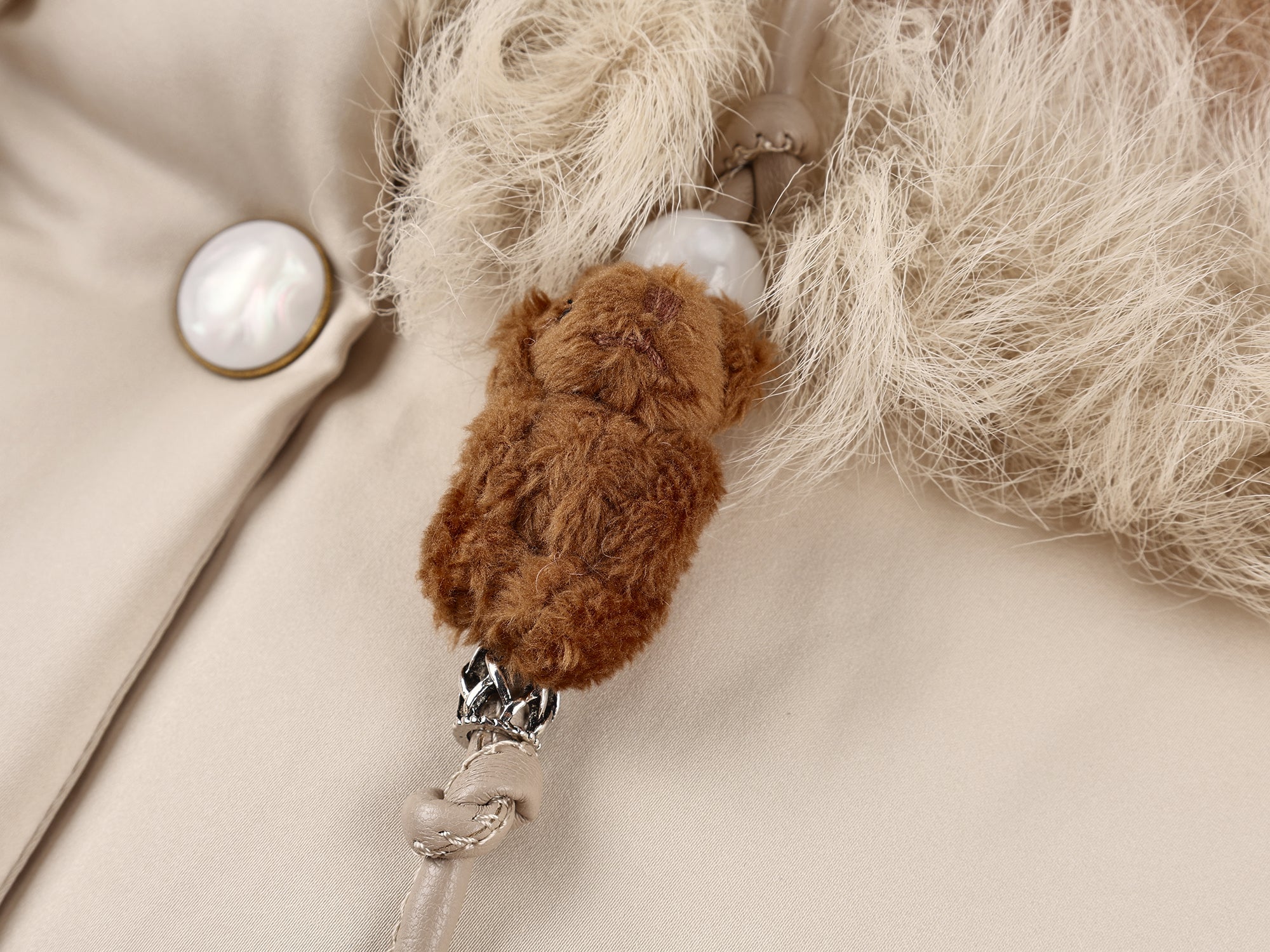 This cropped puffer jacket features a teddy bear charm for a playful, cozy vibe, with Toscana leather accents that add a refined finish.