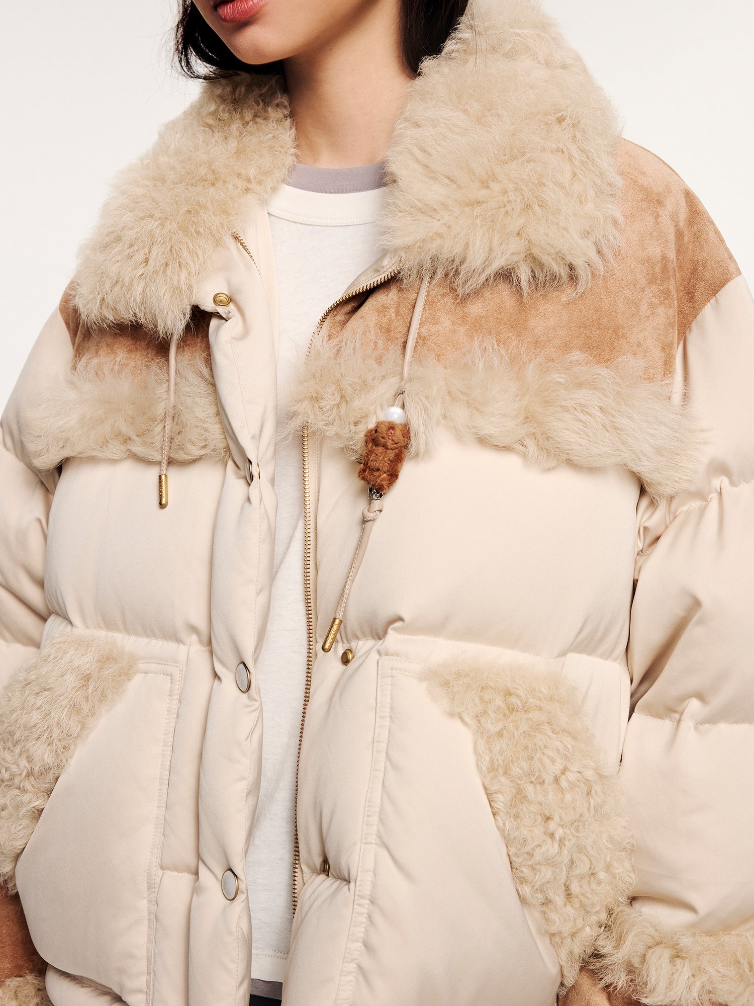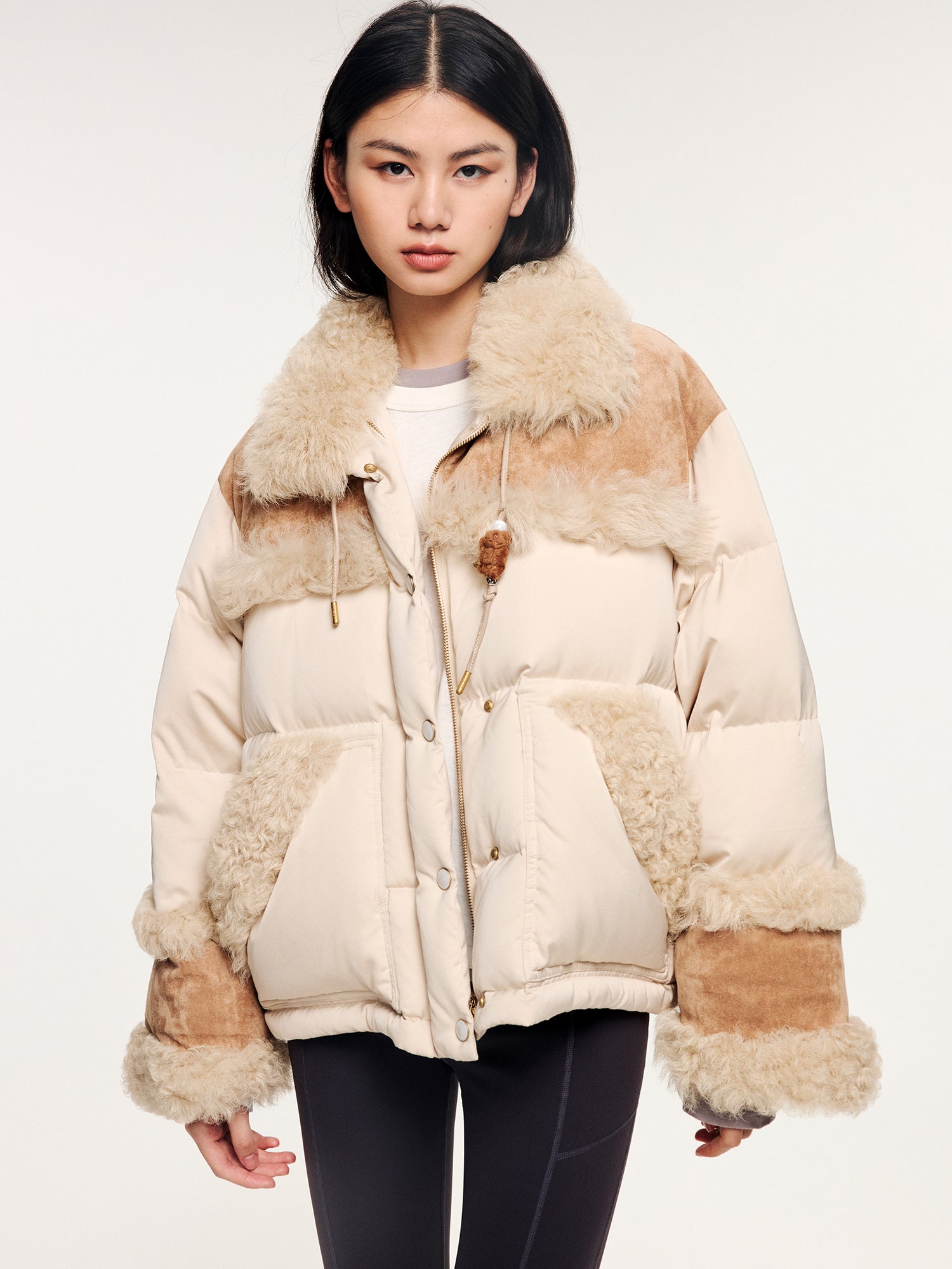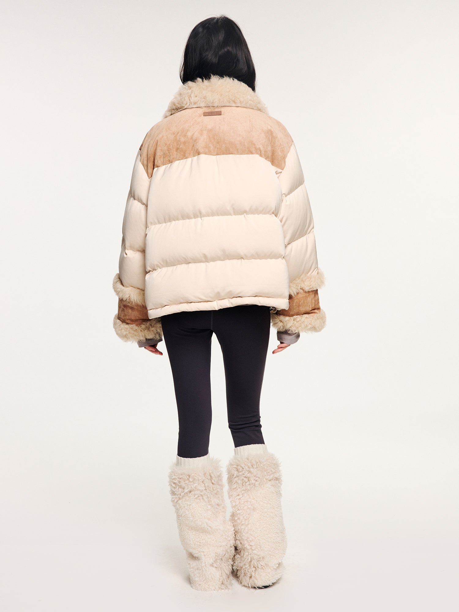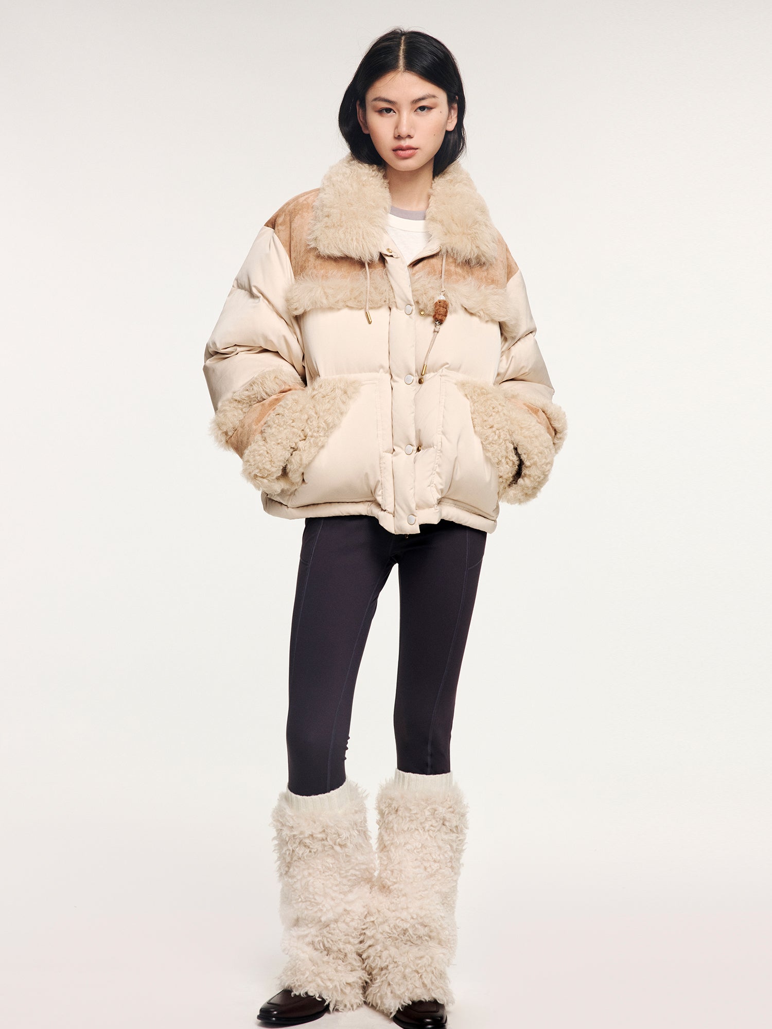 Fabric and Lining 1: 95.3% Polyester, 4.7% Mulberry SilkTrim 1: ShearlingTrim 2: 95% Polyester, 5% SpandexLining 2: 100% PolyesterFilling: White duck down, down content 85%Filling weight: S 179g / M 188g / L 197g