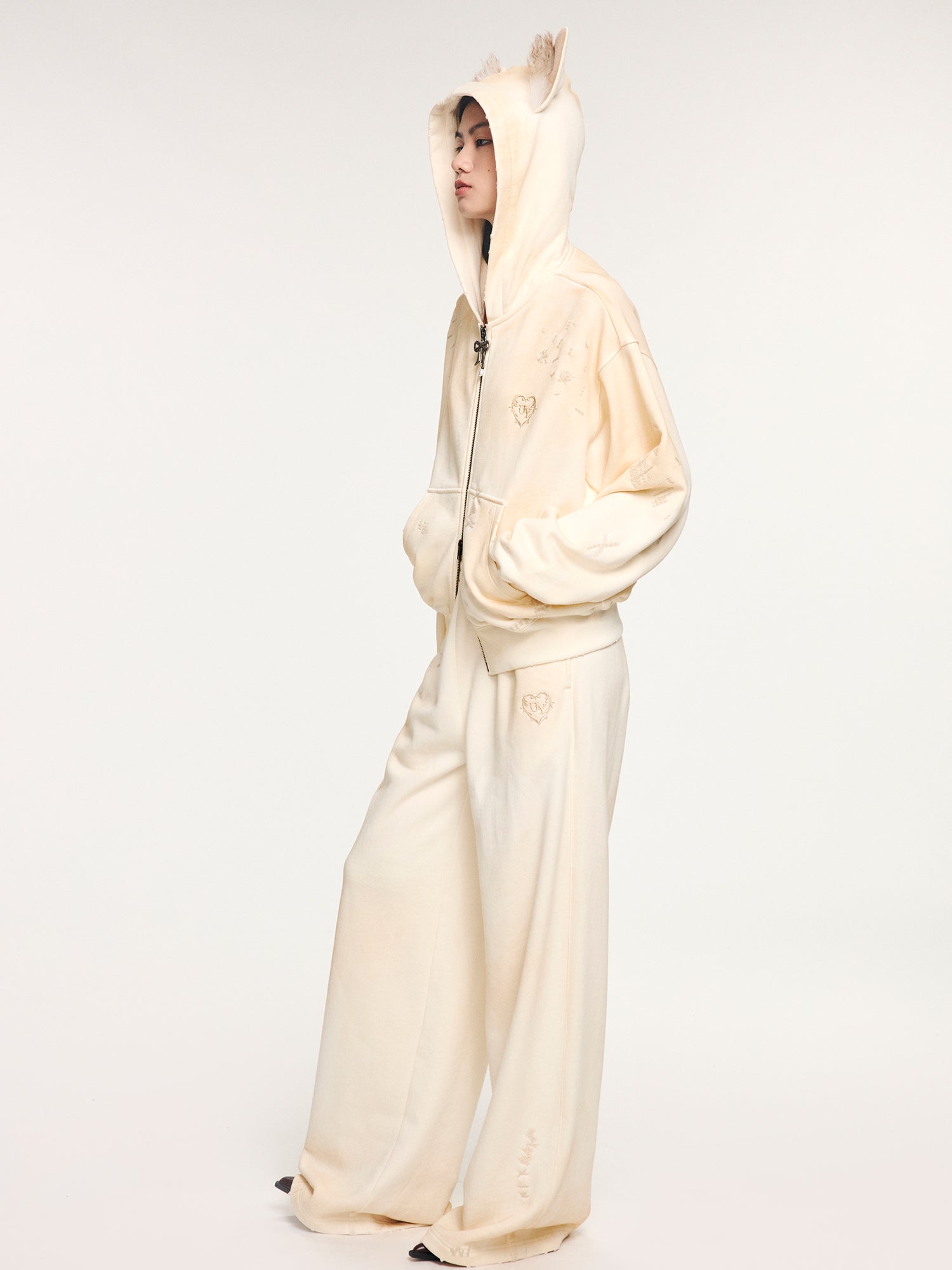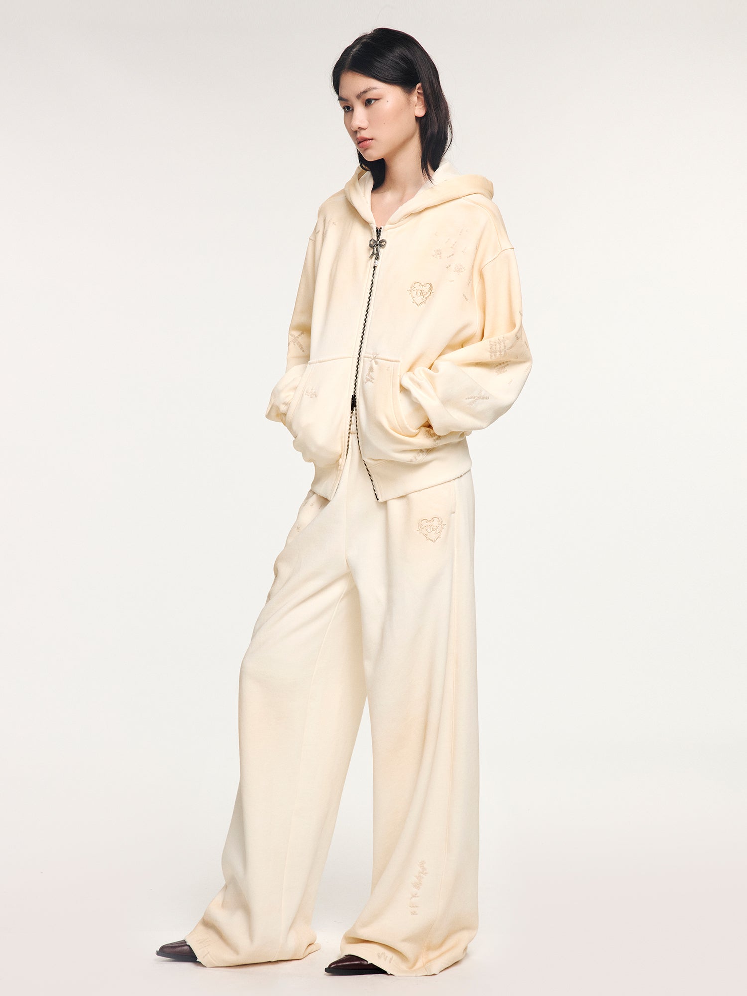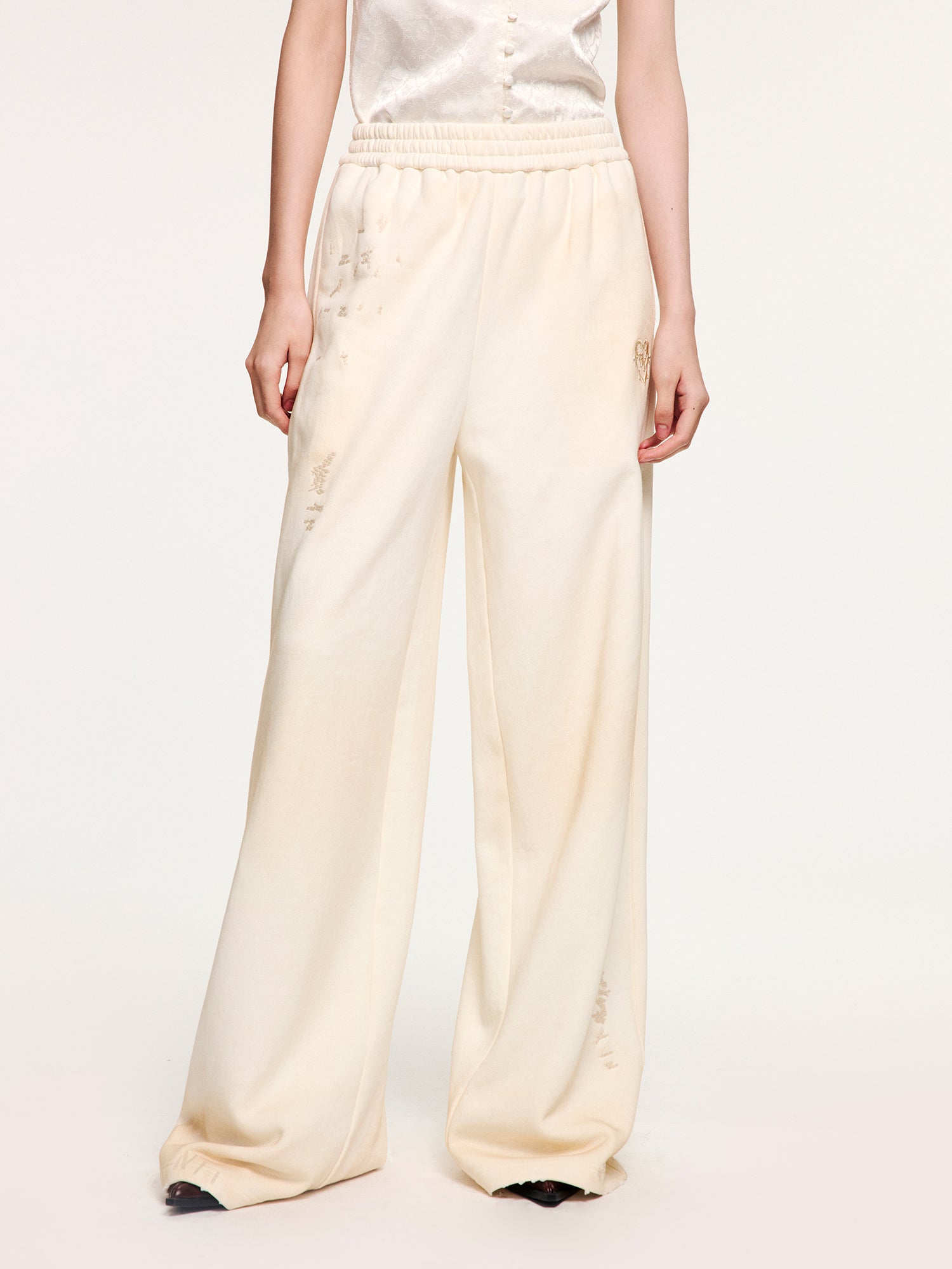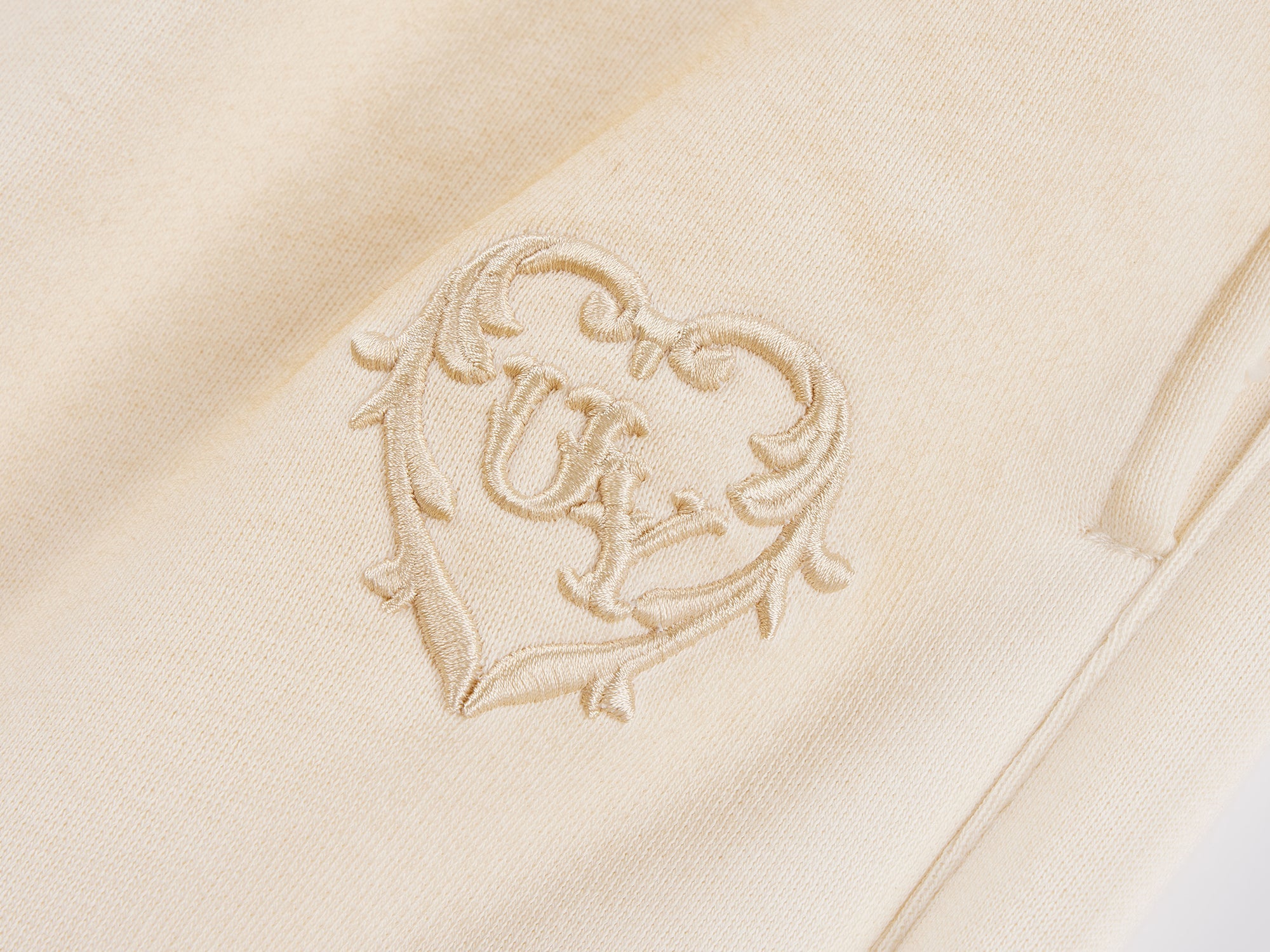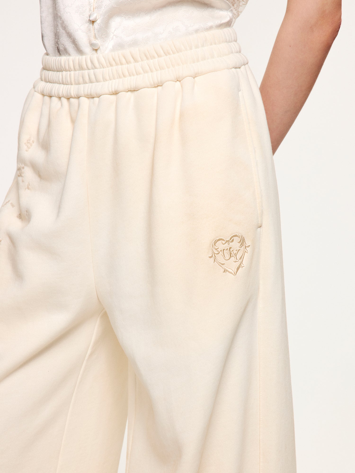 Relaxed fit ensures easy wear; elastic waistband offers a flexible fit for different body types. Finished with a 3D embroidered heart logo for added playfulness.