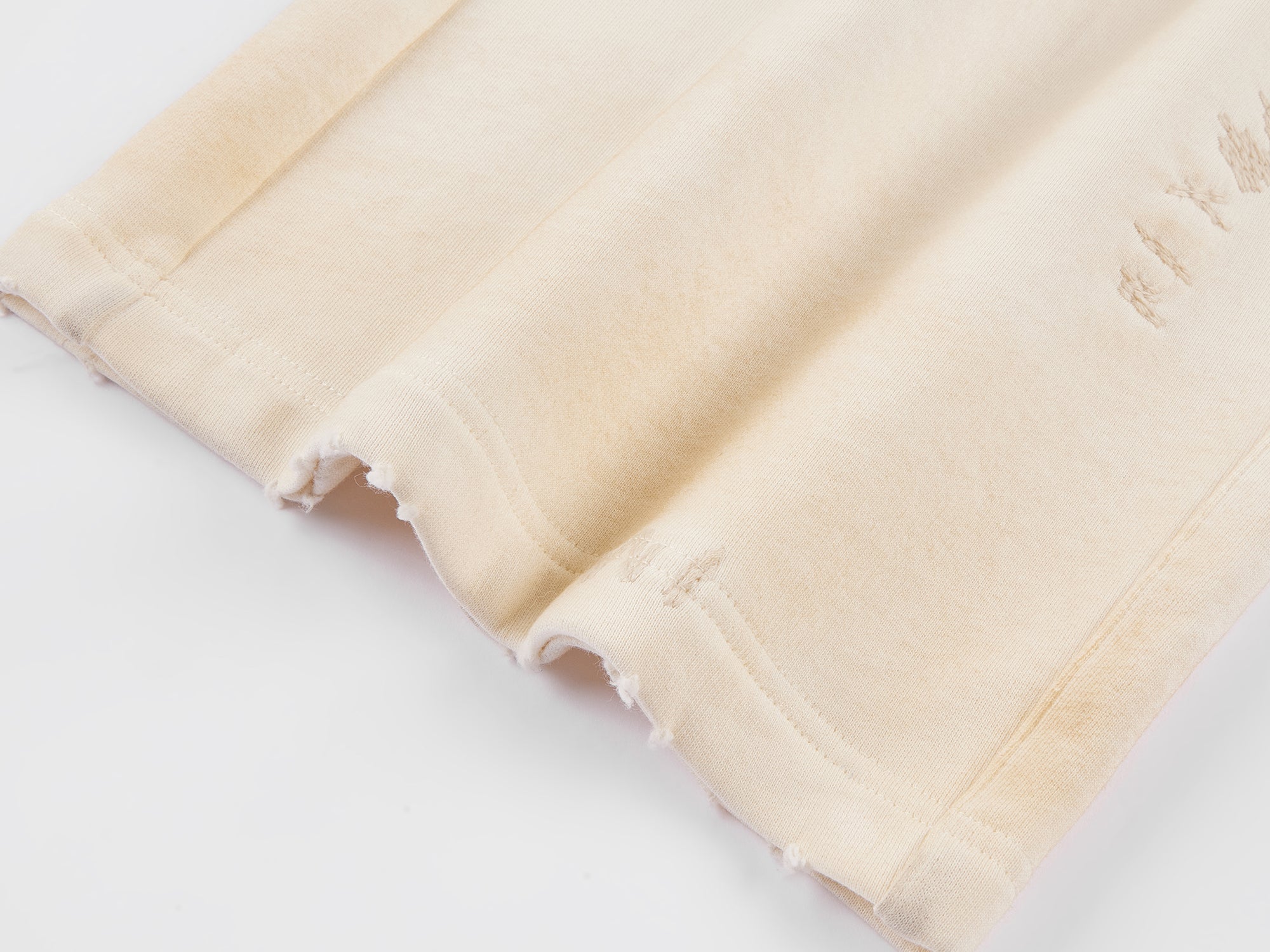 Crafted with a distressed spray-dye effect and raw edge details. Irregular hand-stitched seams add character for a laid-back, whimsical look.