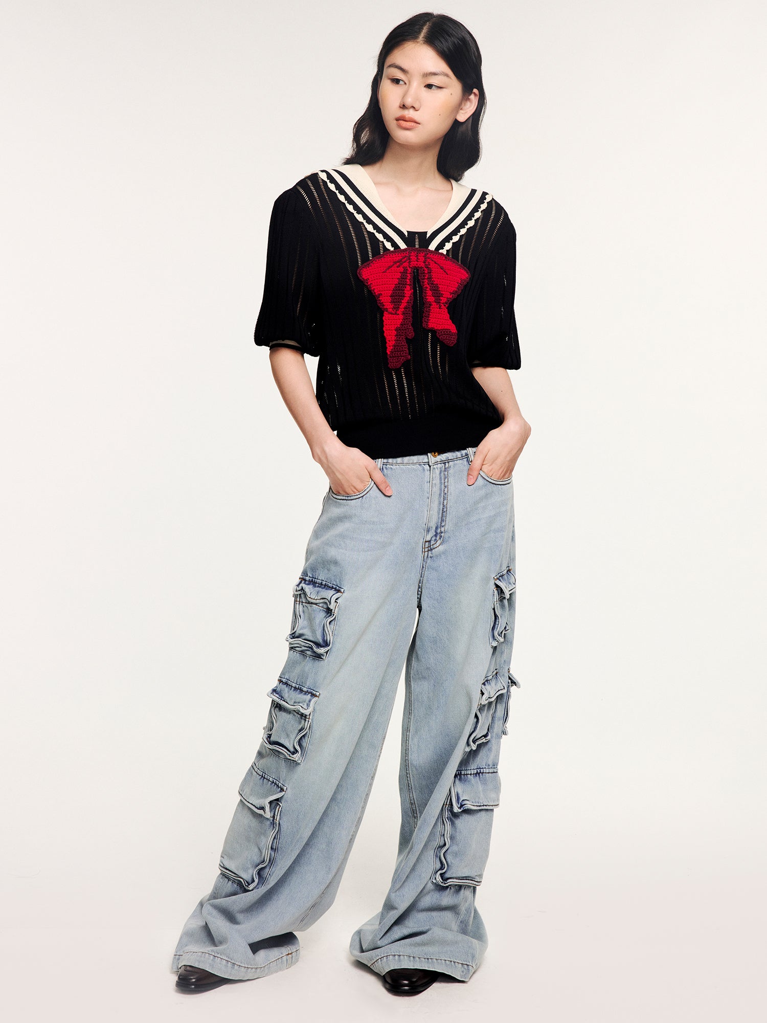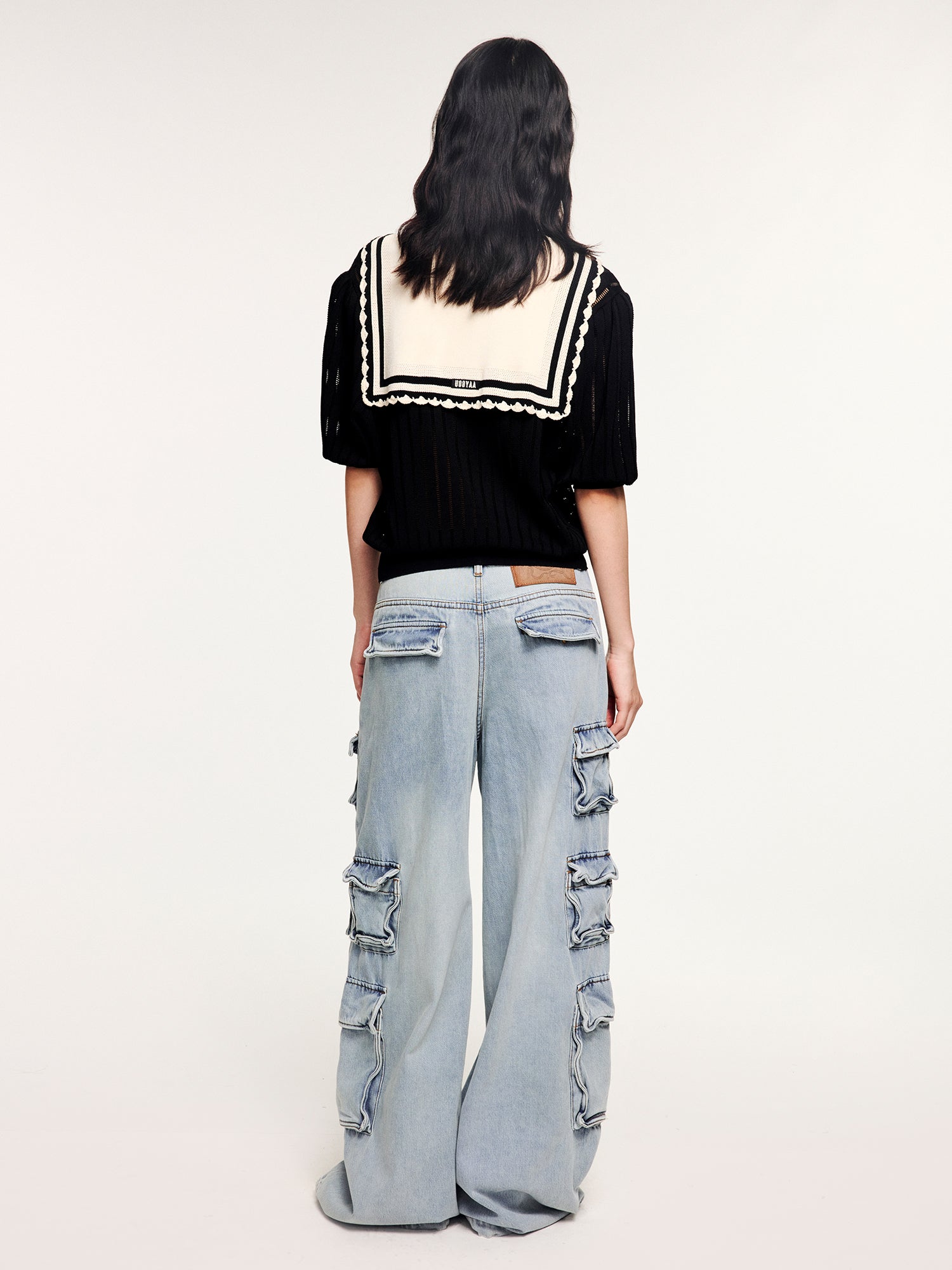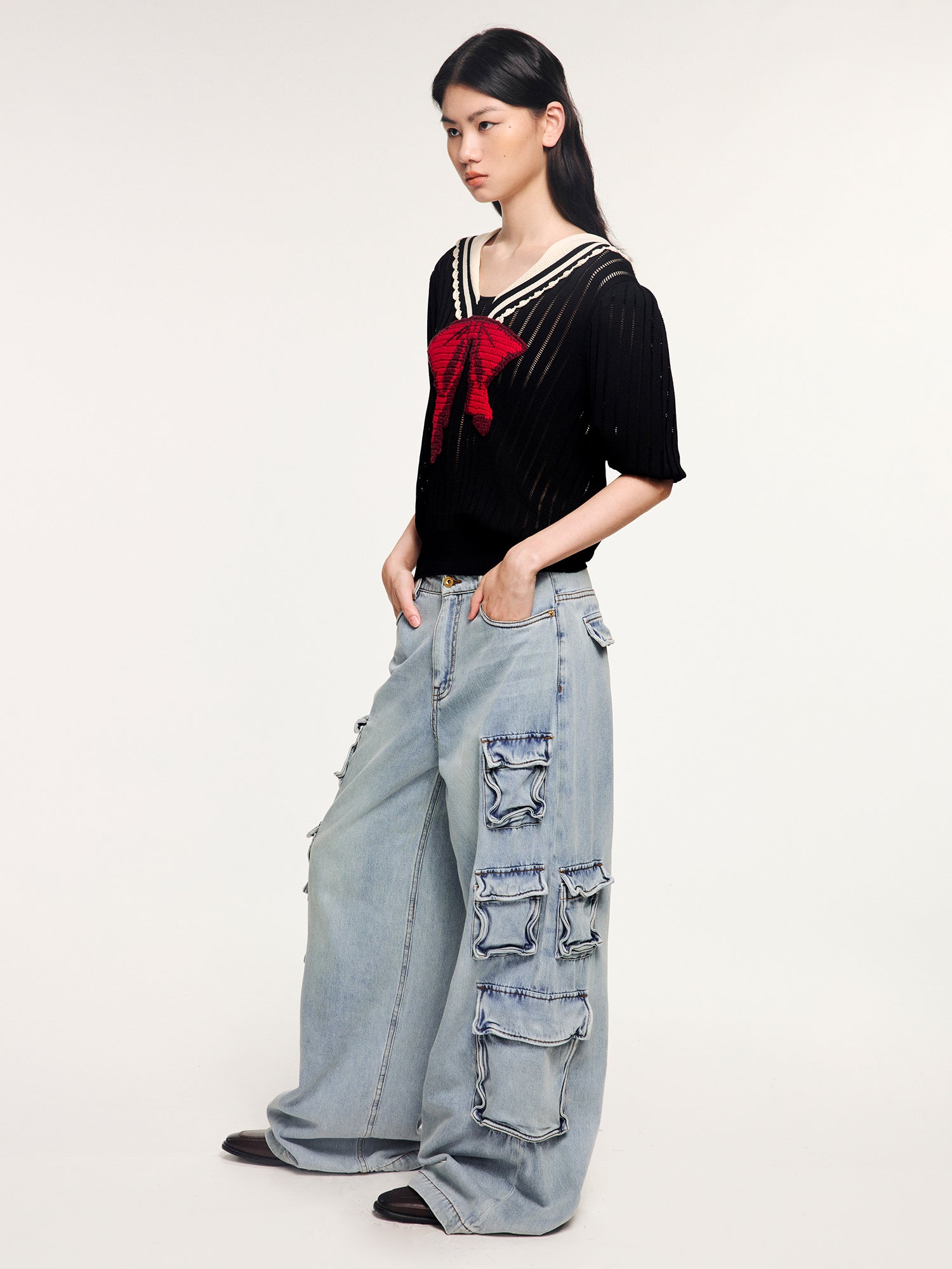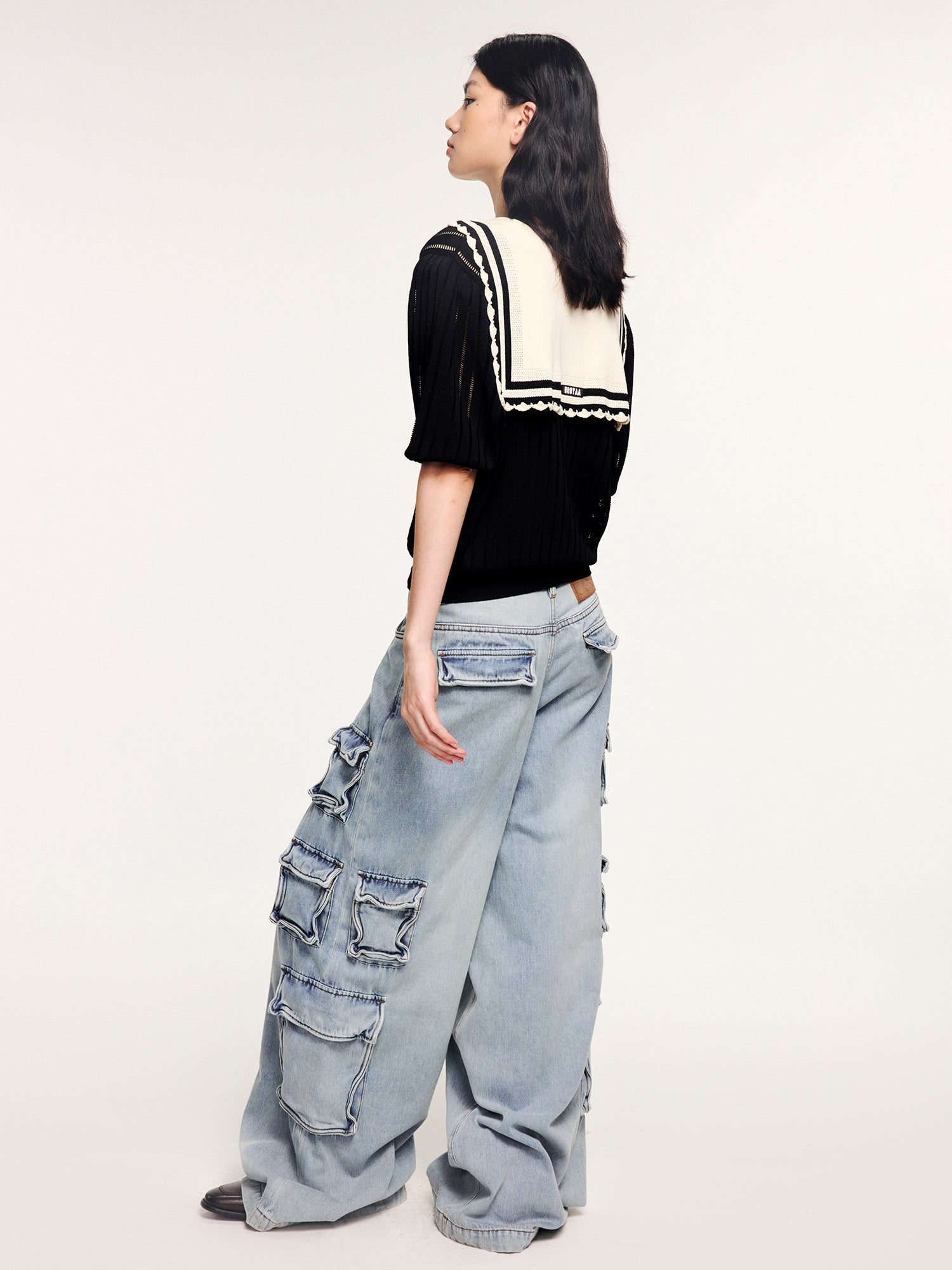 Multi-pocket jeans with aluminum wire embedded in pockets, allowing for surreal, moldable pocket shapes--whimsical and fun.