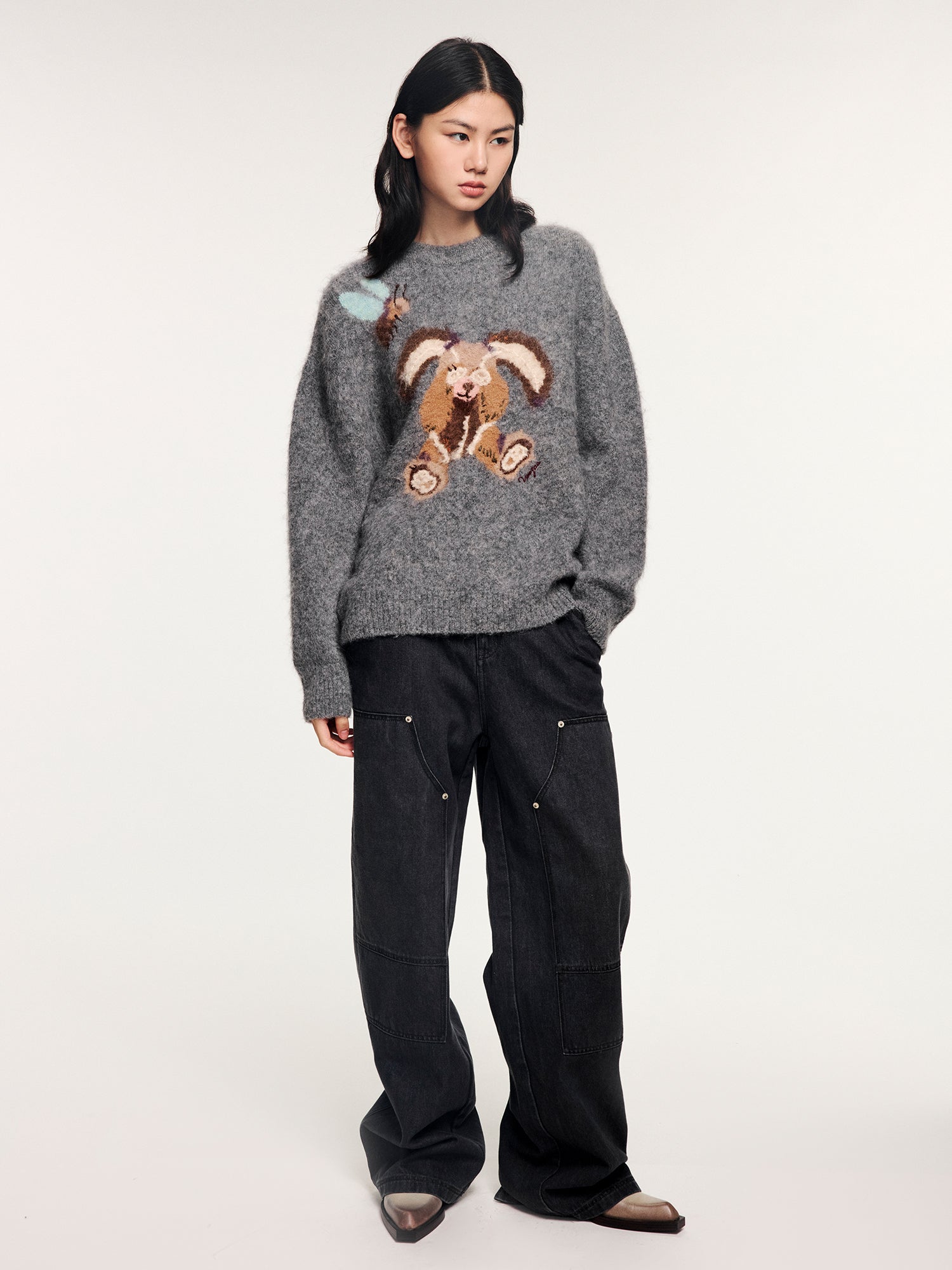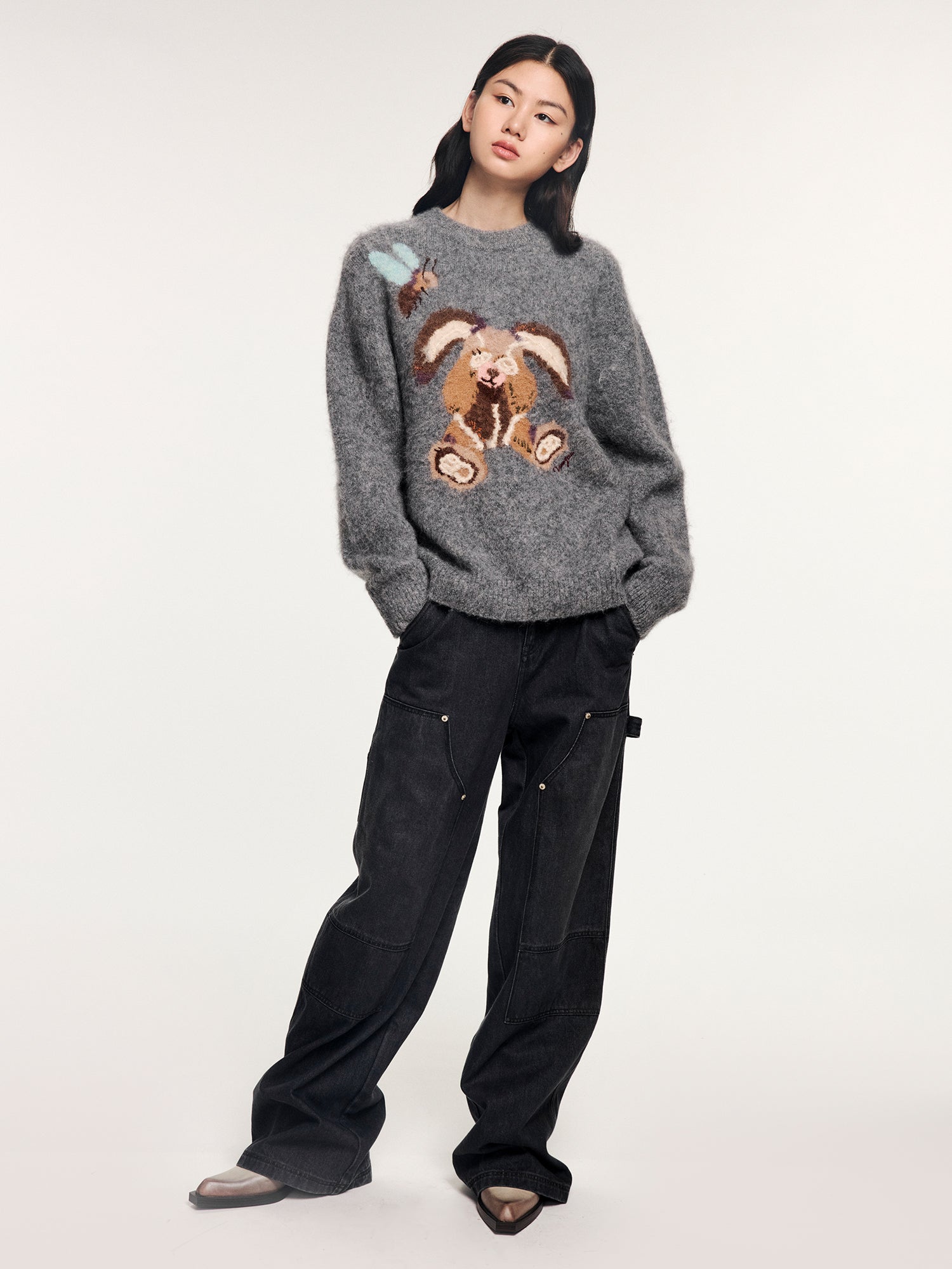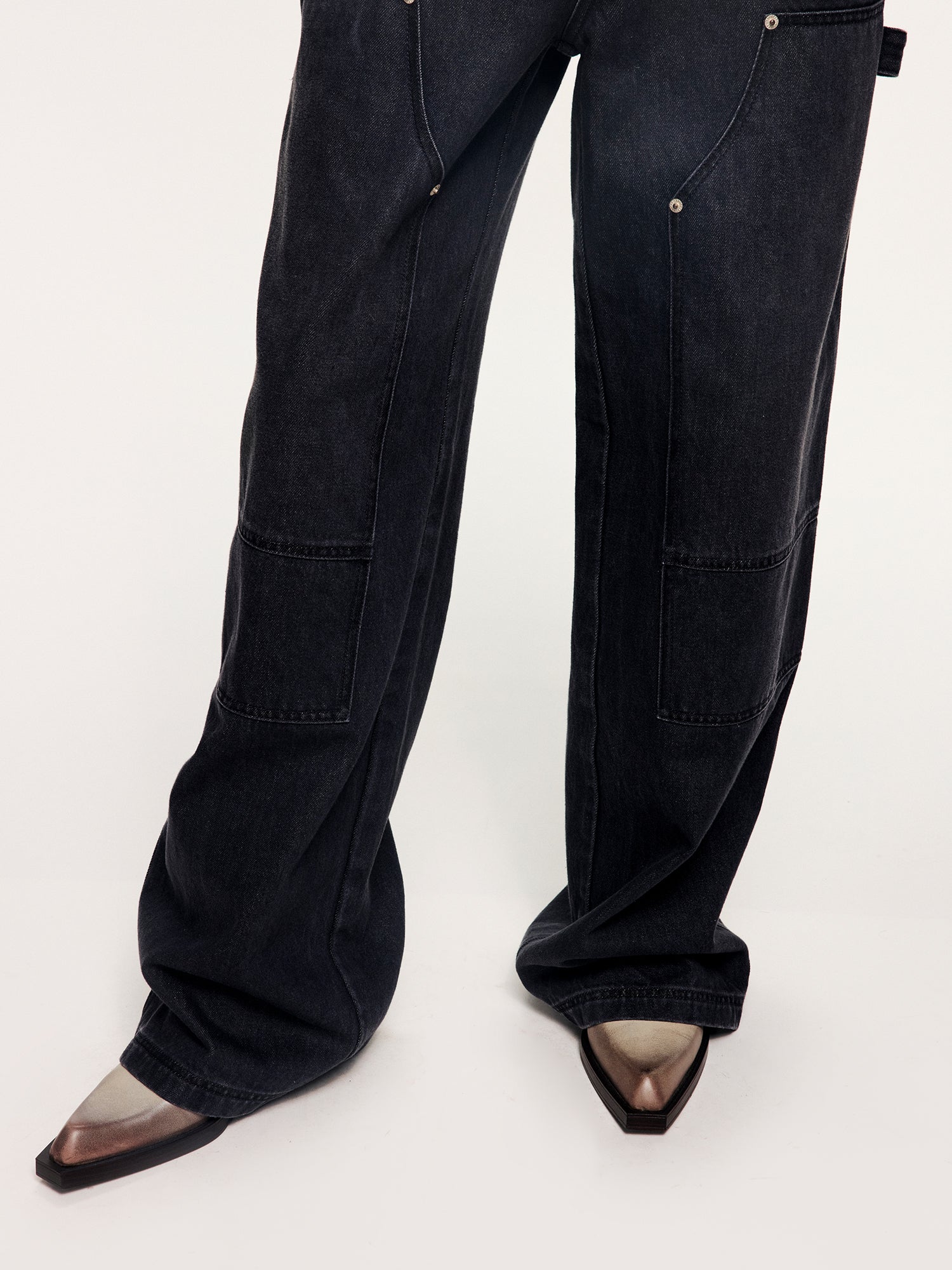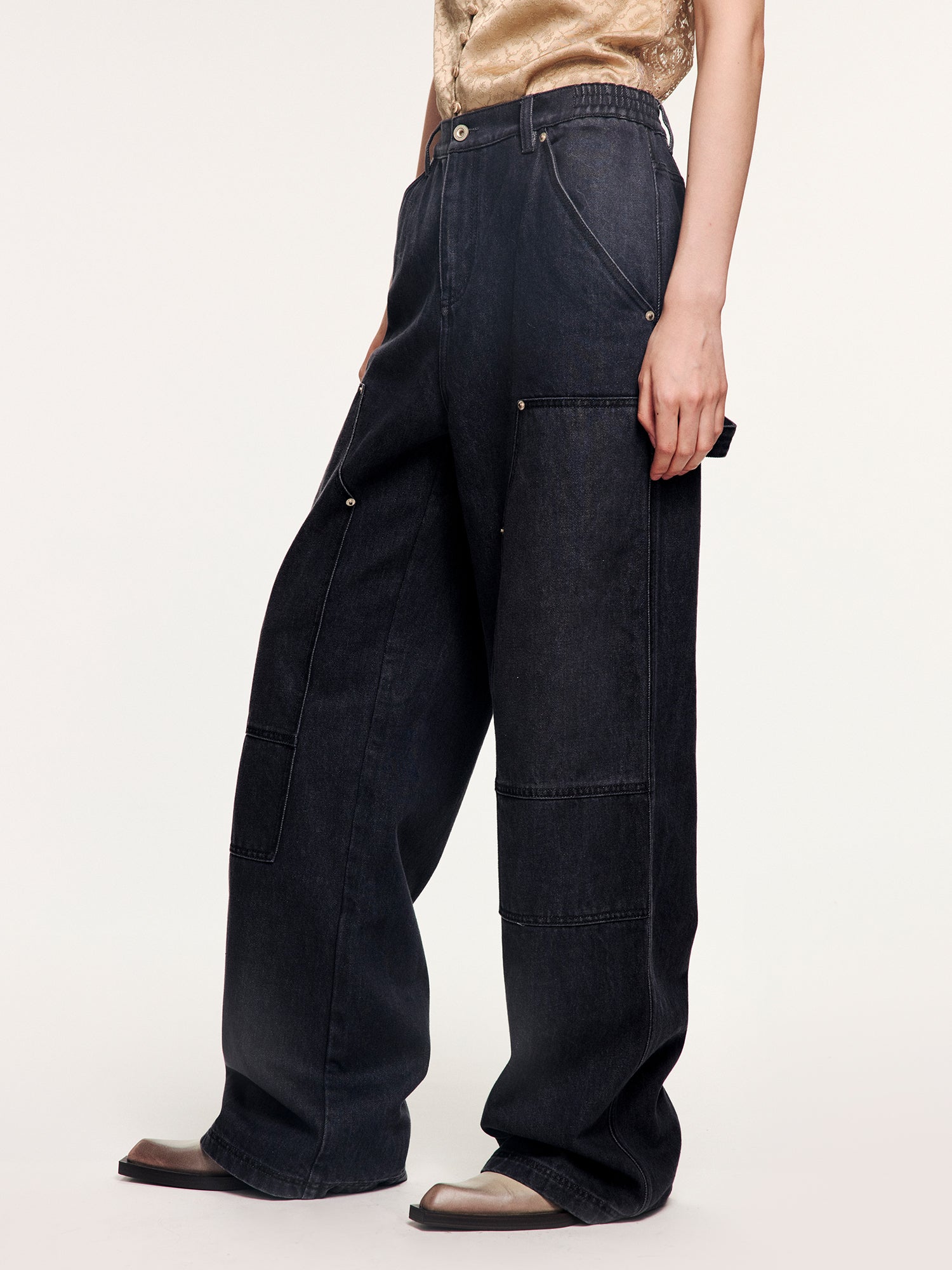 Washed denim utility pants