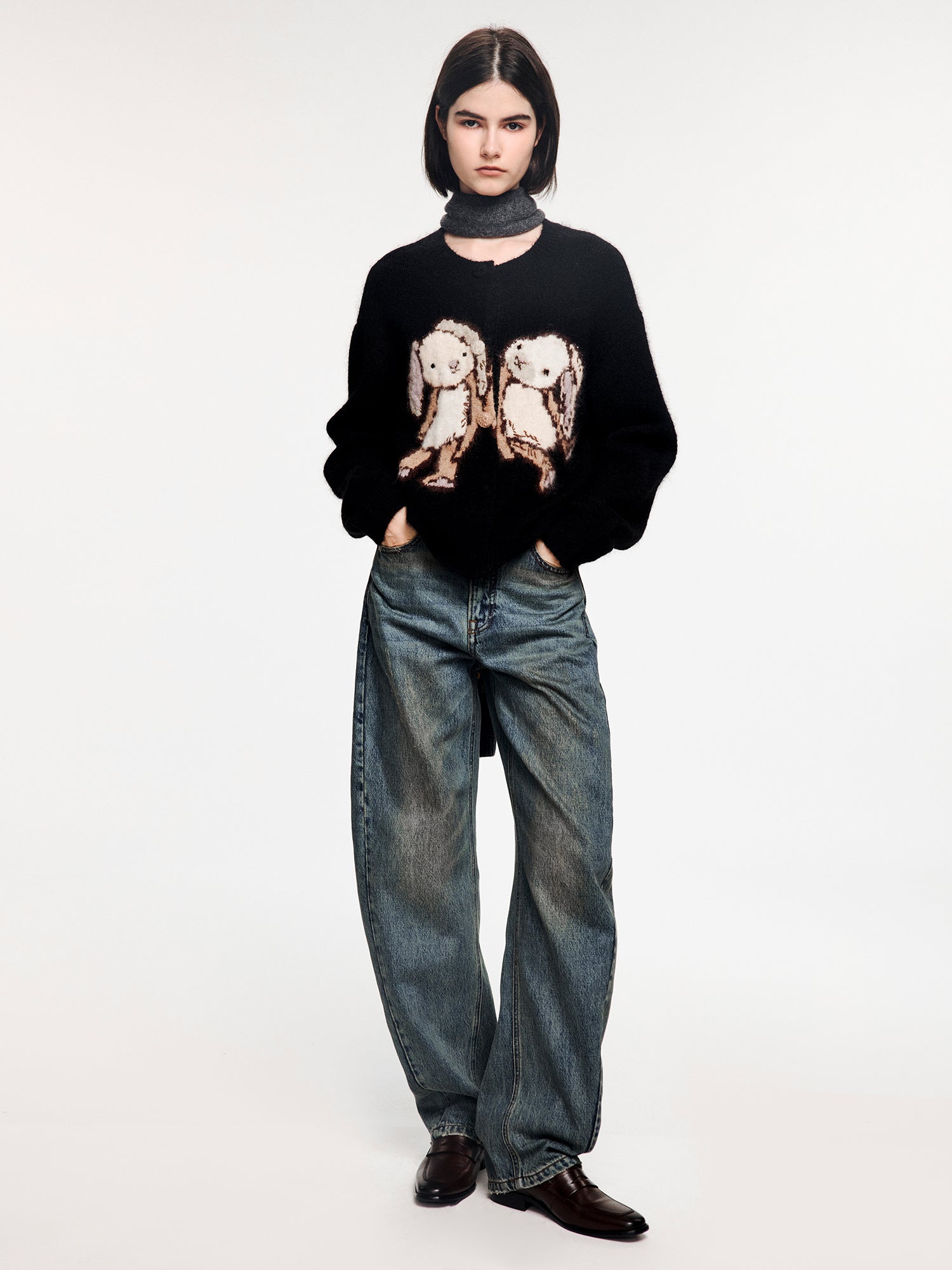Washed and aged finish sets a vintage tone. Irregular whiskering adds texture, while distressed details enhance the laid-back, retro feel.