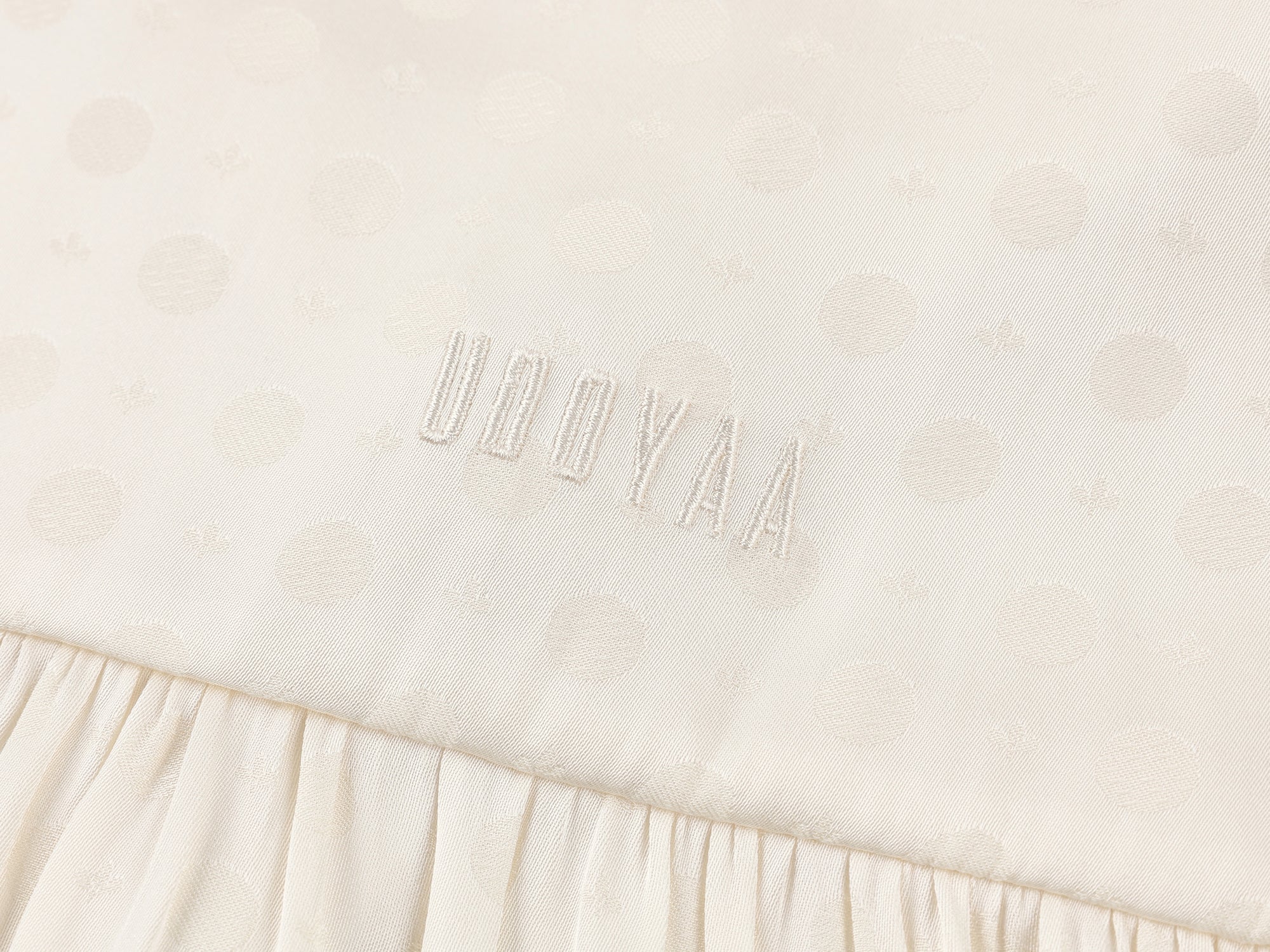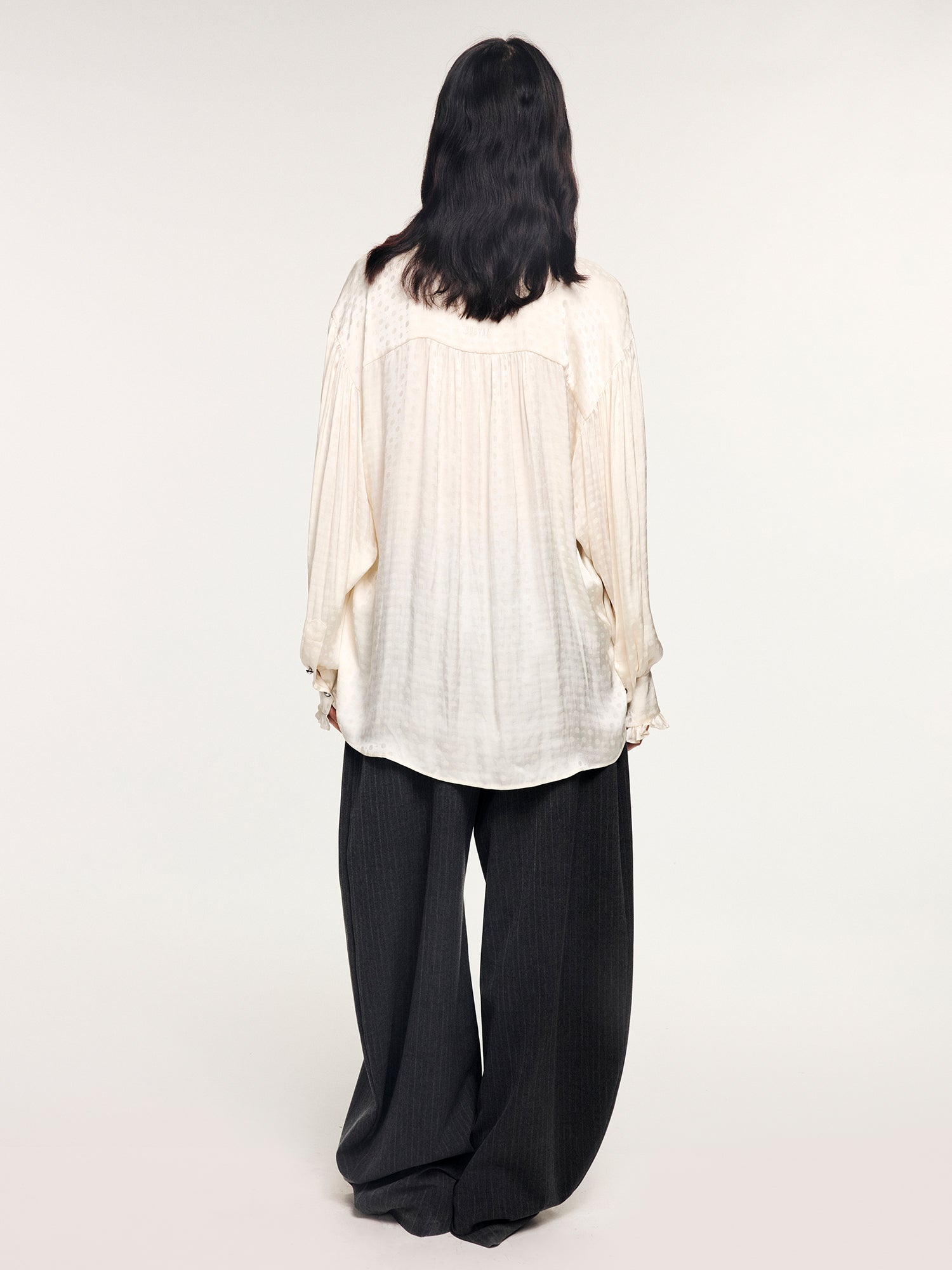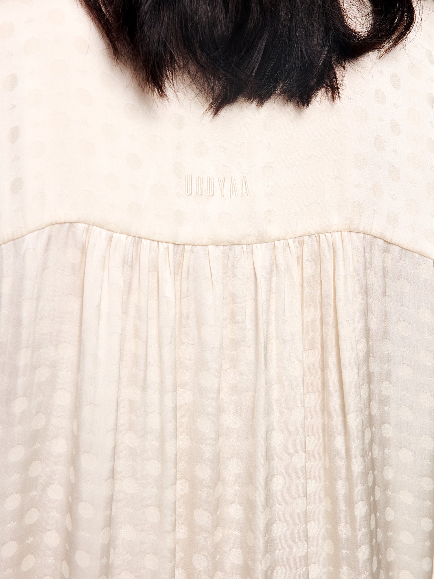 Made from polka-dot jacquard, this ruffle-collar blouse adds a whimsical tone to a classically ornate design.