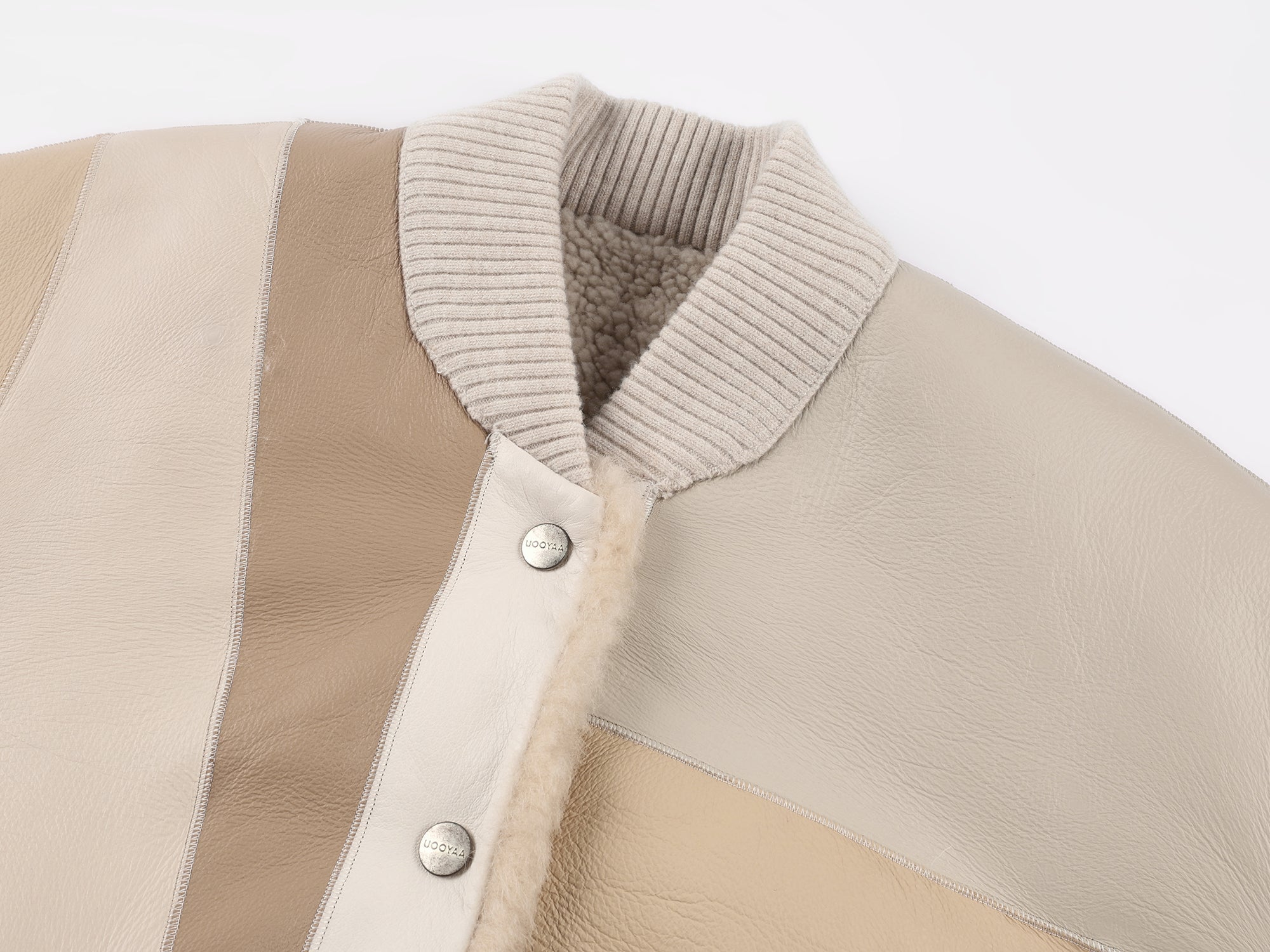 Reversible baseball jacket with shearling leather panels