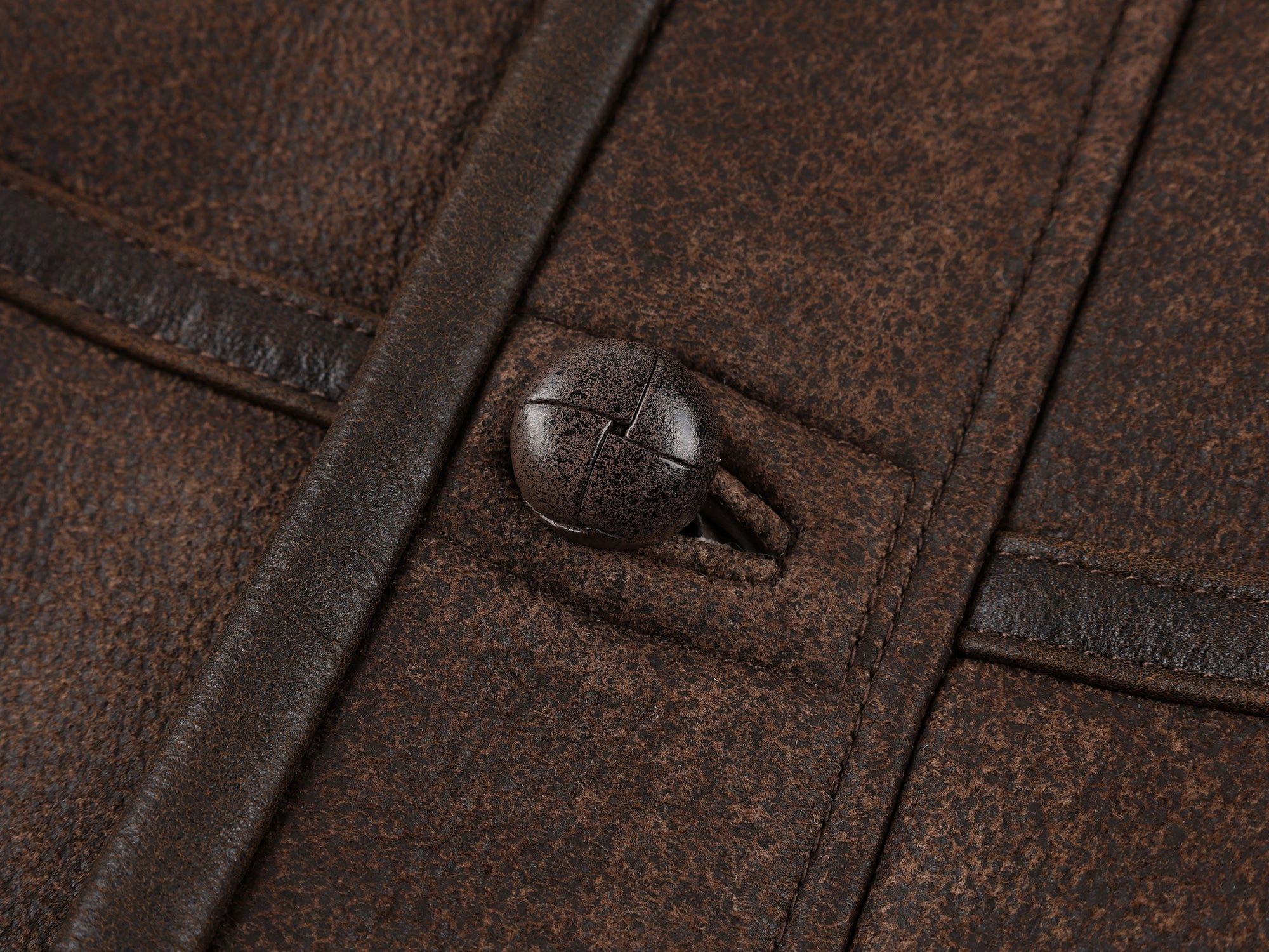 Crafted from Merino sheepskin shearling for substantial warmth and luxury. Accented with genuine leather braided buttons that elevate the garment's premium texture.Fabric: