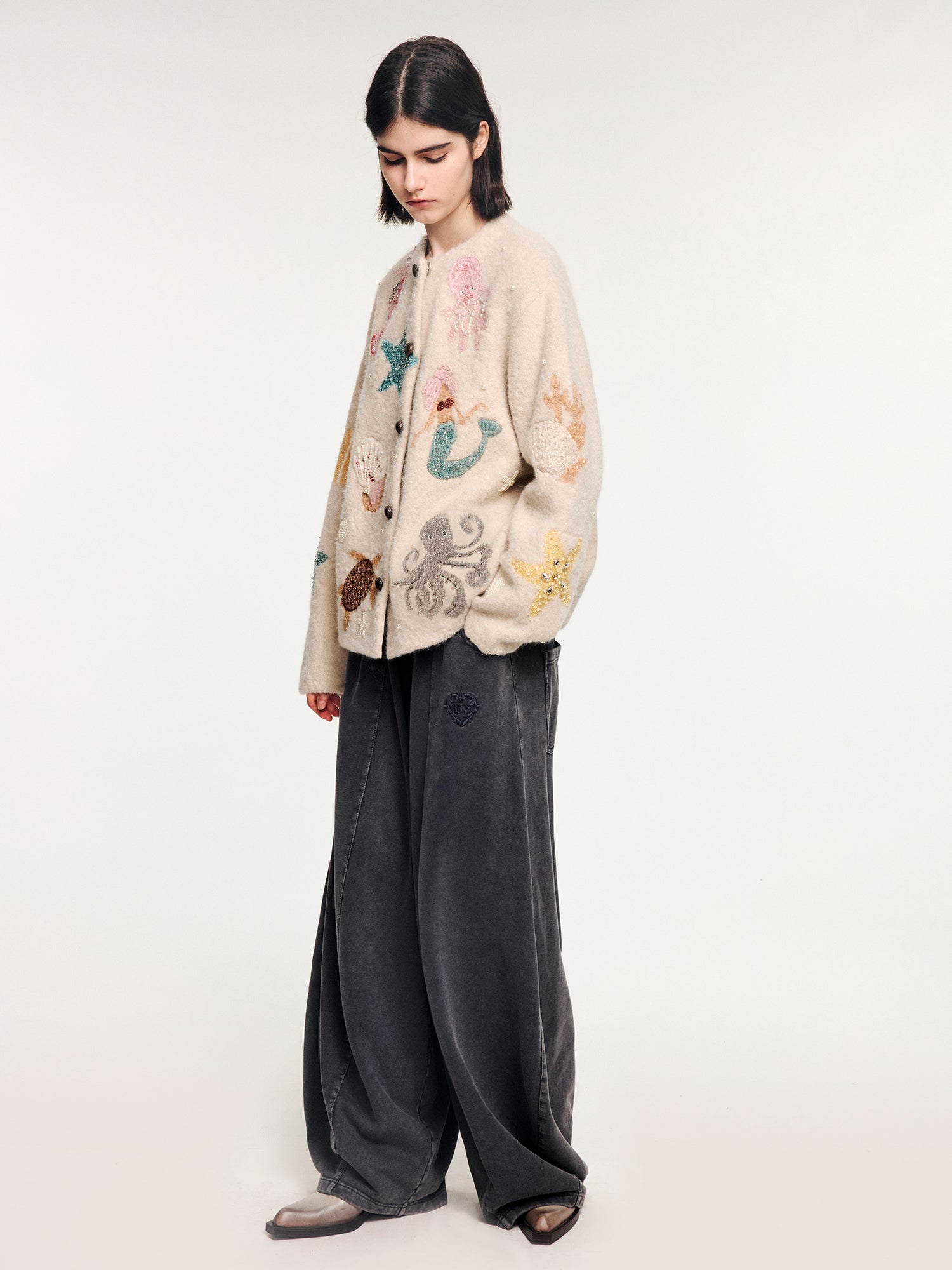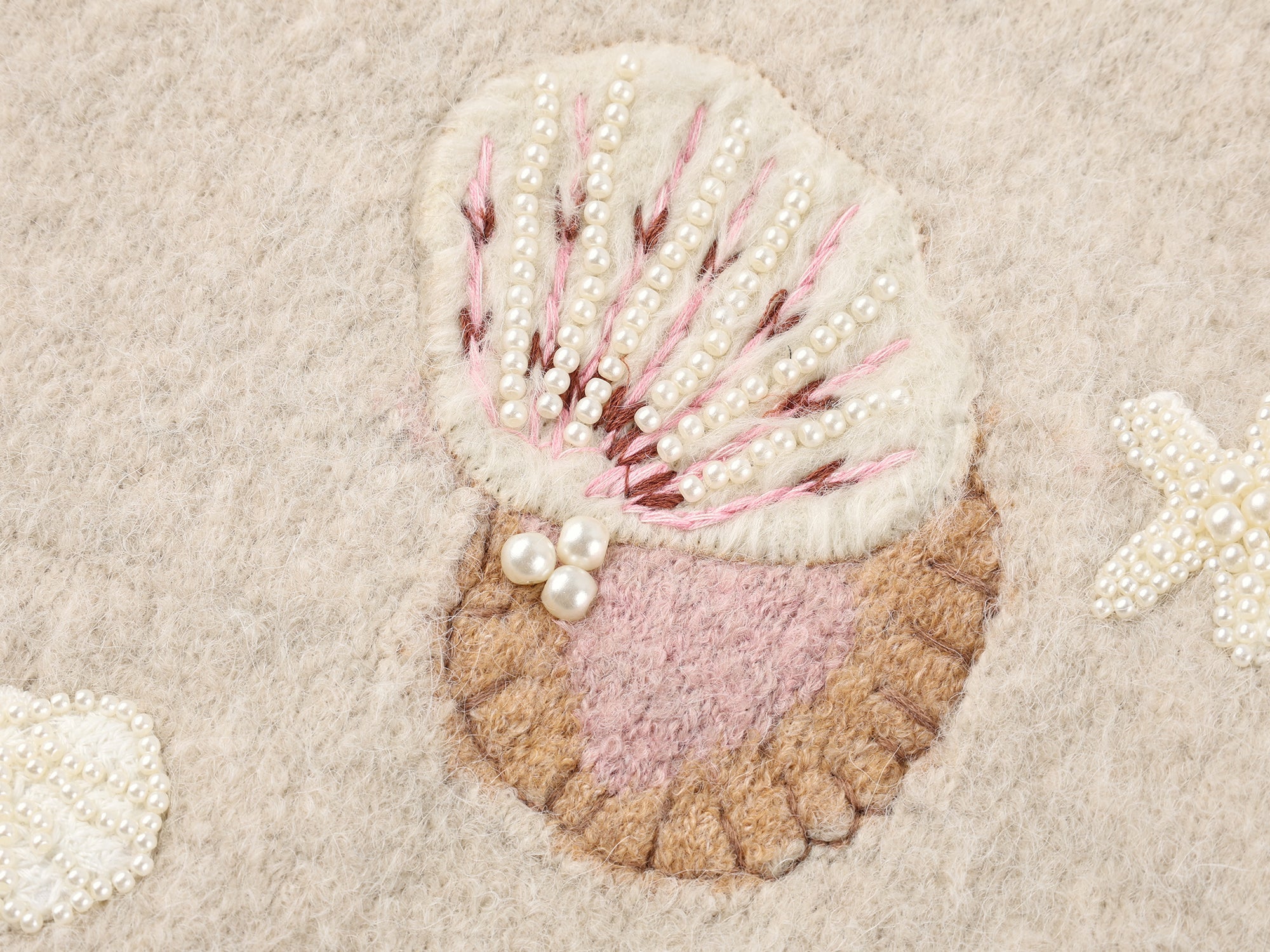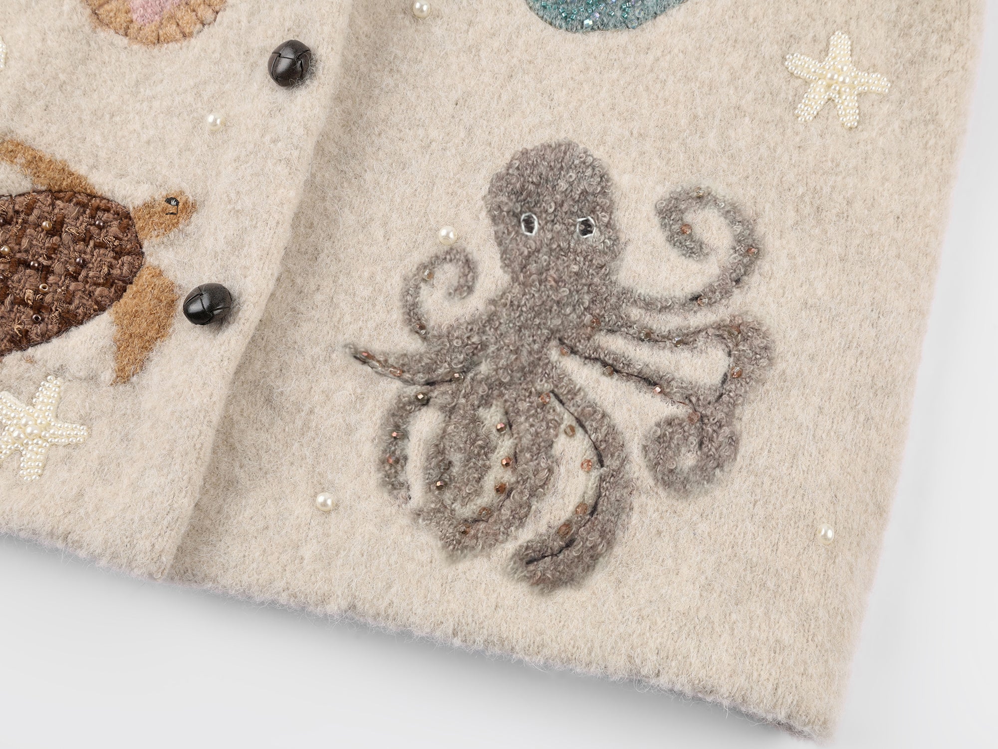 Centered on a fantasy undersea world, featuring jacquard craftsmanship, hand-crochet-style appliqué, beads, pearls, and hand-sewn rhinestones.