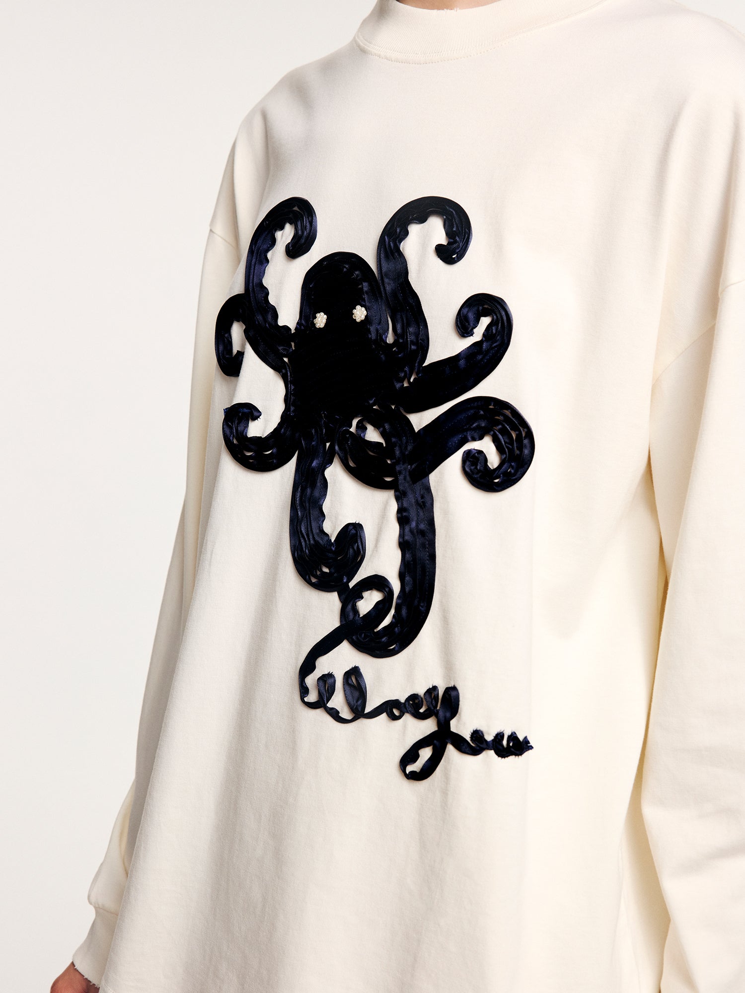 Features a cute undersea octopus and the Uooyaa logo in 3D tape embroidery, accented with bead-embroidered eyes for a whimsical touch.