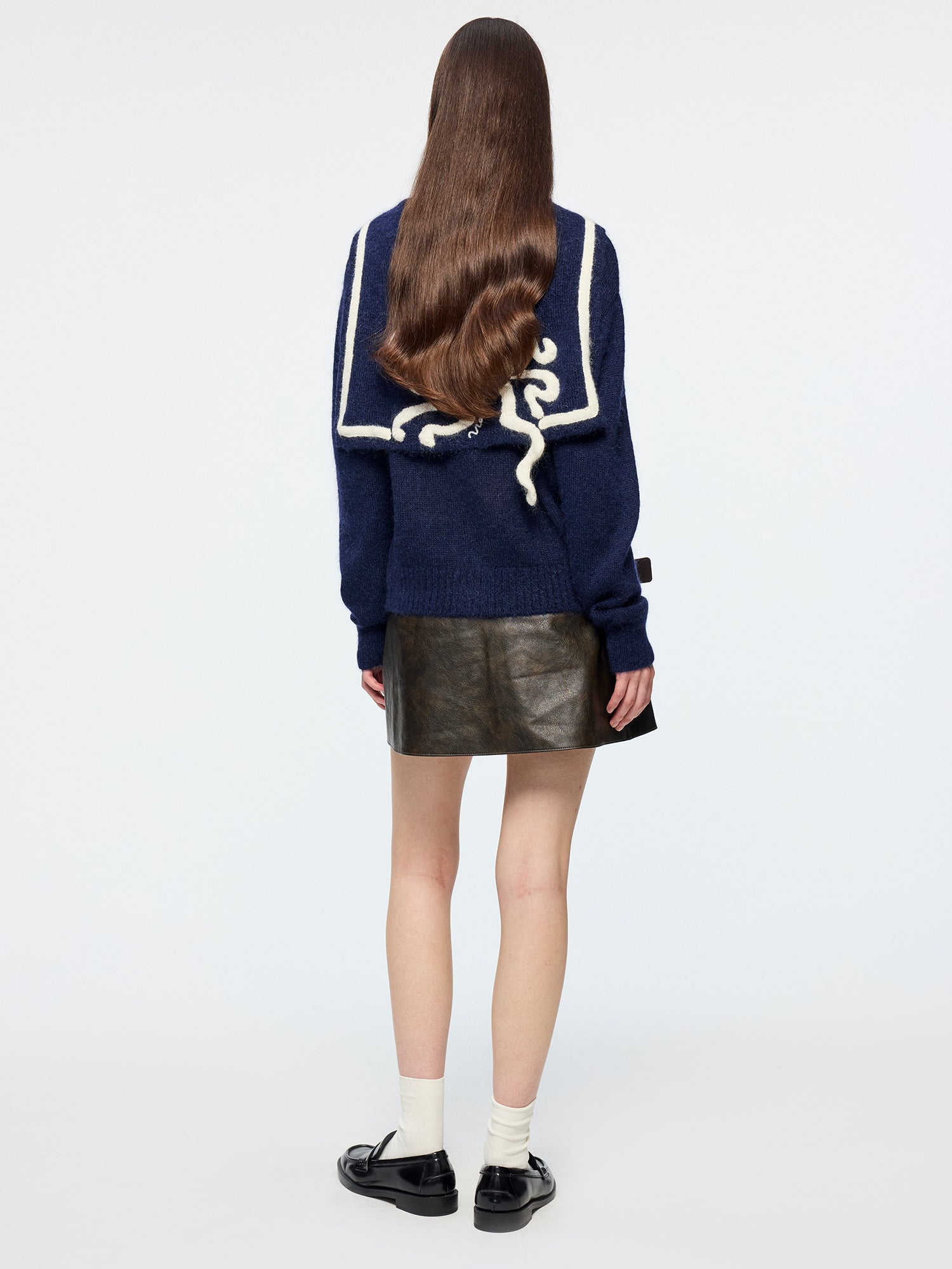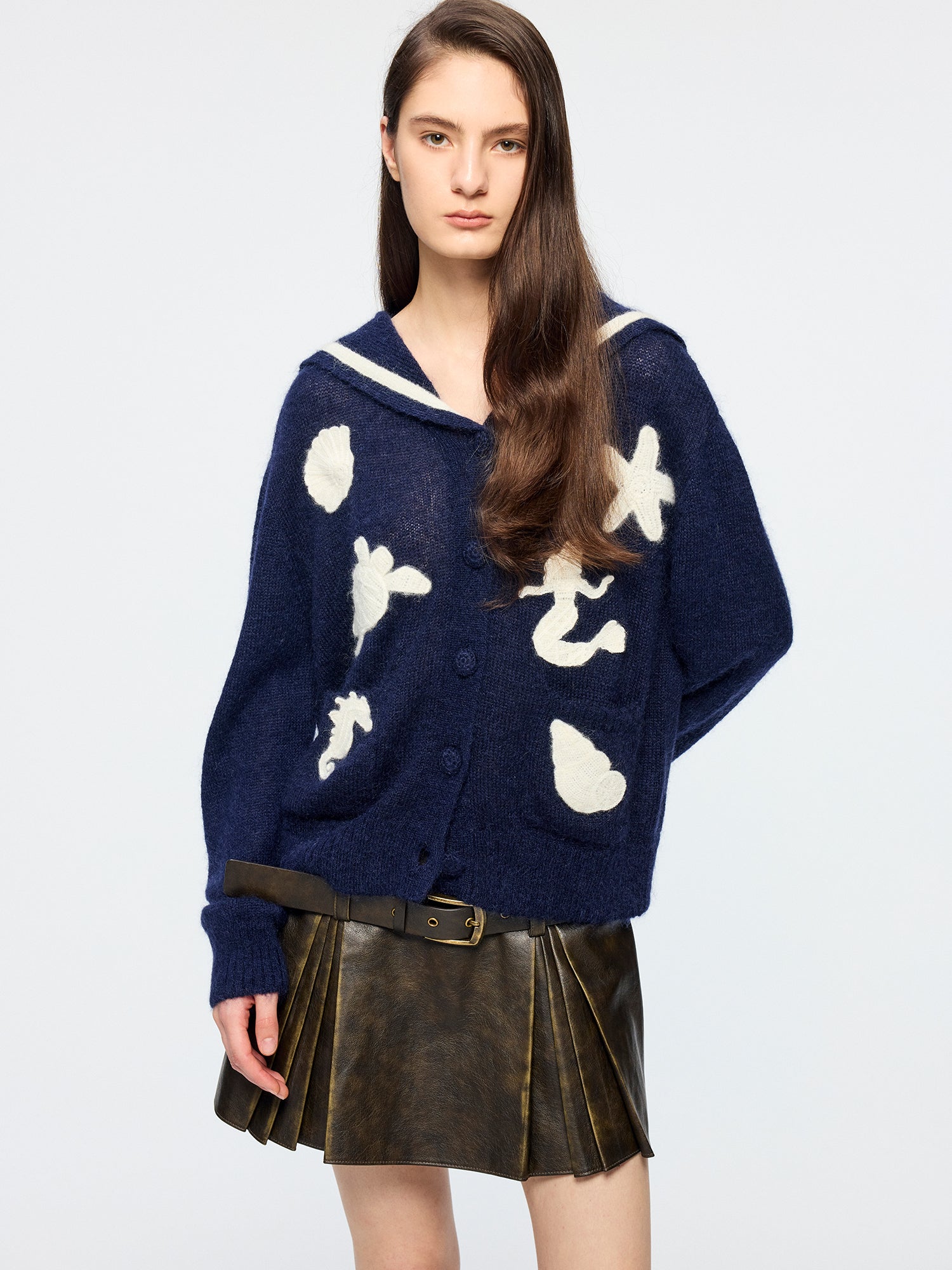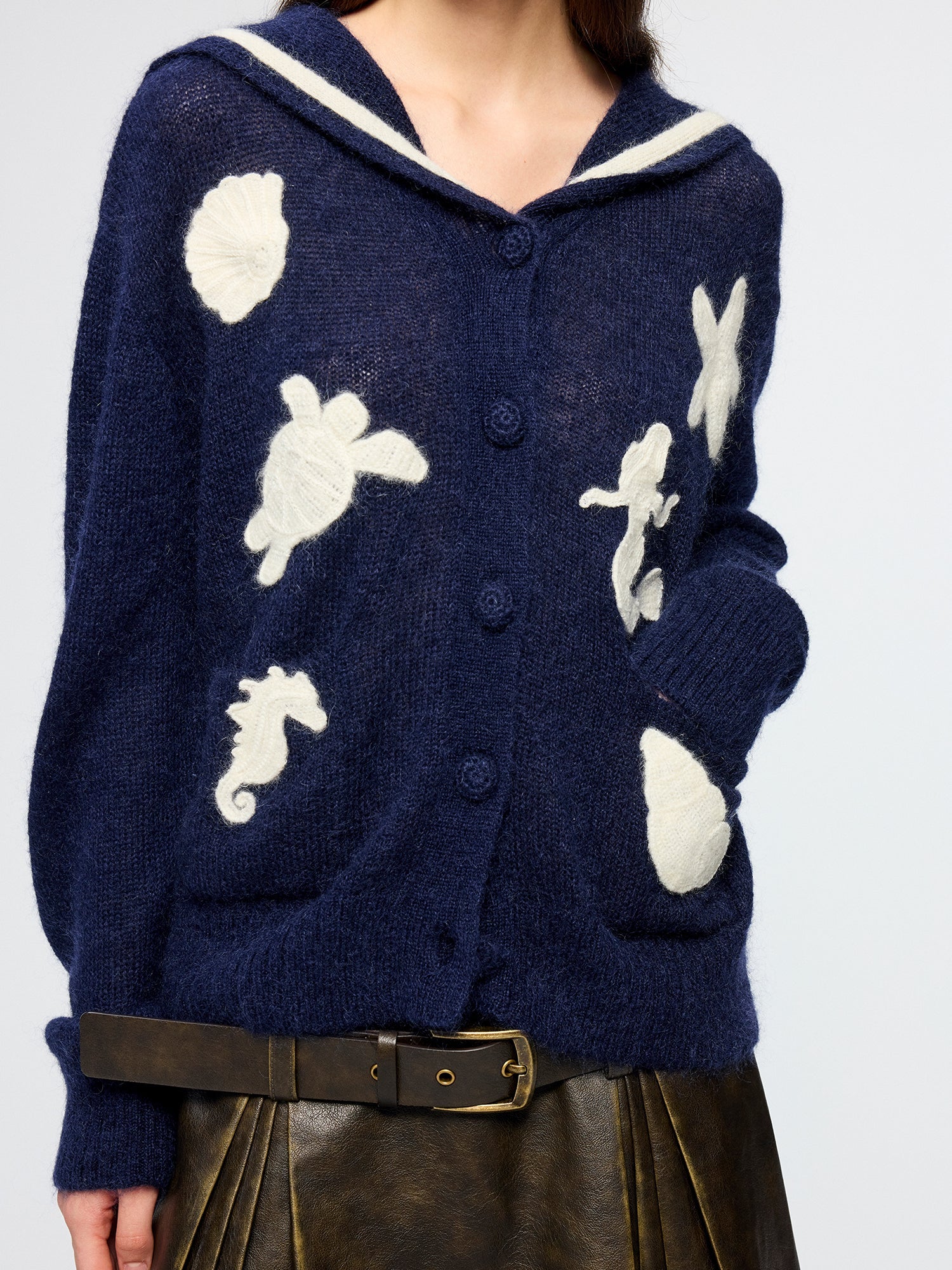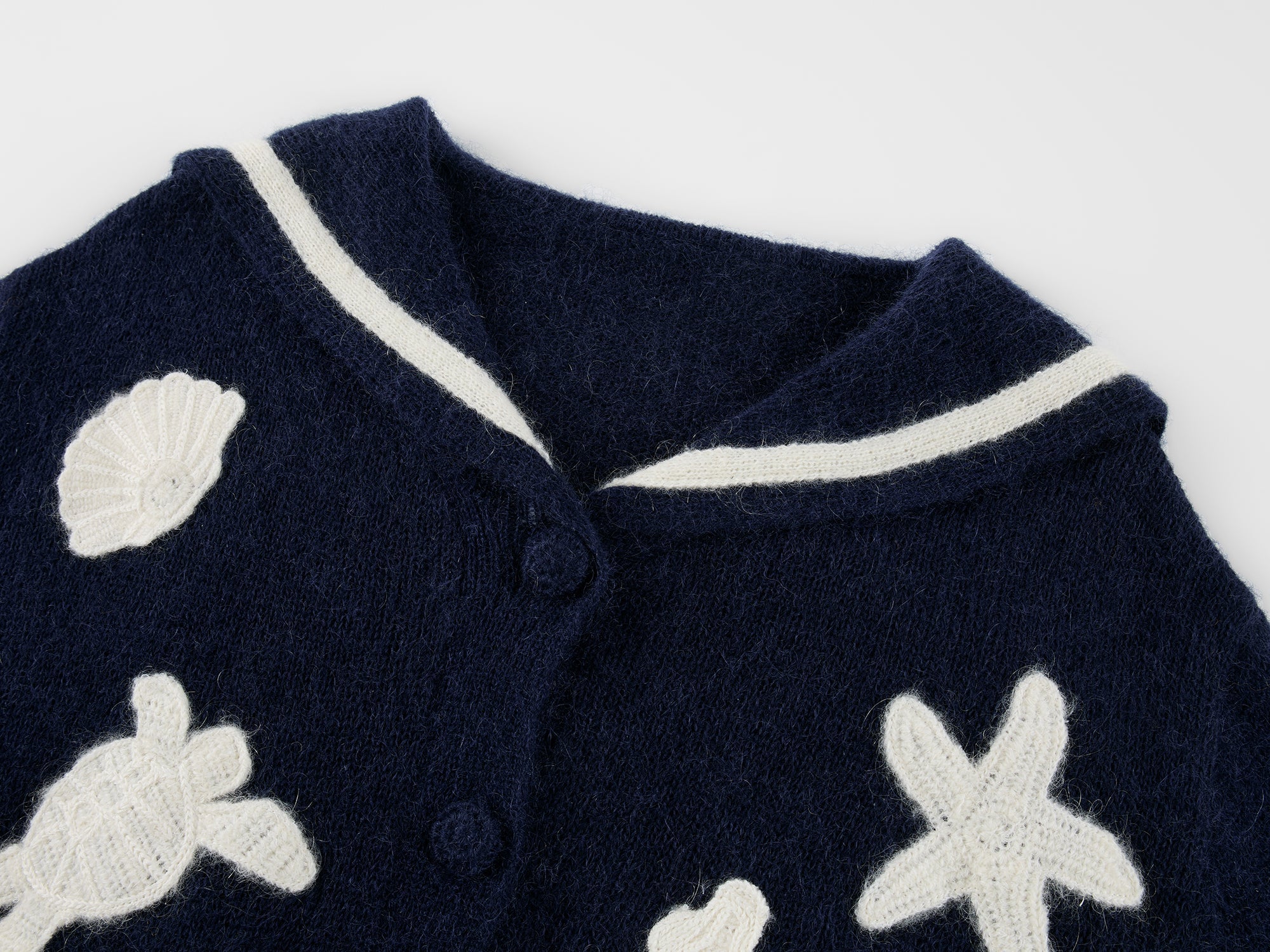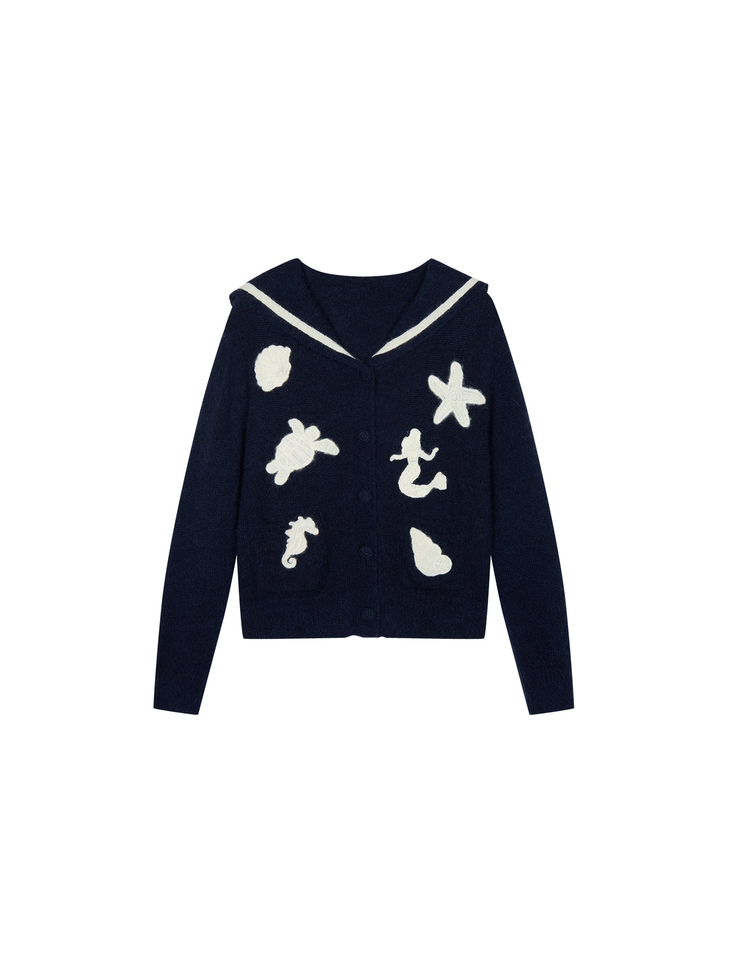 Sailor collar cardigan with fantasy undersea yarn embroidery