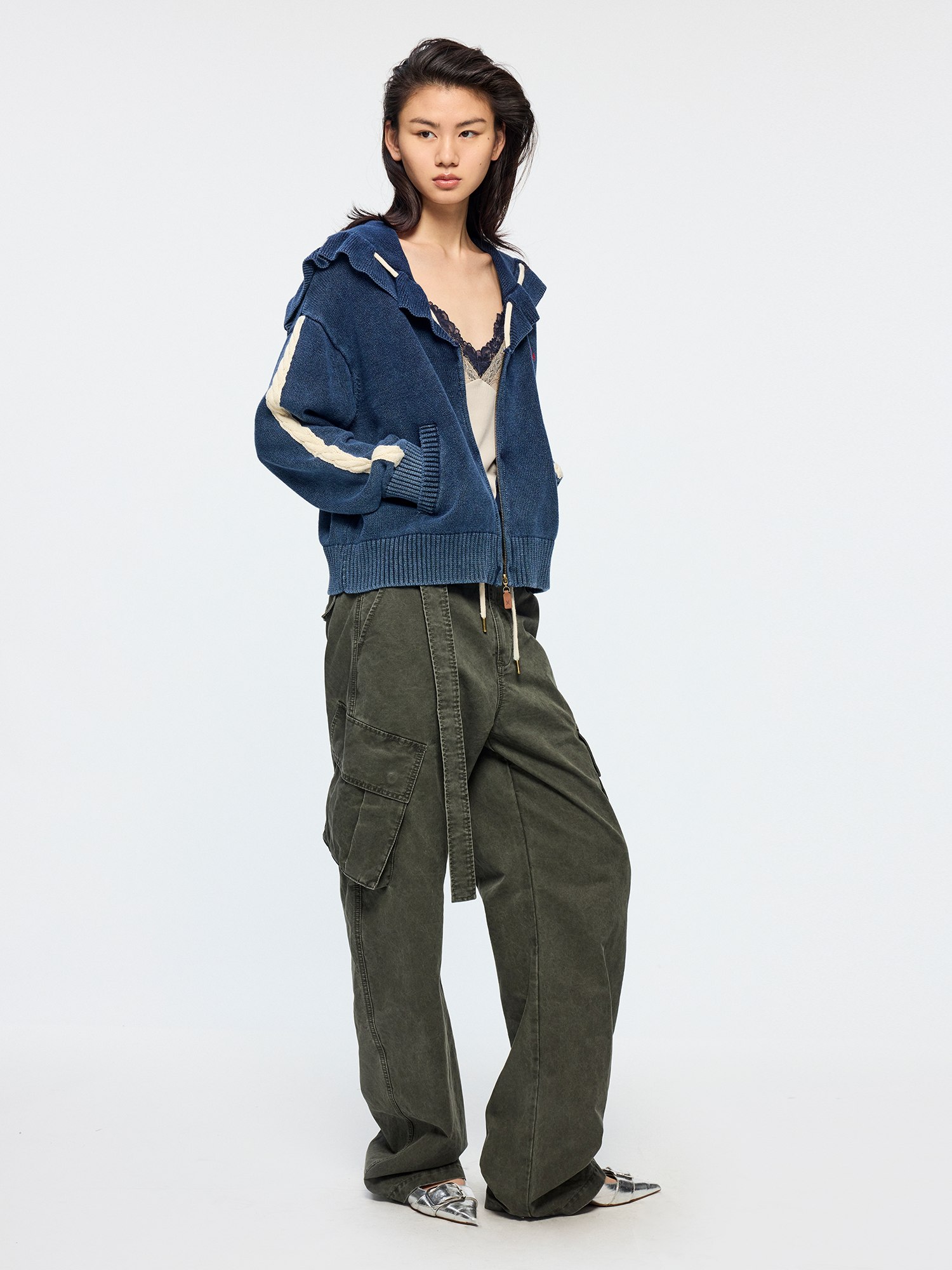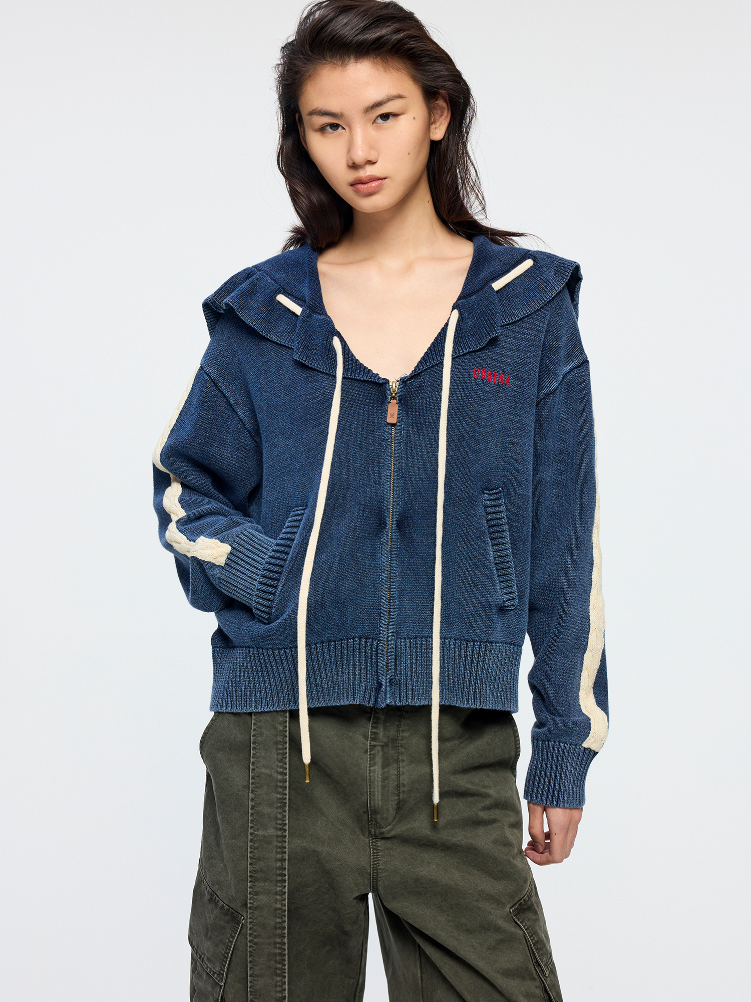 Washed finish gives a faded denim look; cable knit tape adds a refined vintage touch.Fabric: