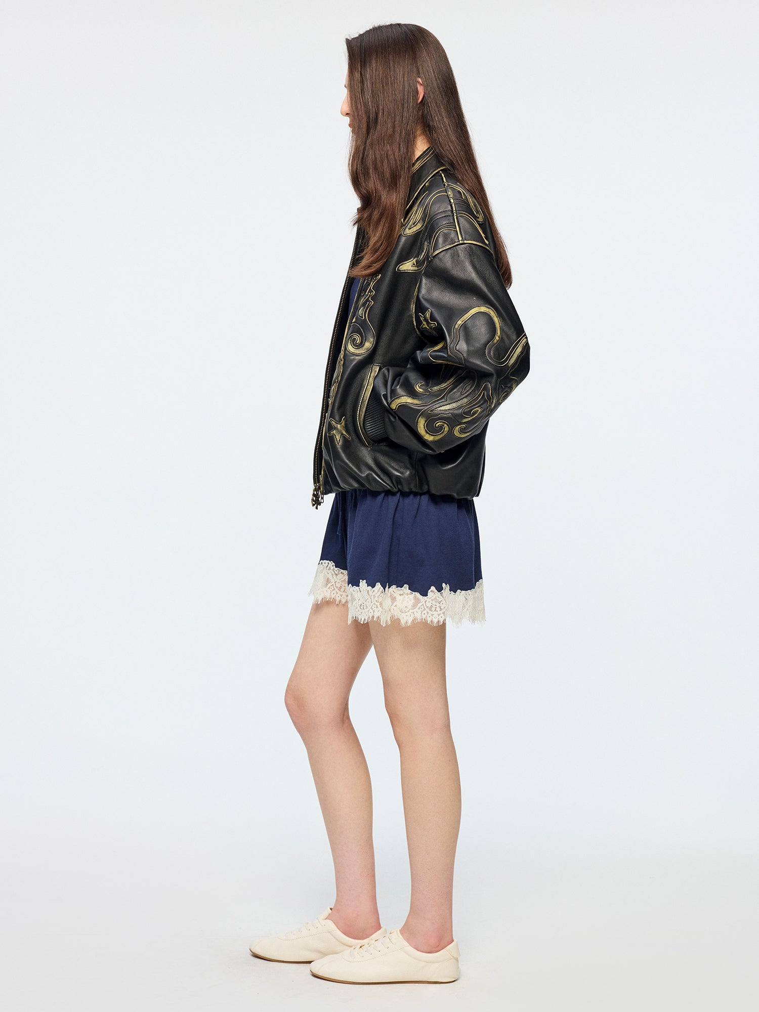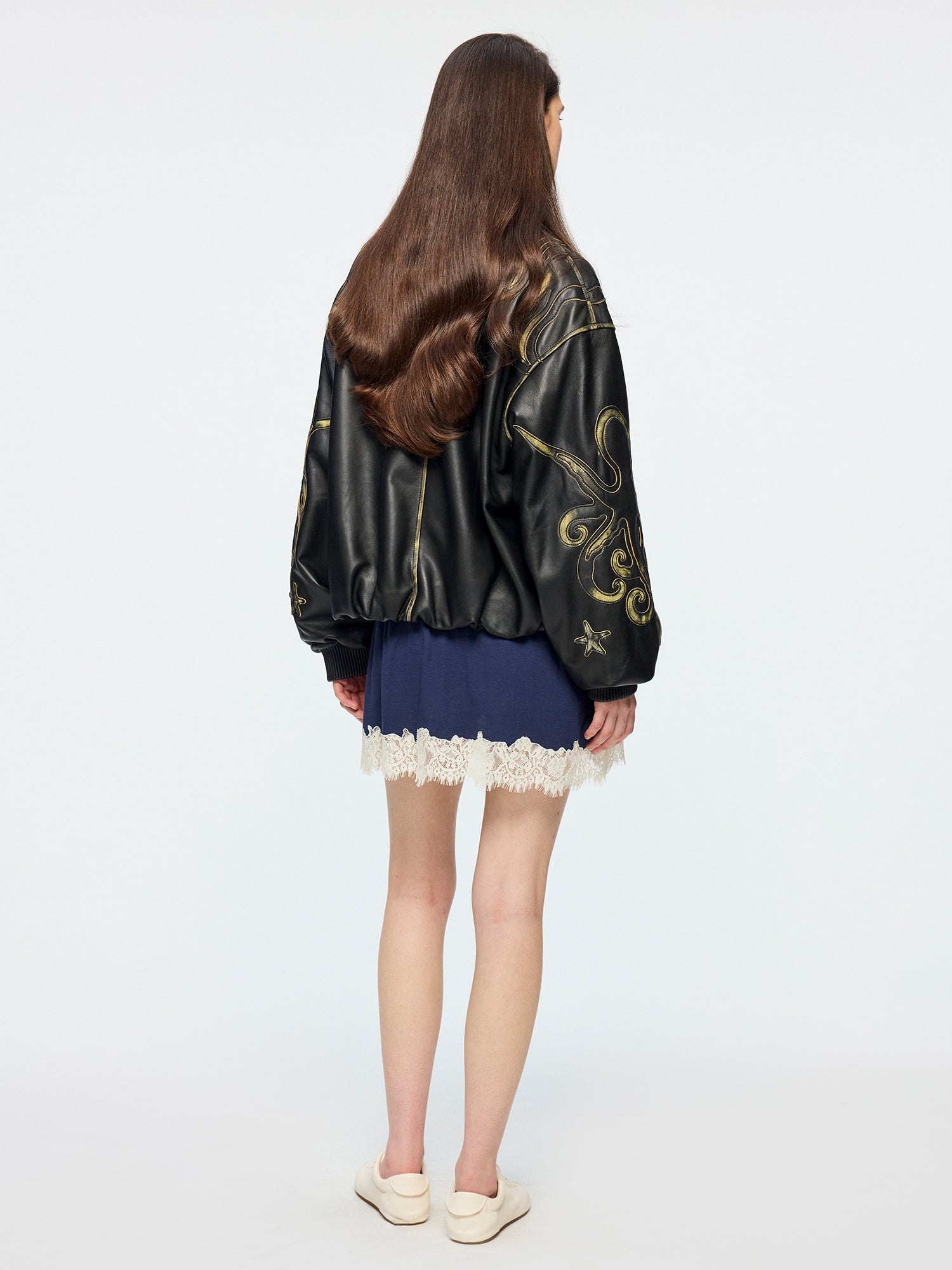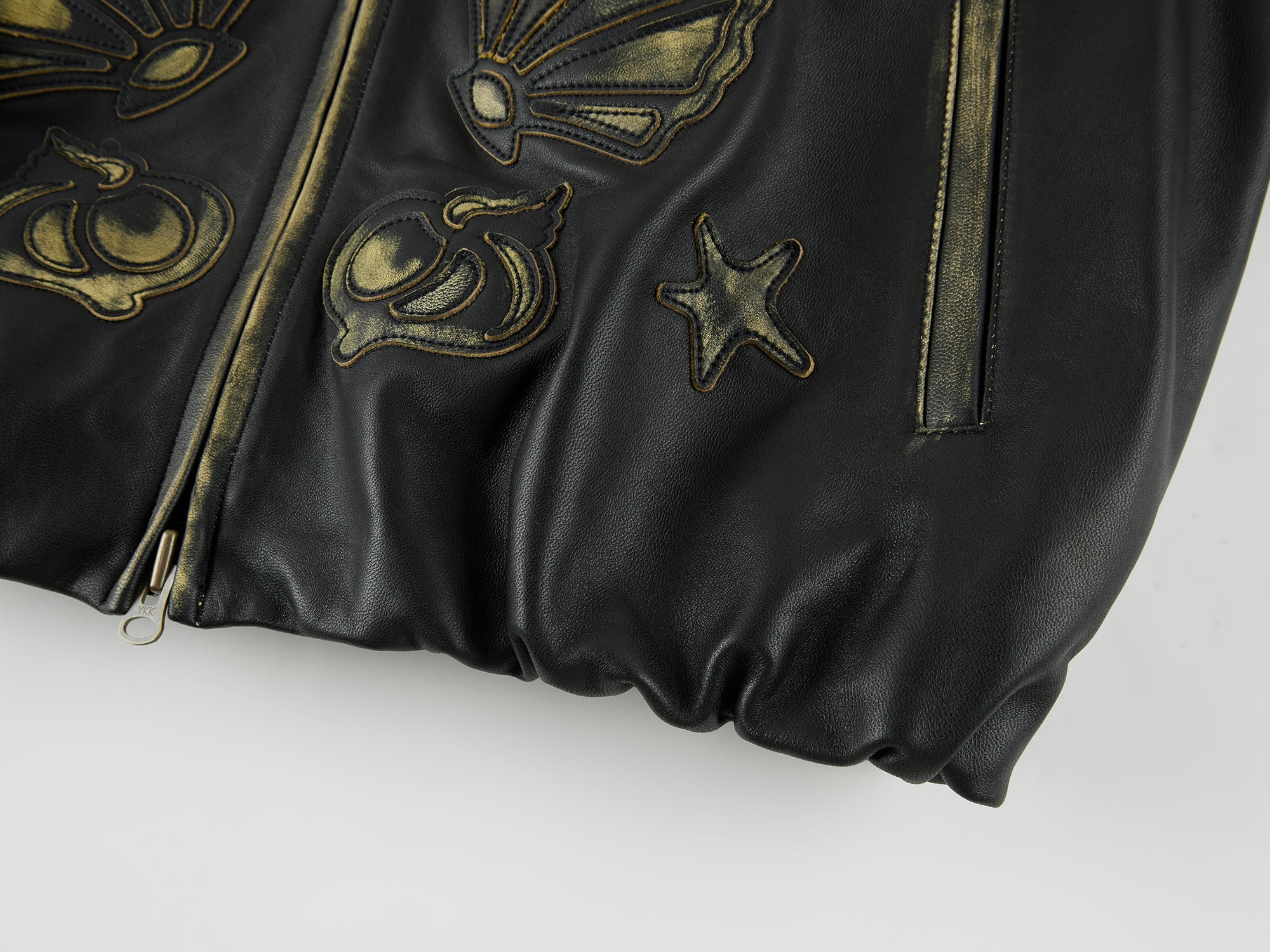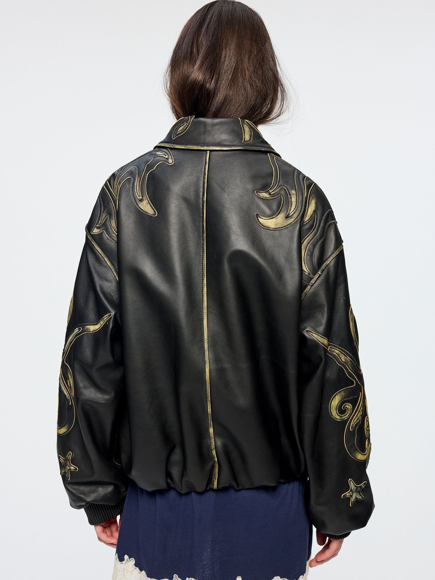 Rubbed leather jacket with fantasy undersea appliqu¨¦